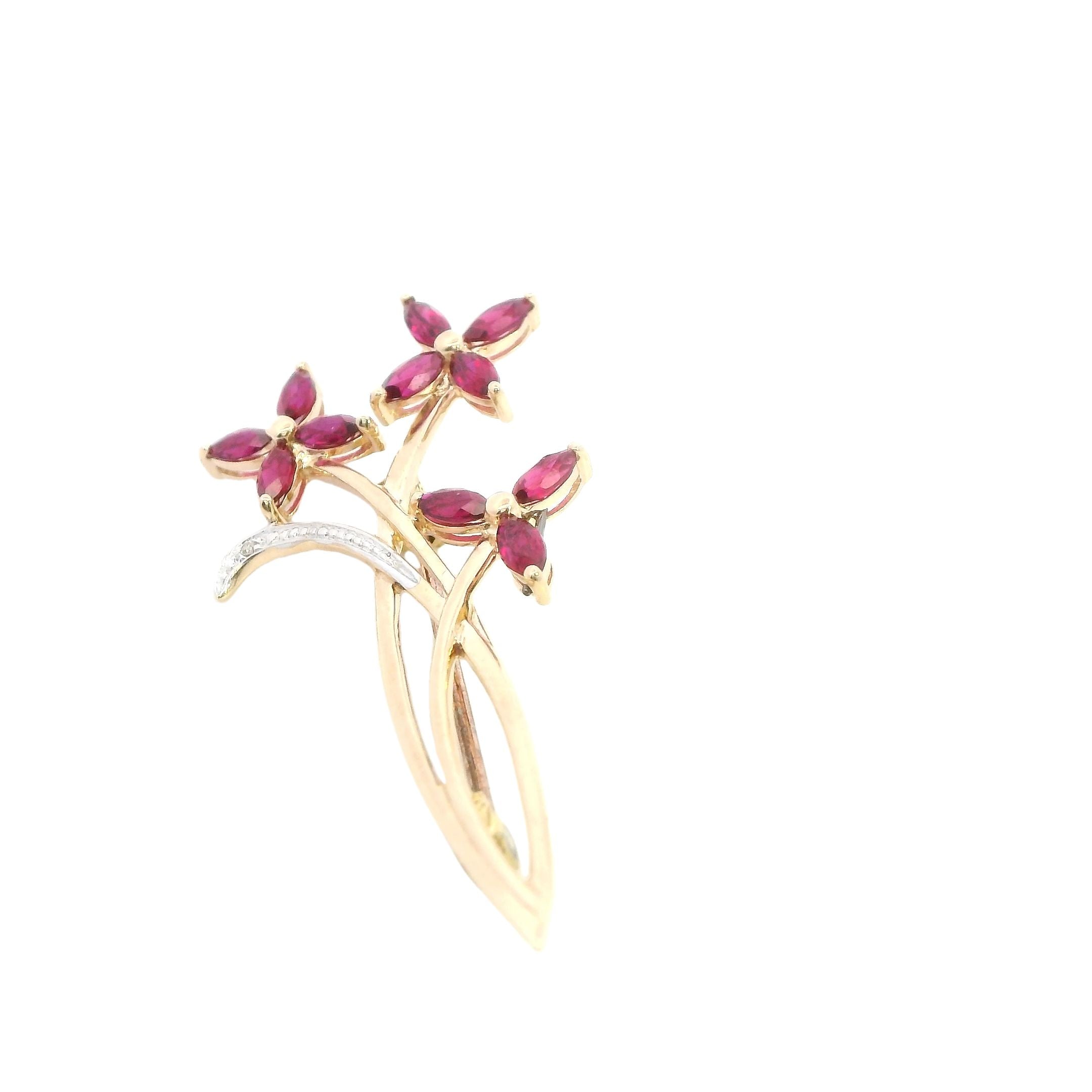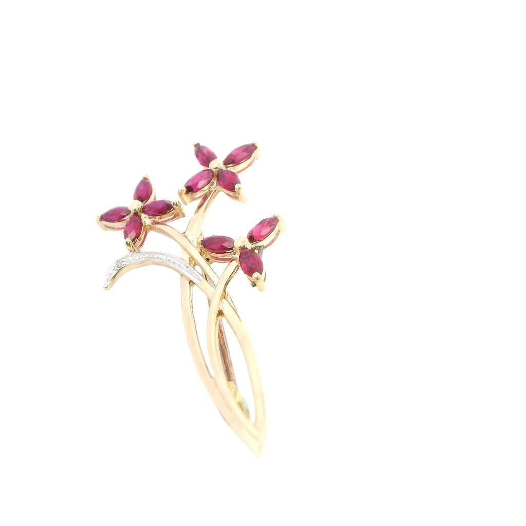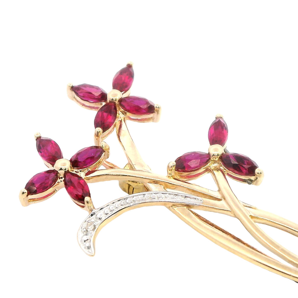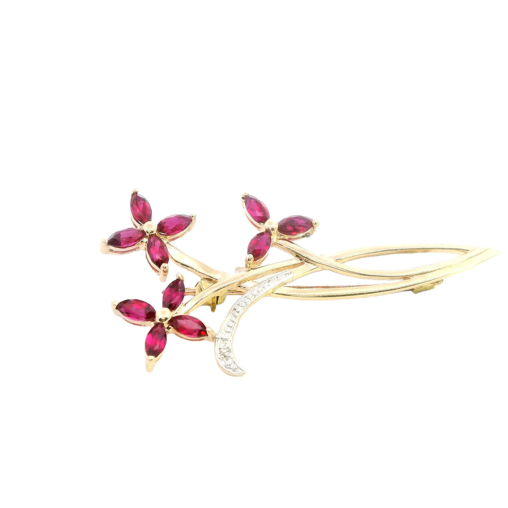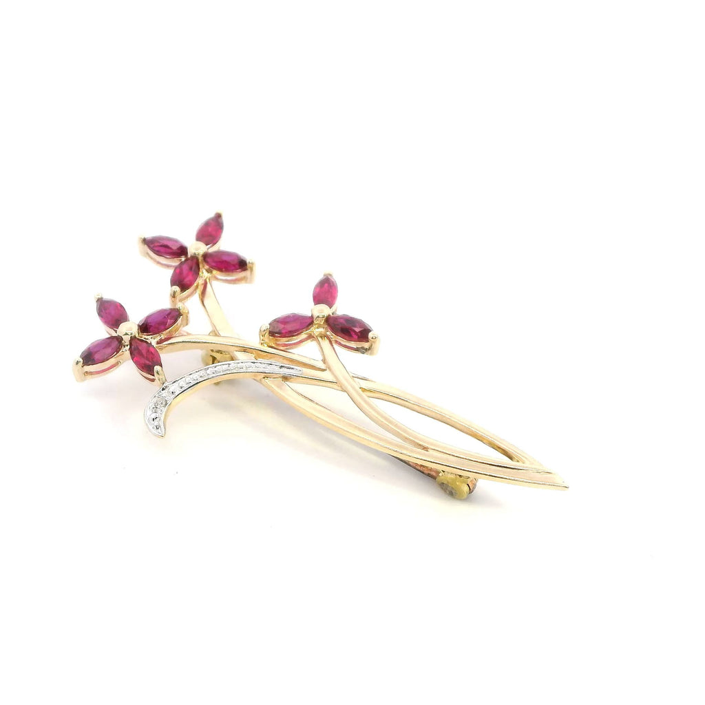 This stunning 9ct yellow gold brooch features a beautiful arrangement of synthetic rubies and a diamond, adding a touch of elegance and sophistication to any outfit. Perfect for special occasions or as a unique gift, this brooch is a timeless piece of jewellery that will be cherished for years to come.