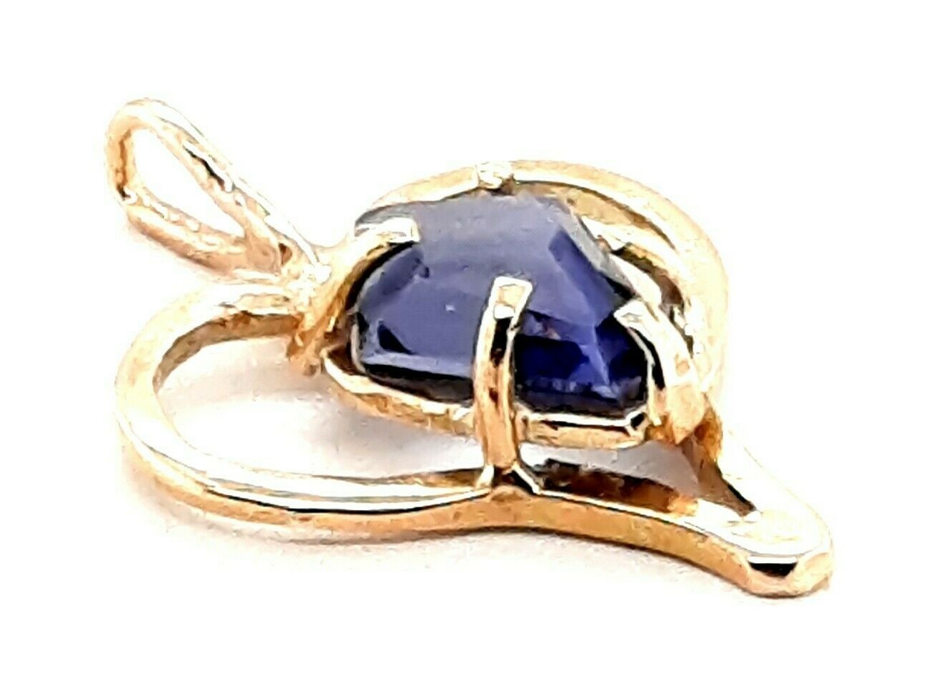 A gorgeous 9ct yellow gold heart shaped pendant featuring a pretty Iolite in the centre.