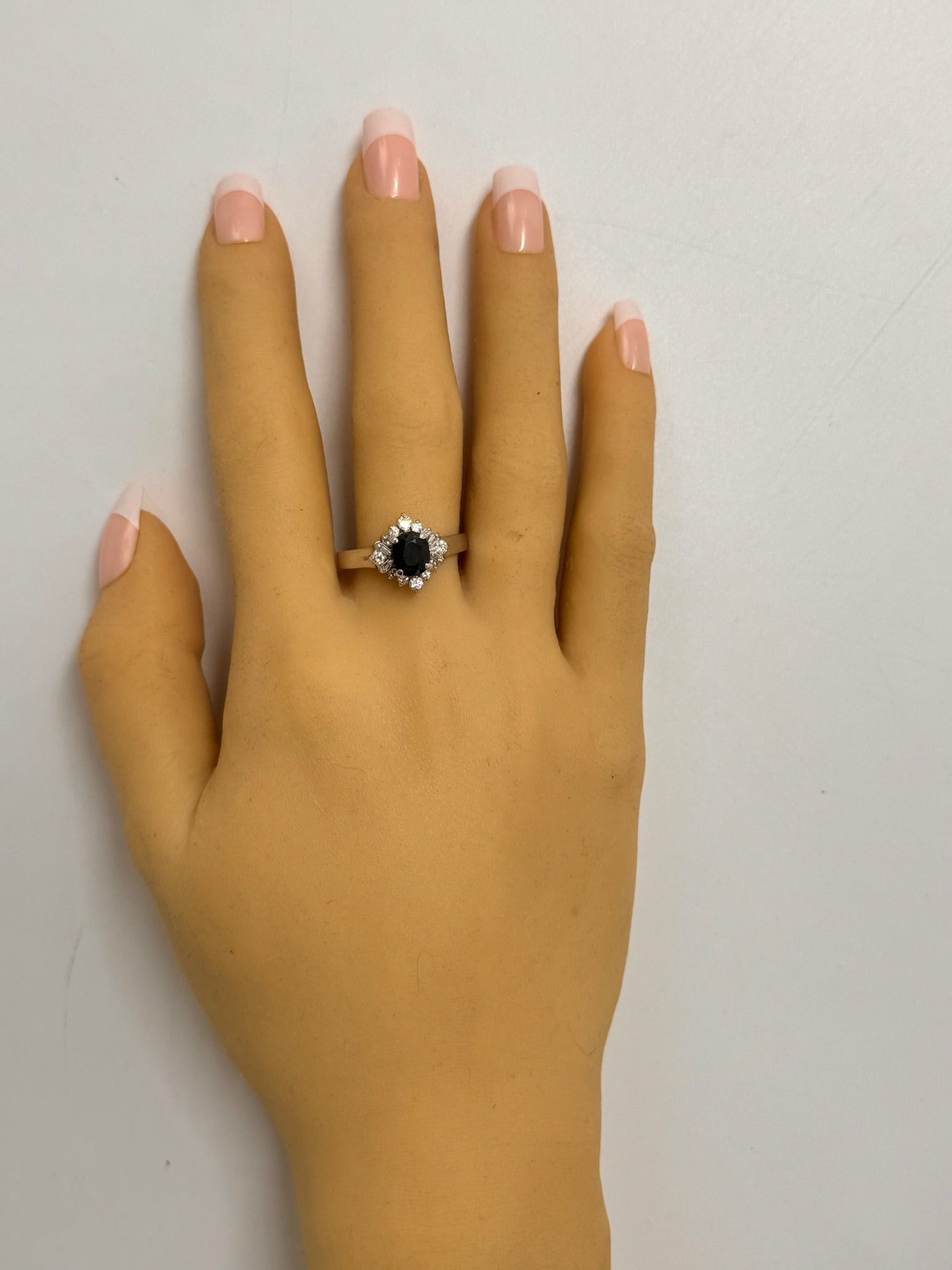 This sapphire and diamond ring is a timeless investment and a reflection of classic elegance. Sapphire, the birthstone of September, has been cherished for centuries and is often seen as a symbol of wisdom and royalty. In fact, deep blue sapphires like the one in this ring are reminiscent of the one worn by the British Royal Family, making it a perfect choice for anyone who appreciates luxury and history.