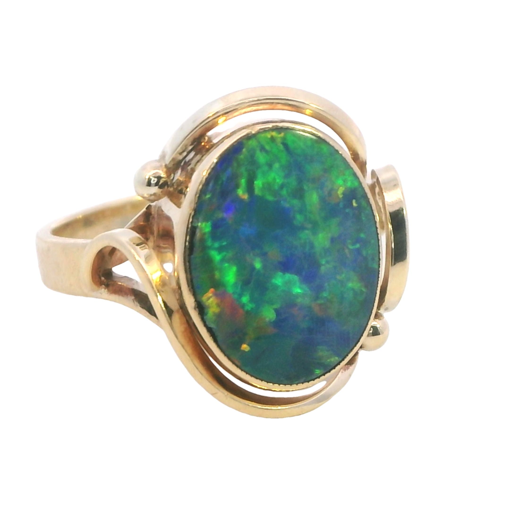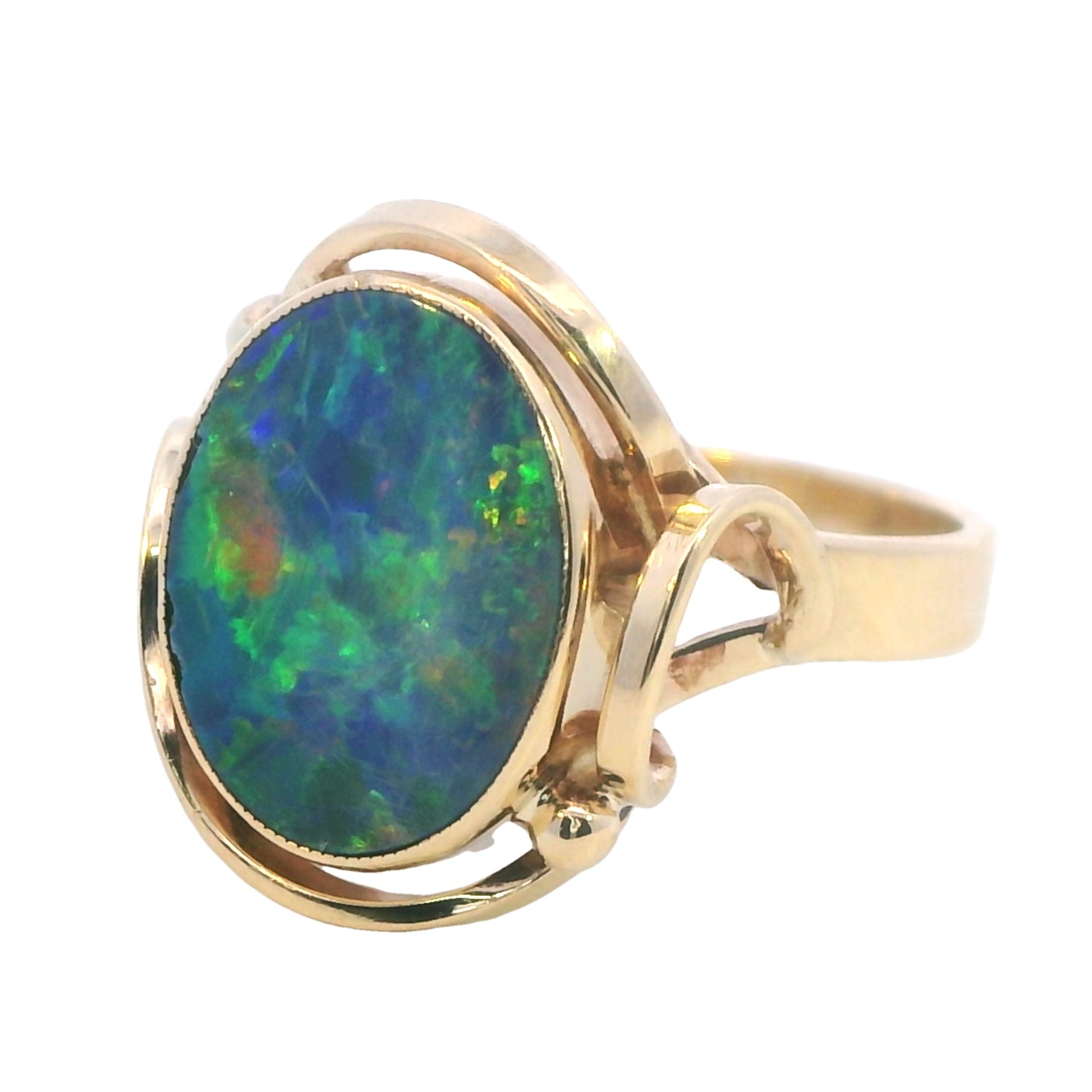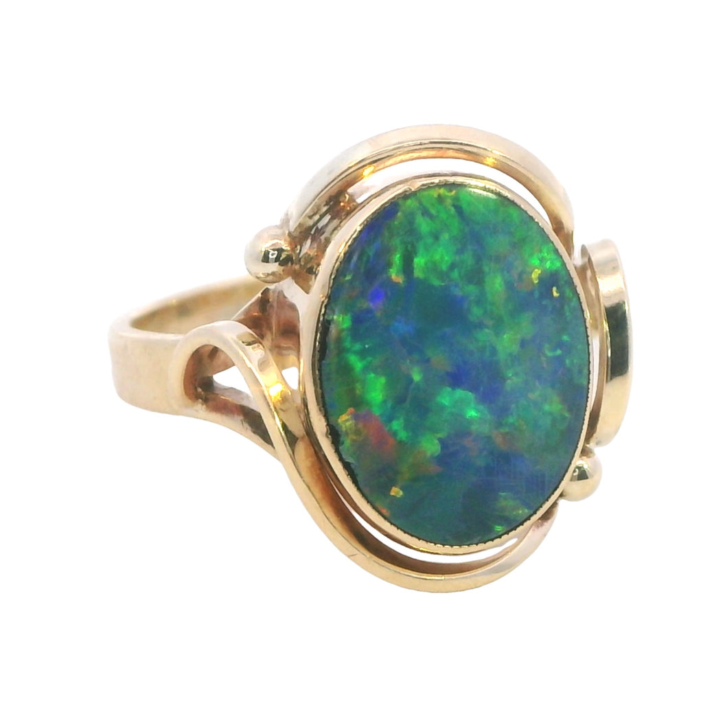Elegant Yellow Gold Opal Doublet Ring – A Captivating Statement Piece