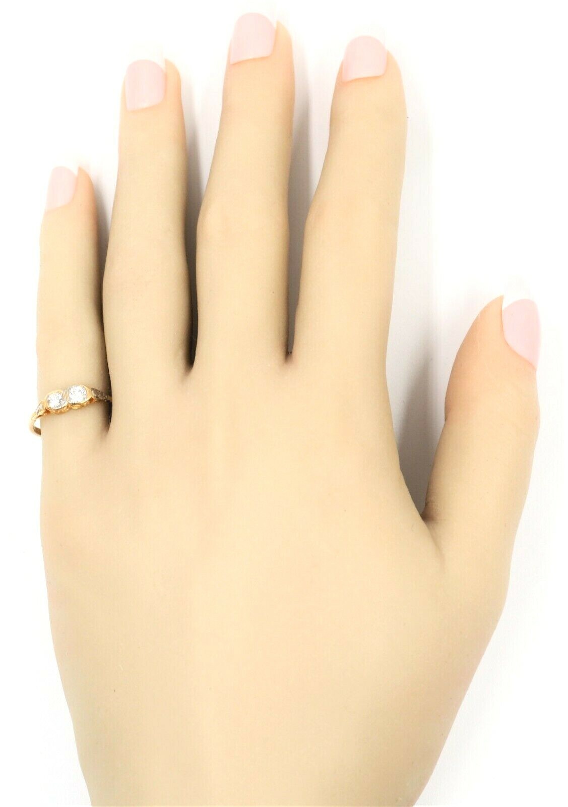 A stunning handmade ring featuring two pretty Diamonds set in an 18ct yellow gold band with lovely engraved swept up shoulders.