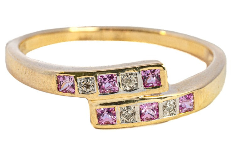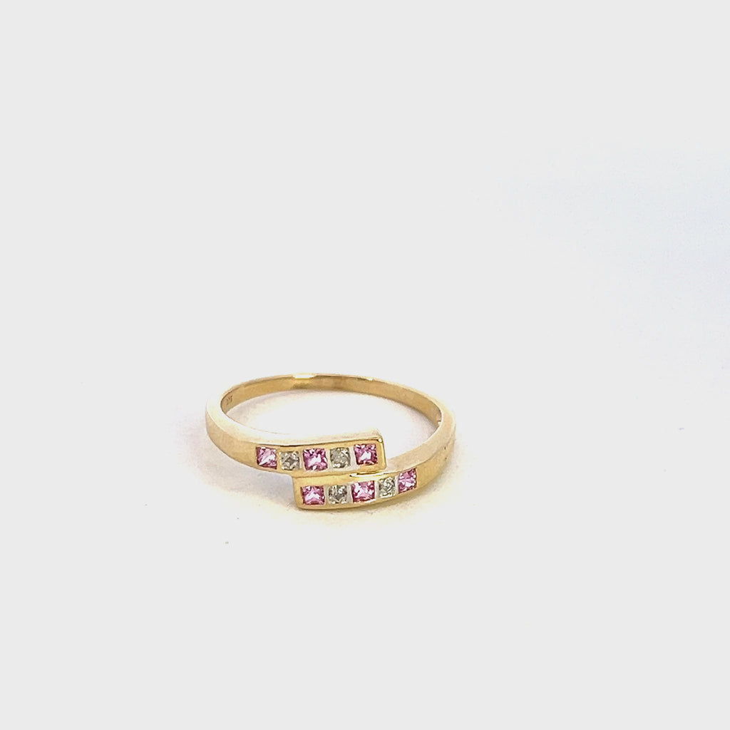 🌍 Elevate your jewellery collection with this stunning 9ct yellow gold ring. Embrace the allure of synthetic pink sapphires and diamonds, offering vibrant colours and brilliant sparkle.