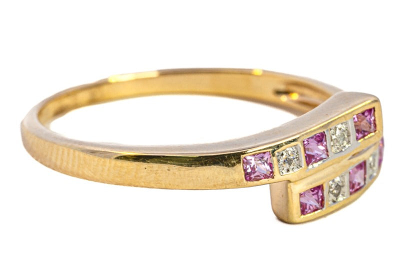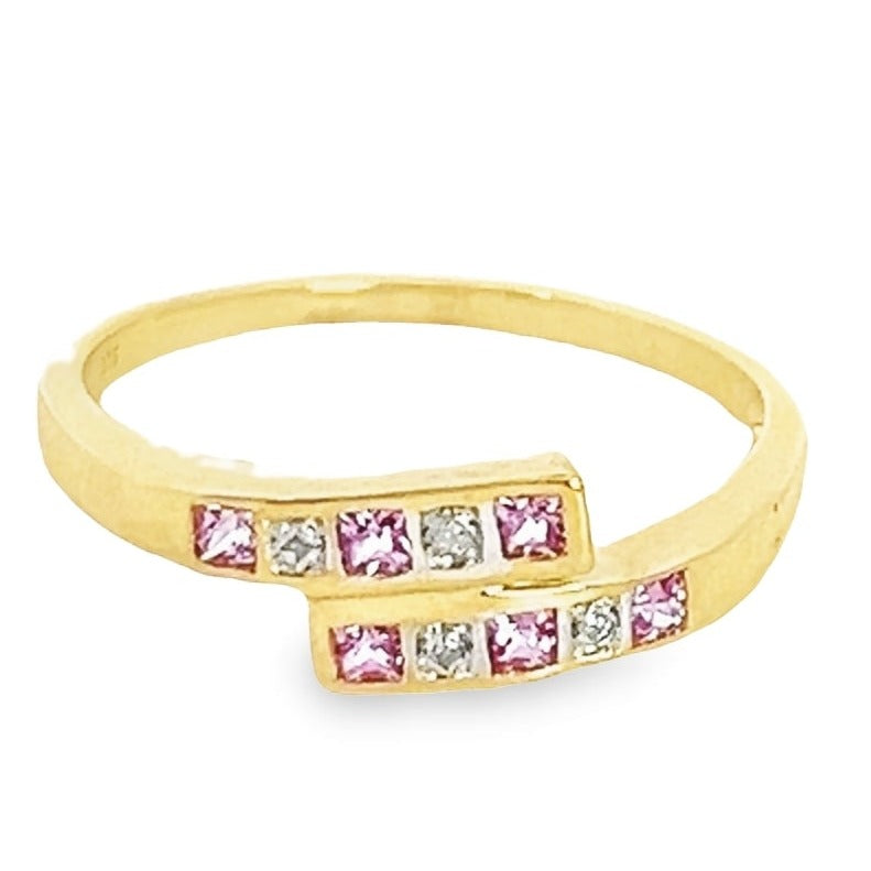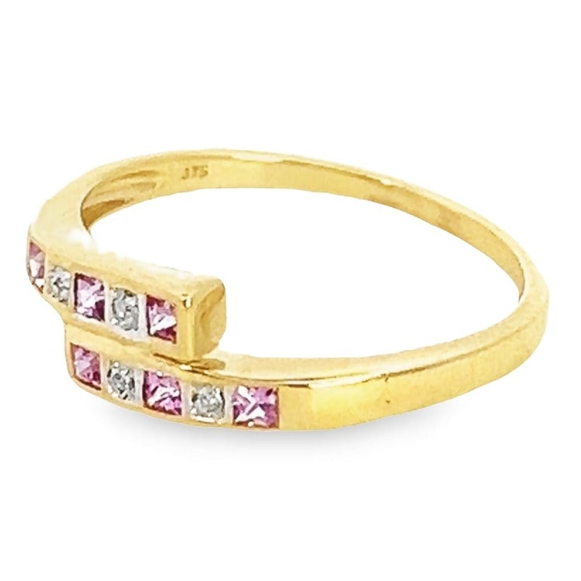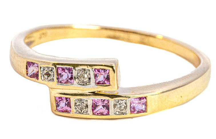 9ct Yellow Gold Ring with Synthetic Pink Sapphires and Diamonds