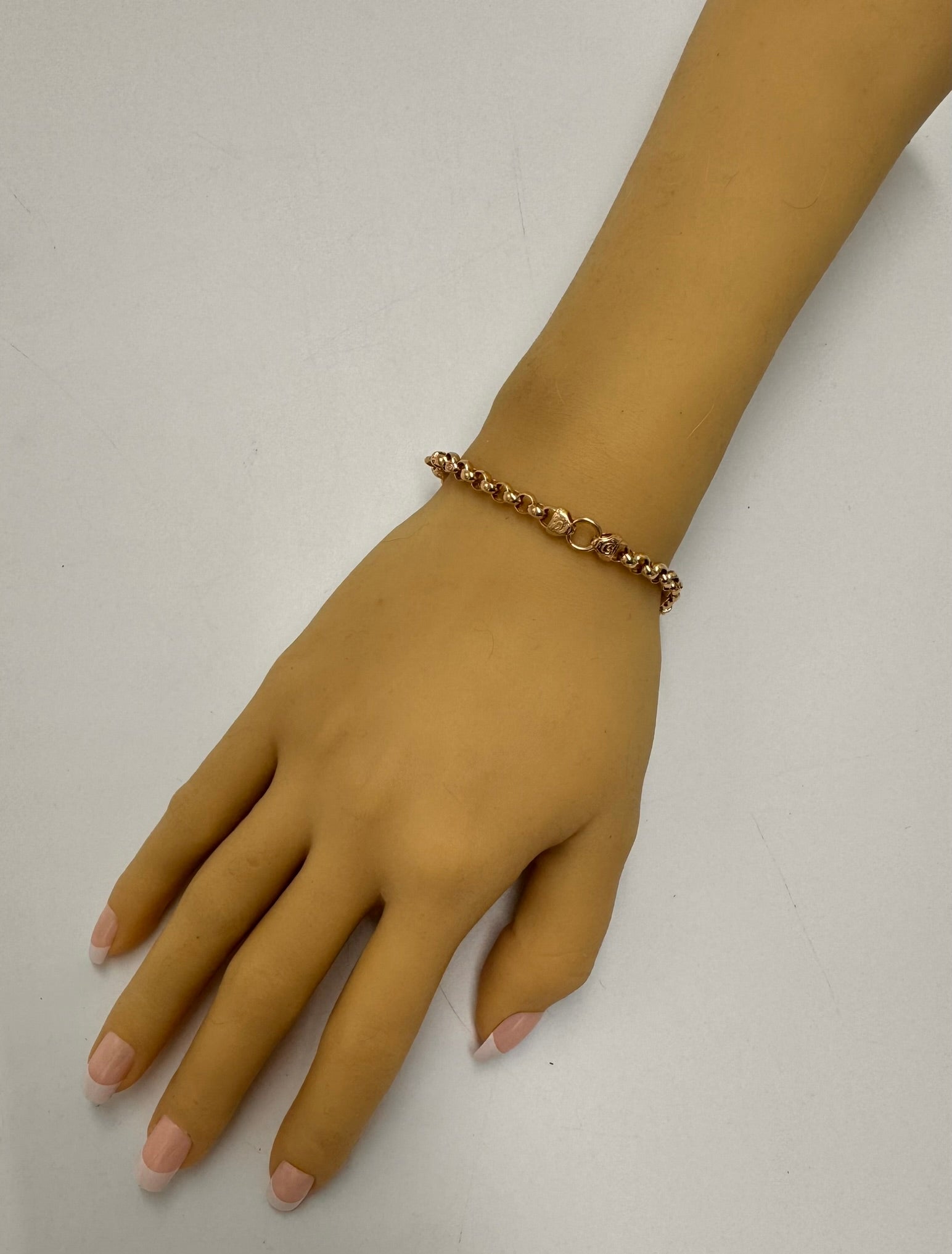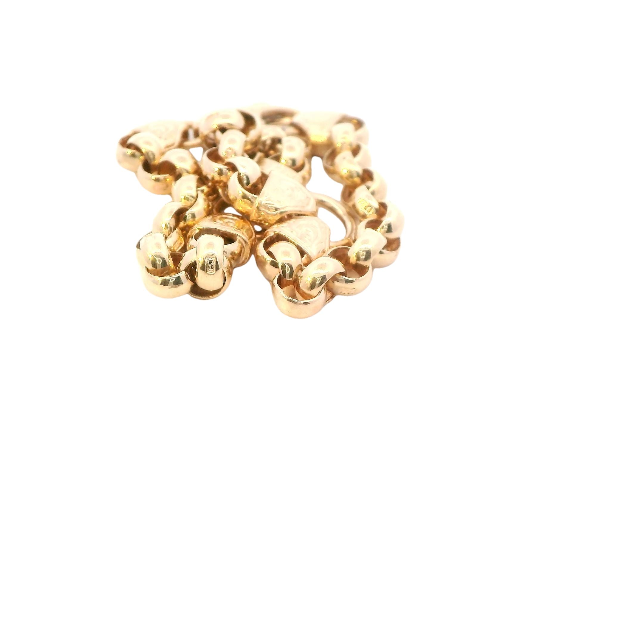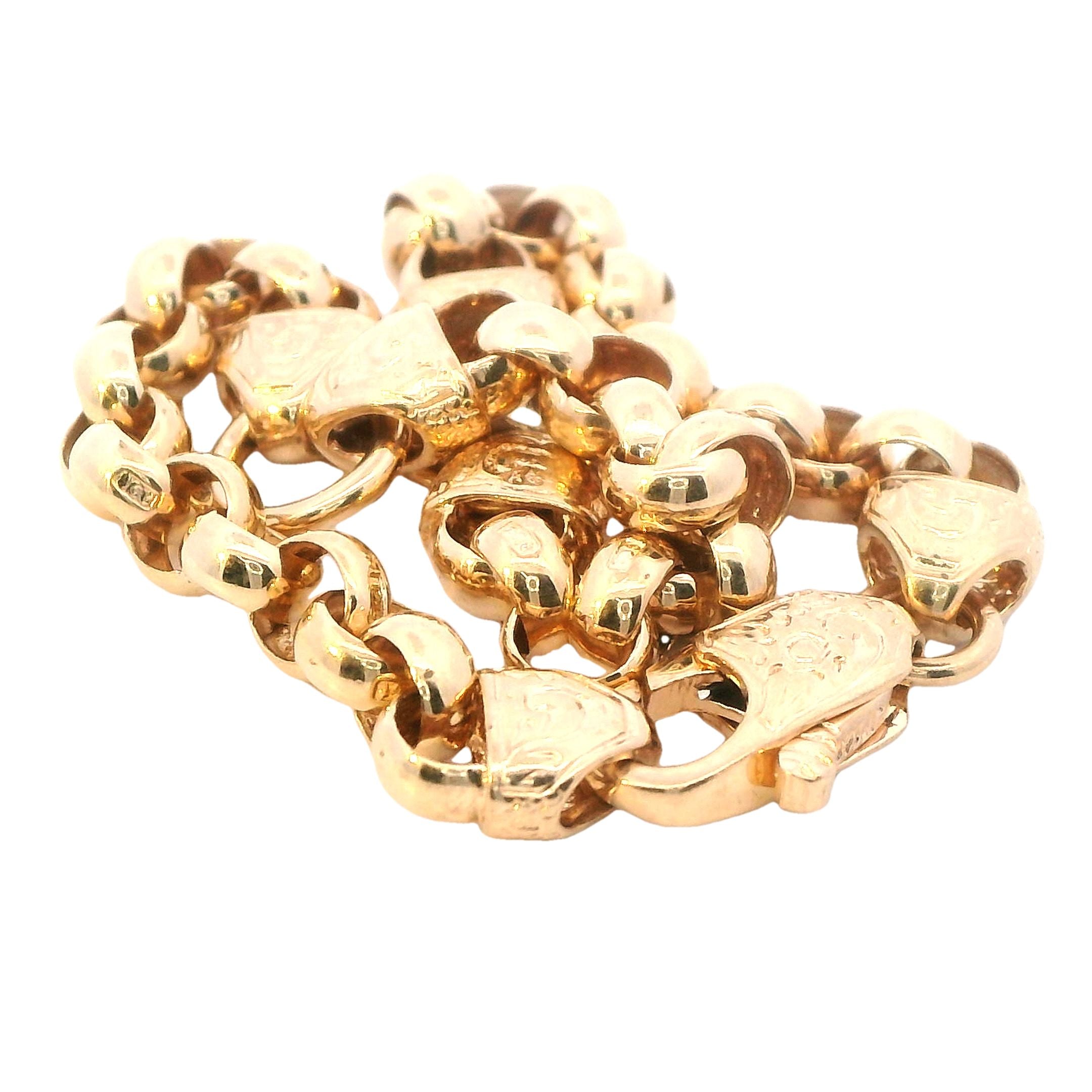 This stunning 9ct yellow gold bracelet is a beautiful blend of craftsmanship and elegance. Cast and hand-assembled, it measures 17.5cm in length and is secured with an engraved parrot clasp catch. The rich colour and polished finish of the gold make this bracelet a perfect accessory for any occasion, while its quality ensures it will stand the test of time.