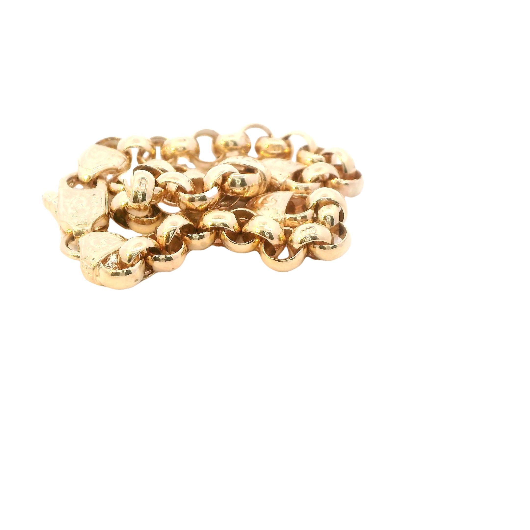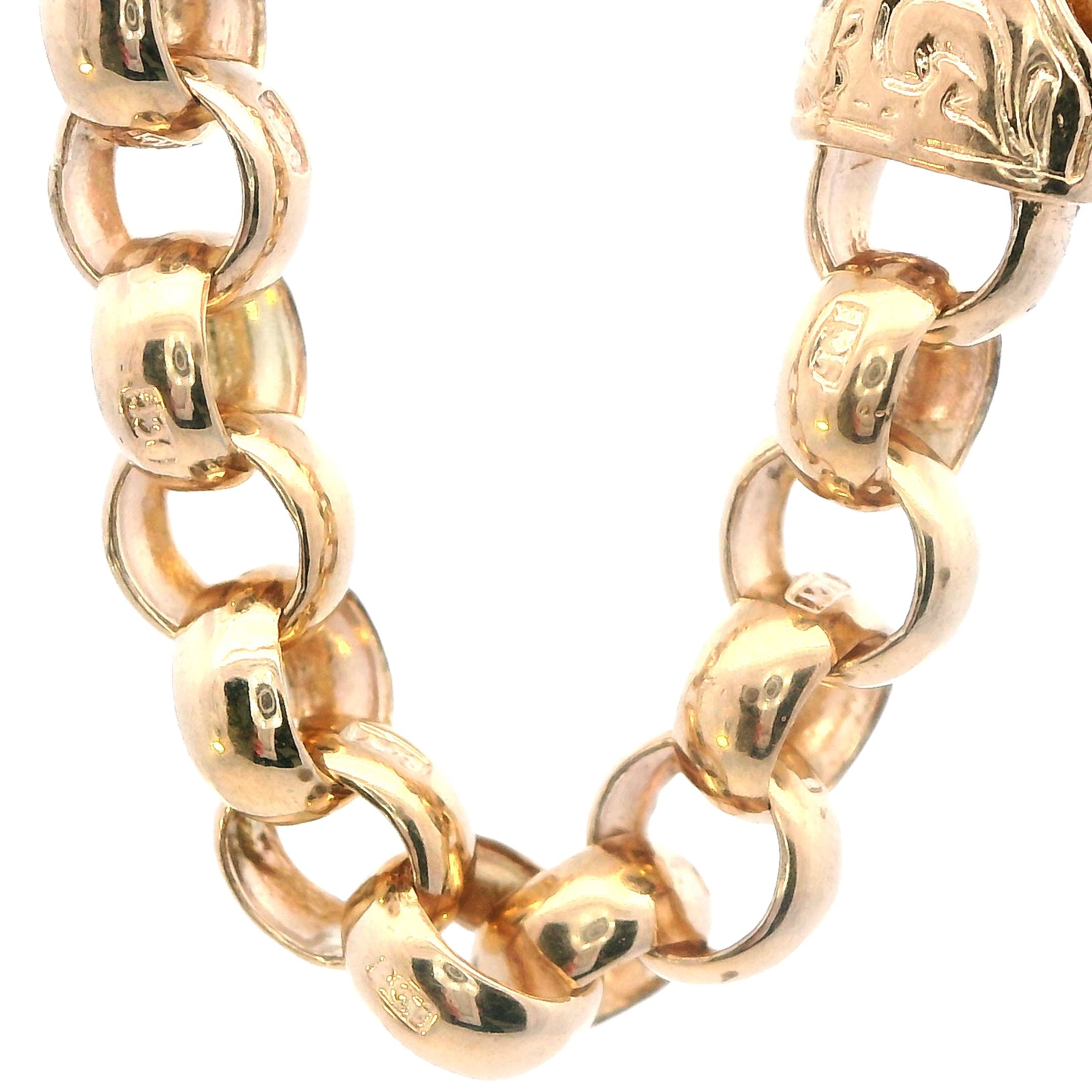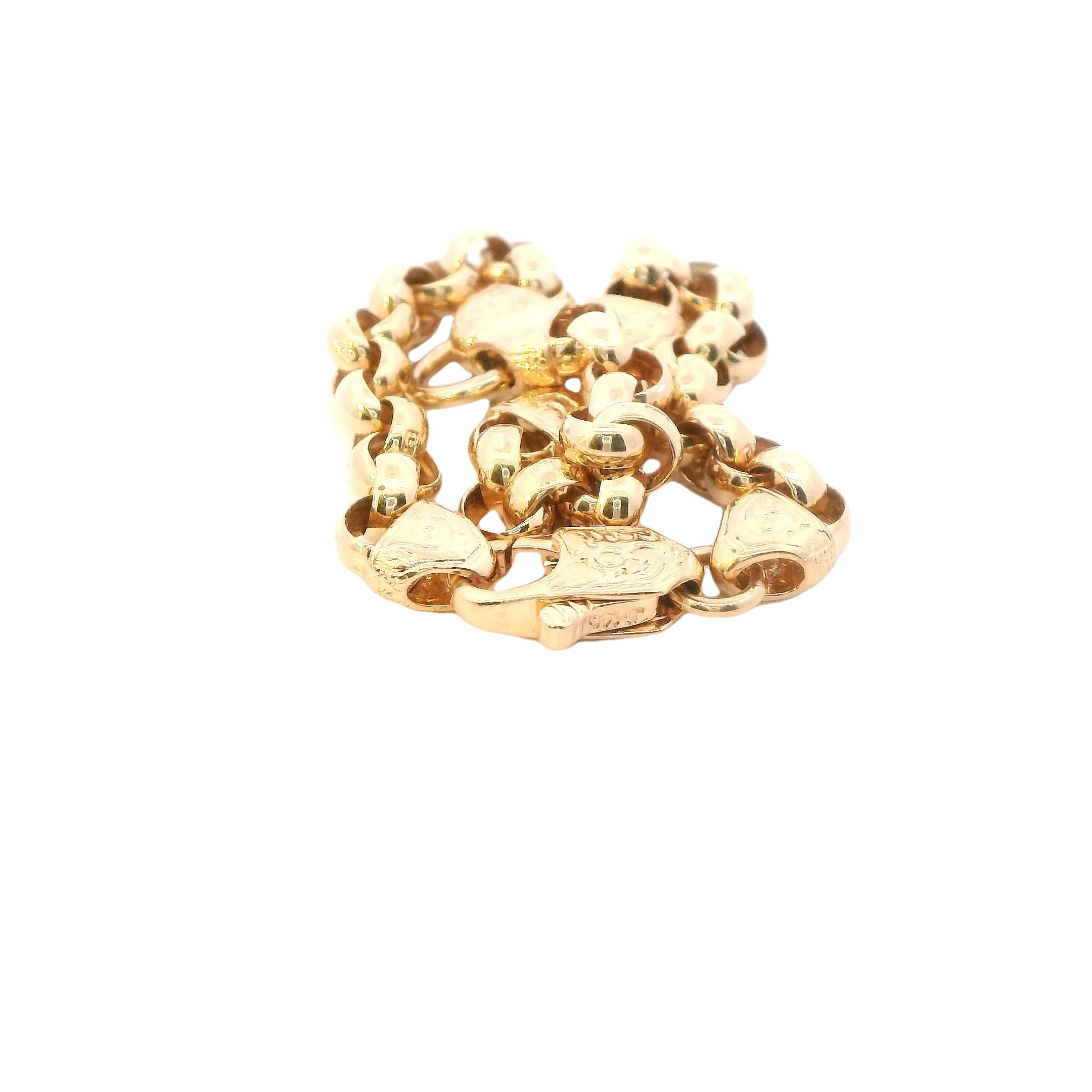 This stunning 9ct yellow gold bracelet is a beautiful blend of craftsmanship and elegance. Cast and hand-assembled, it measures 17.5cm in length and is secured with an engraved parrot clasp catch. The rich colour and polished finish of the gold make this bracelet a perfect accessory for any occasion, while its quality ensures it will stand the test of time.