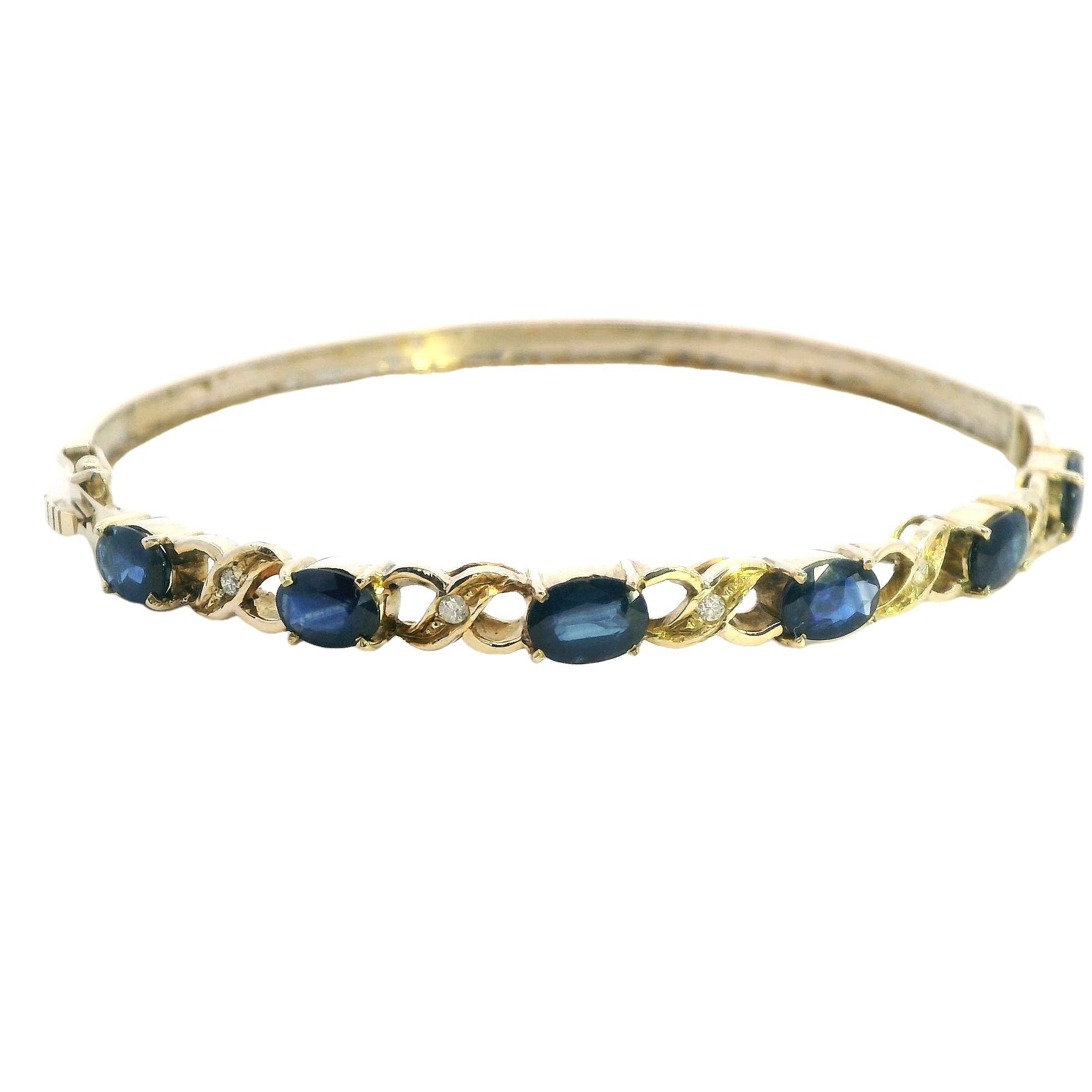 Gorgeous 14ct Yellow Gold Sapphire & Diamond Bangle – A Stunning Statement Piece