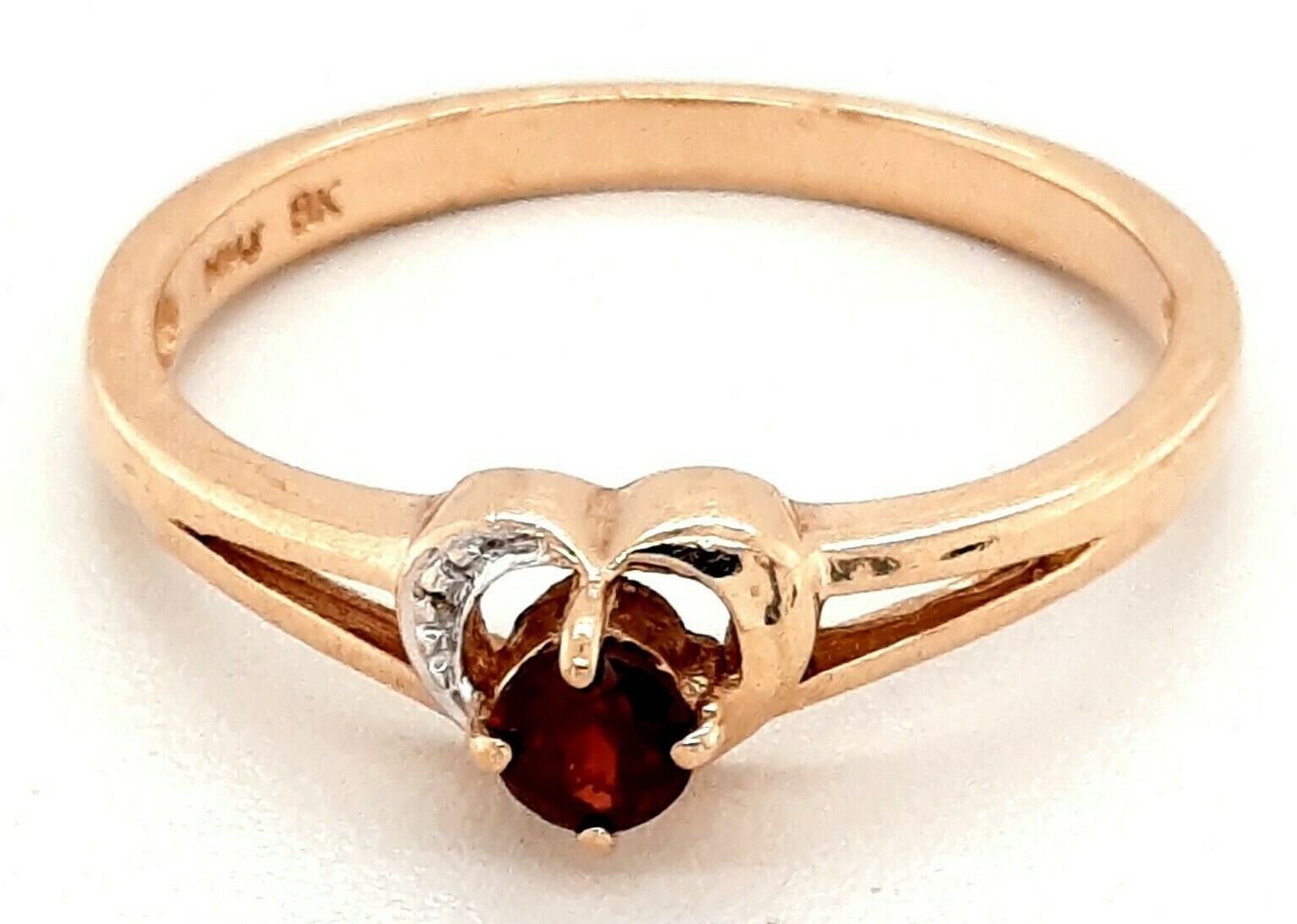 Garnet & 9ct Yellow Gold Ring Heart Shape Centre Fine Gemstone Jewellery