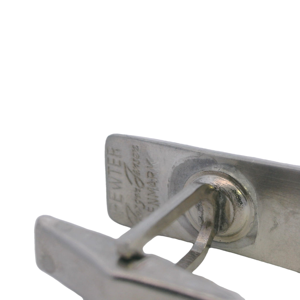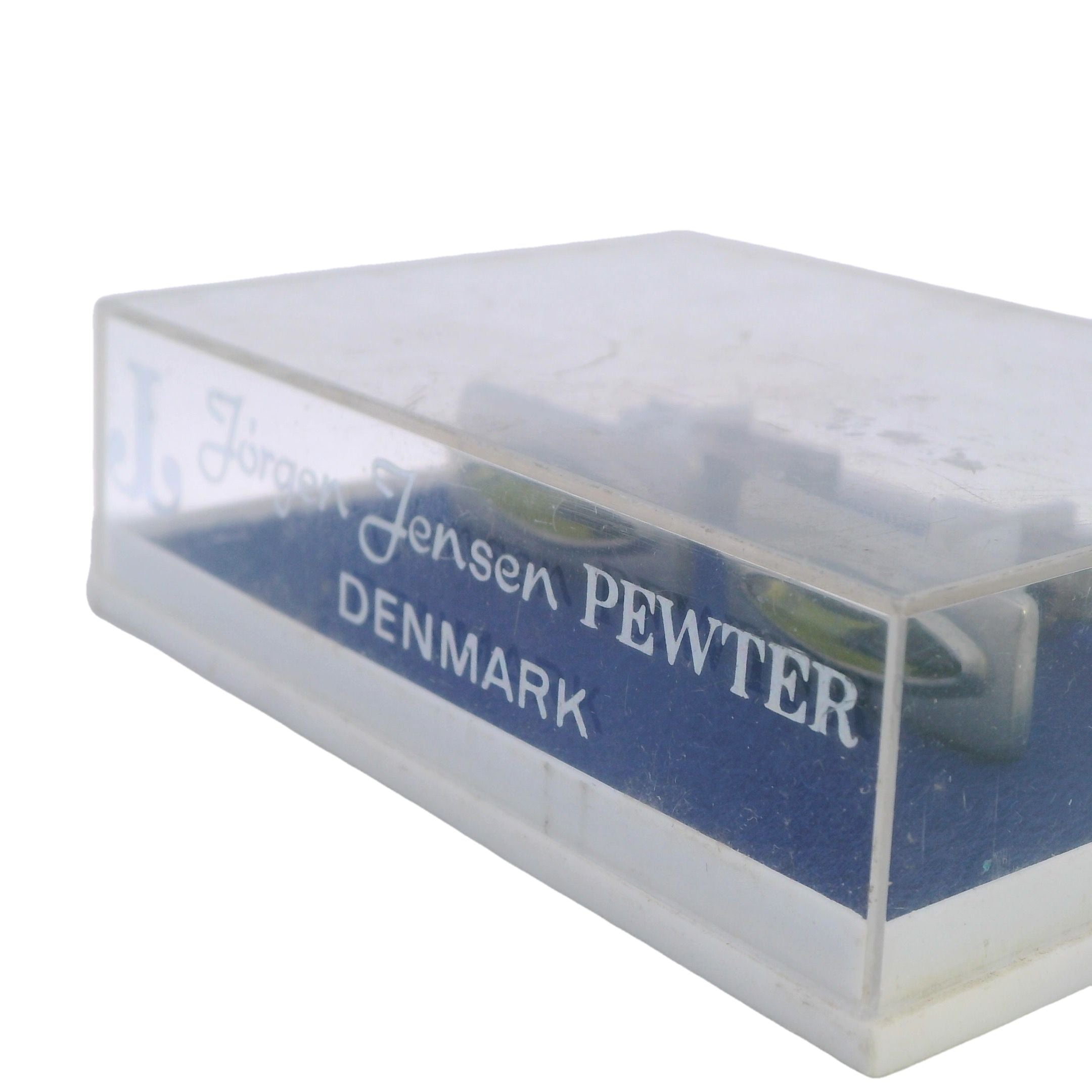 These cufflinks come in their original box marked "Jorgen Jensen Pewter Denmark," and are in lovely condition, showcasing the timeless design and craftsmanship Jensen is known for. Whether you're adding to a collection or seeking a stylish accessory, these cufflinks are a perfect choice.