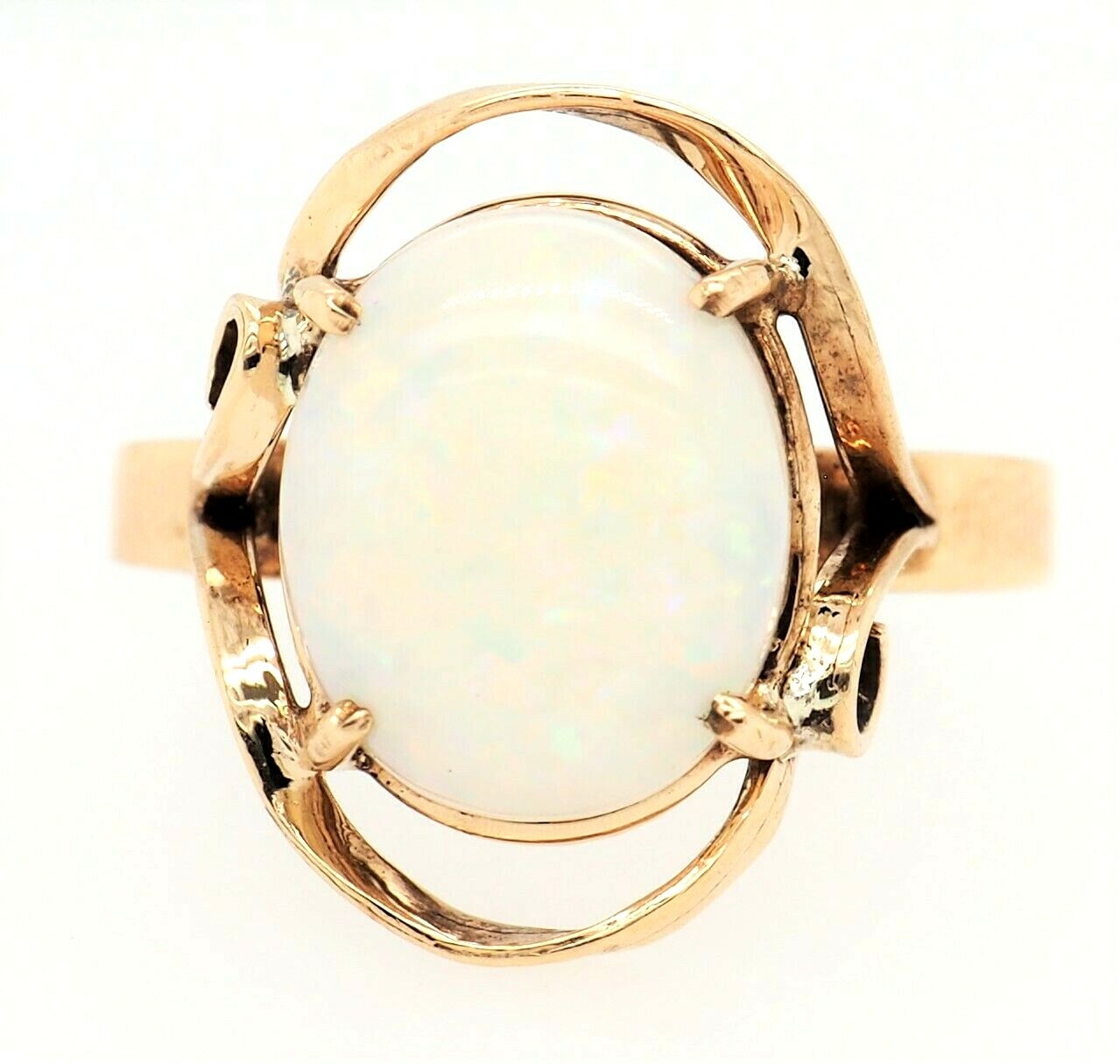 Opal & 9ct Yellow Gold Dress Ring Handmade Fine Jewellery Band Size O