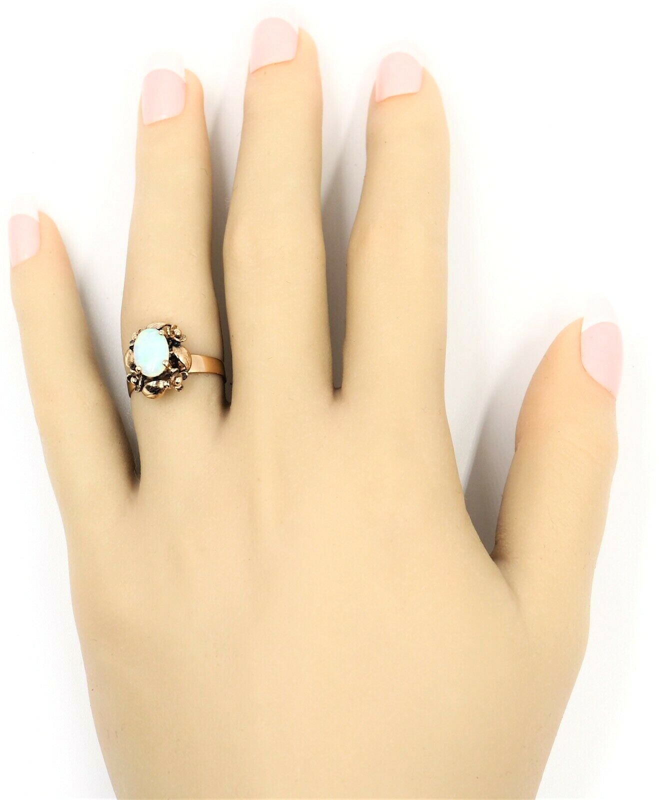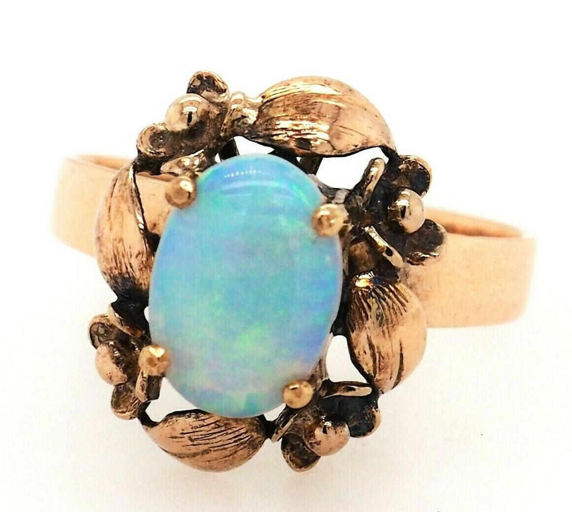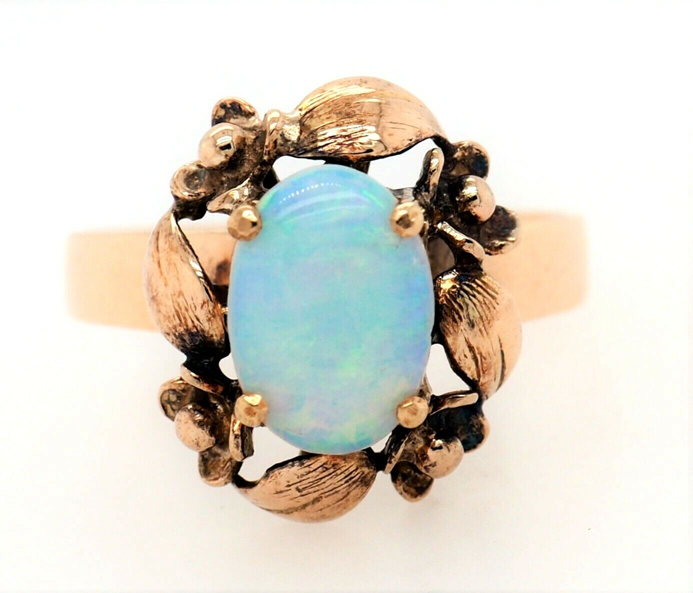Opal Dress Ring 9ct Yellow Gold Floral & Leaf Surround Fine Jewellery Size K 1/4