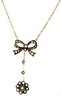 A beautiful 9ct yellow gold necklace featuring a bow tie and drop pearl centrepiece with a cable link chain each side.