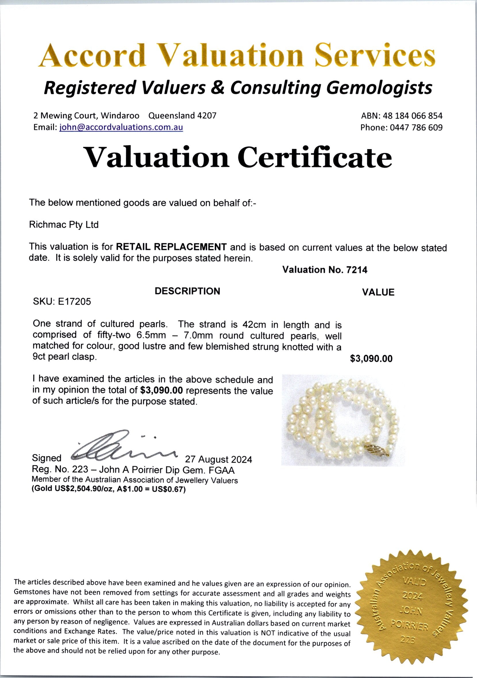 Measuring 42cm in length, this strand is strung with precision and care, with each pearl knotted individually to ensure durability and grace. The attention to detail in this classic design ensures that the pearls rest beautifully against the skin, offering a comfortable and refined wear.