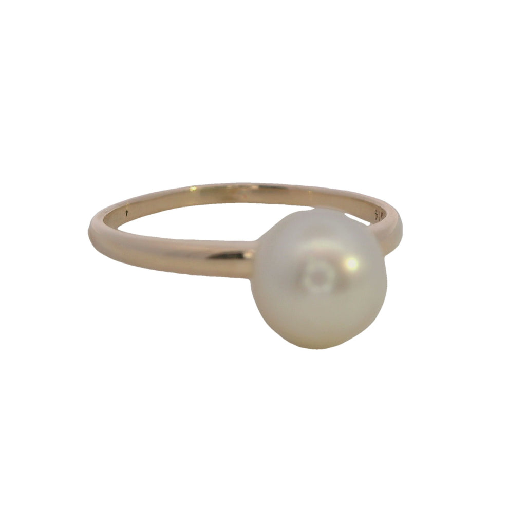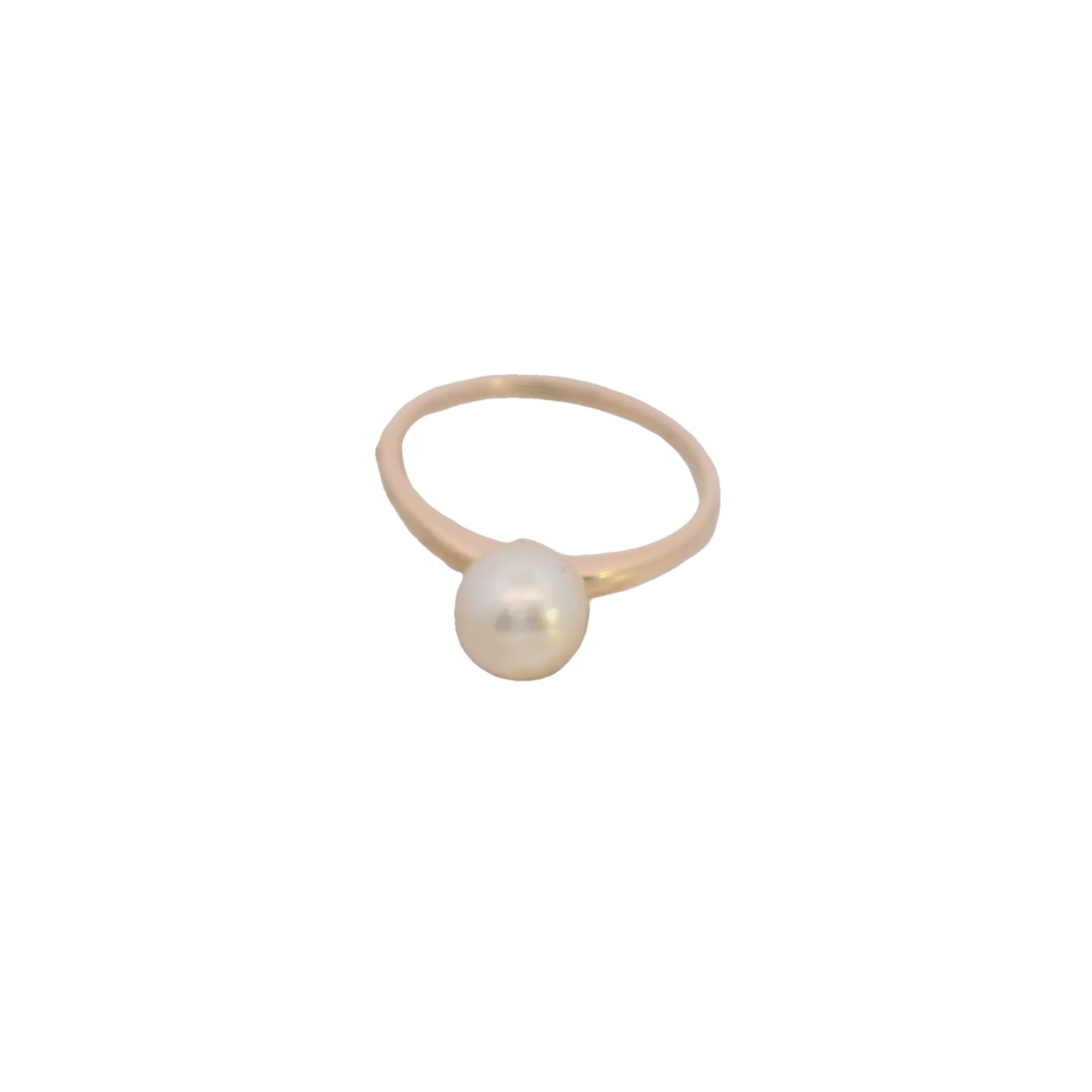 This exquisite Mikimoto pearl ring is cast in 14K yellow gold, featuring a 1.3mm - 1.7mm rounded tapered shank that thickens at the shoulders. The ring is pin set with a stunning 6.5mm - 7.0mm cultured pearl. Known for its exceptional quality, the pearl displays a good luster with few blemishes, reflecting the world-class craftsmanship Mikimoto is renowned for.