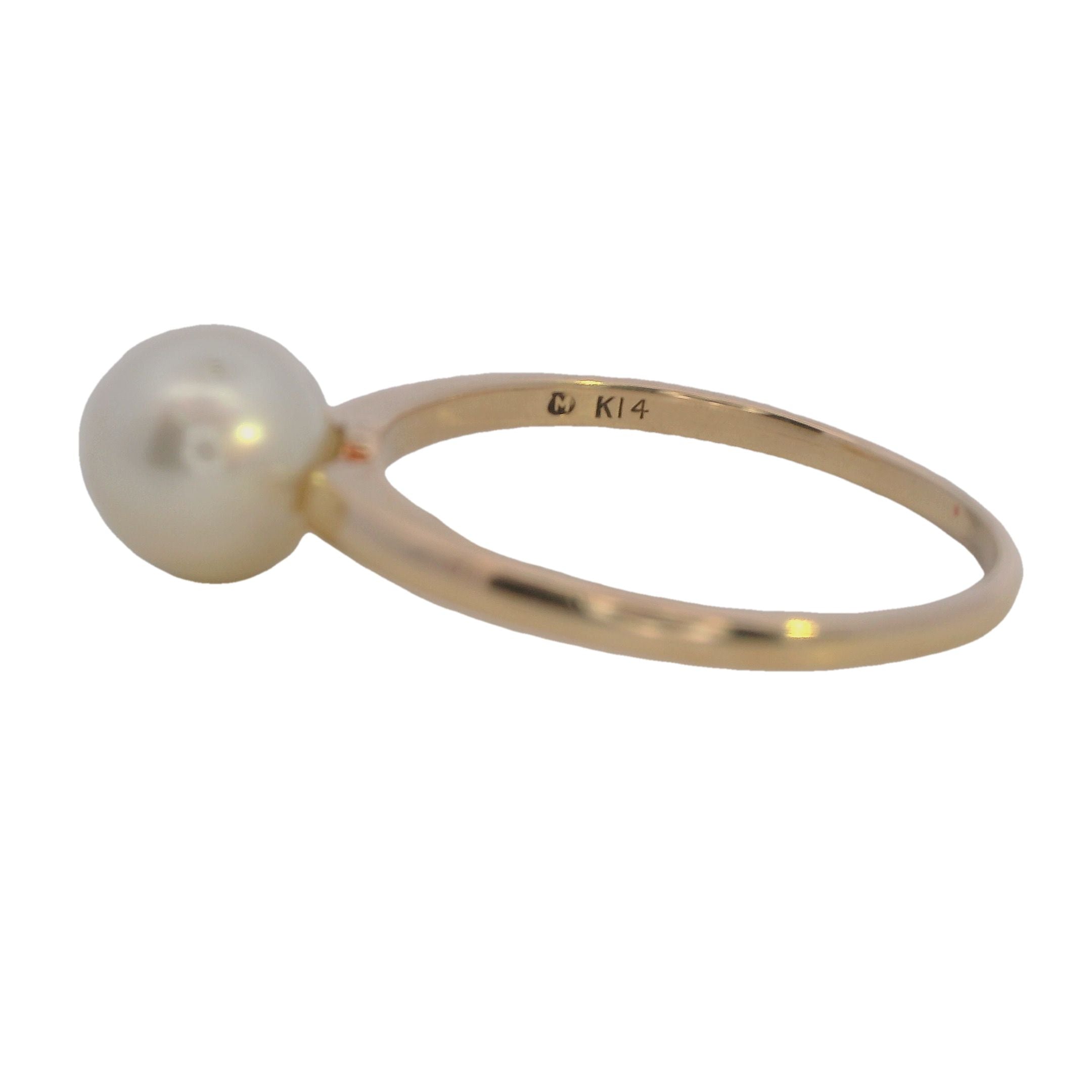 The ring weighs 1.7gms and is stamped 14K and Mikimoto, ensuring authenticity. Valued at $930.00, this ring is a perfect addition to any fine jewelry collection, offering both timeless elegance and sophistication. The ring size is US 6 / UK/AU L 1/2.