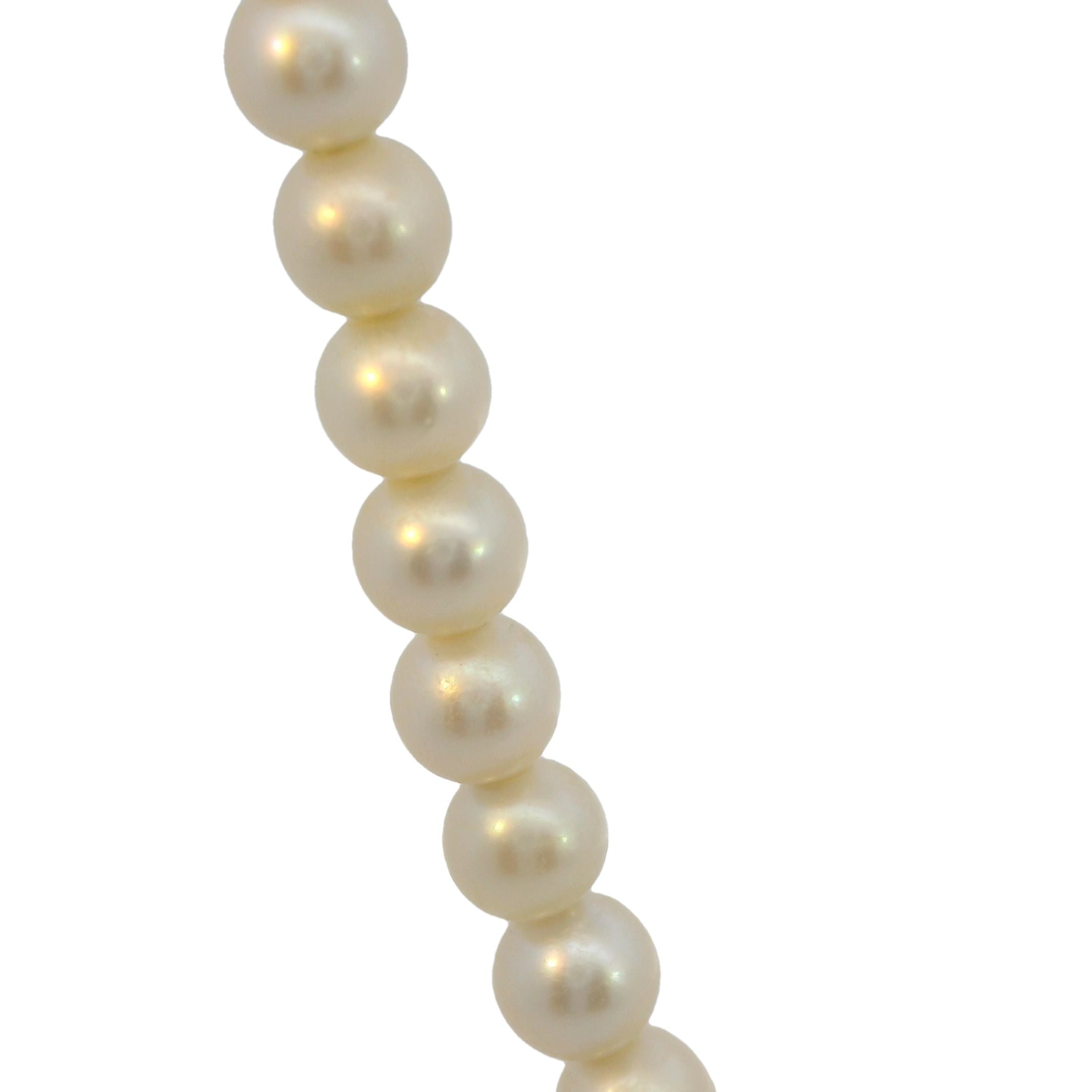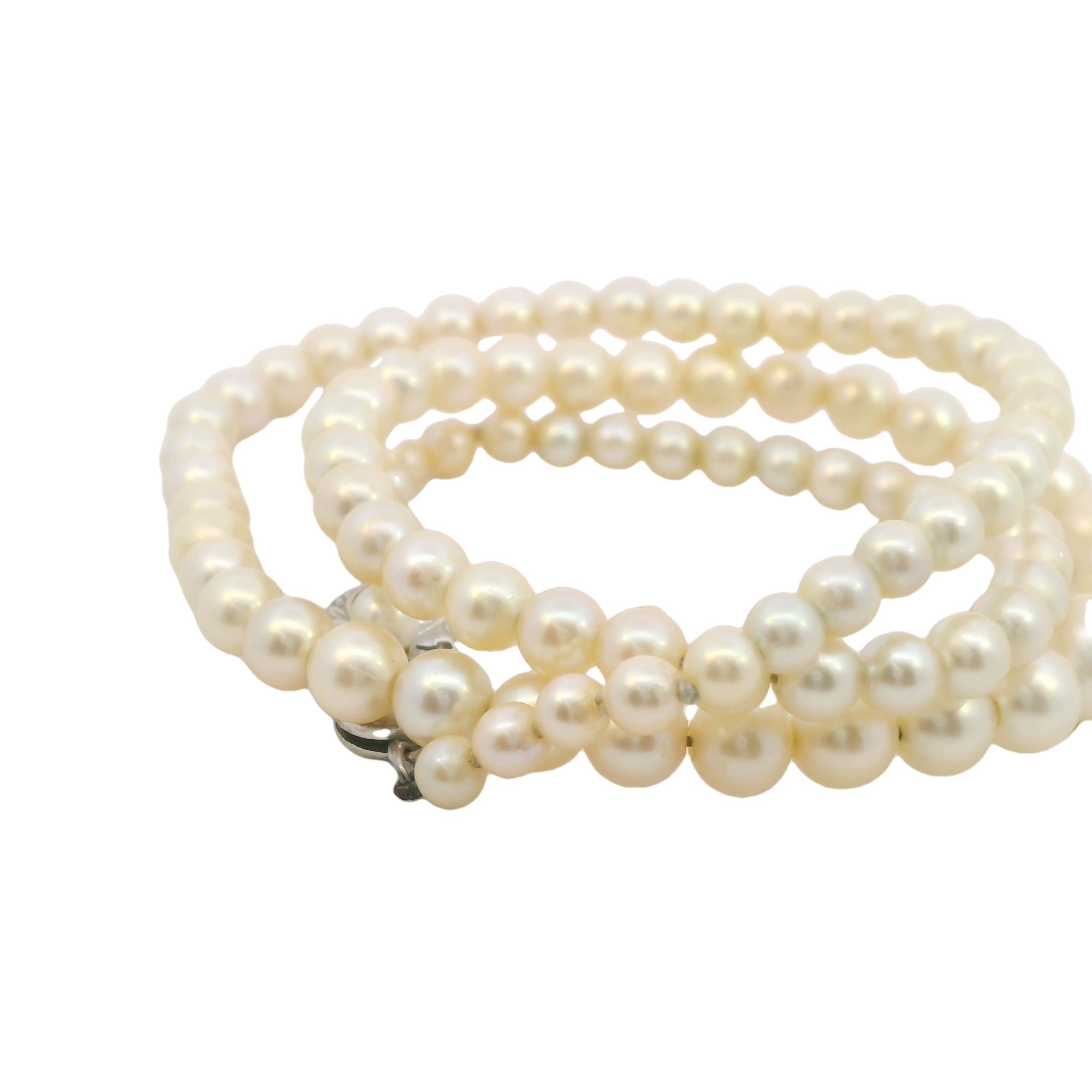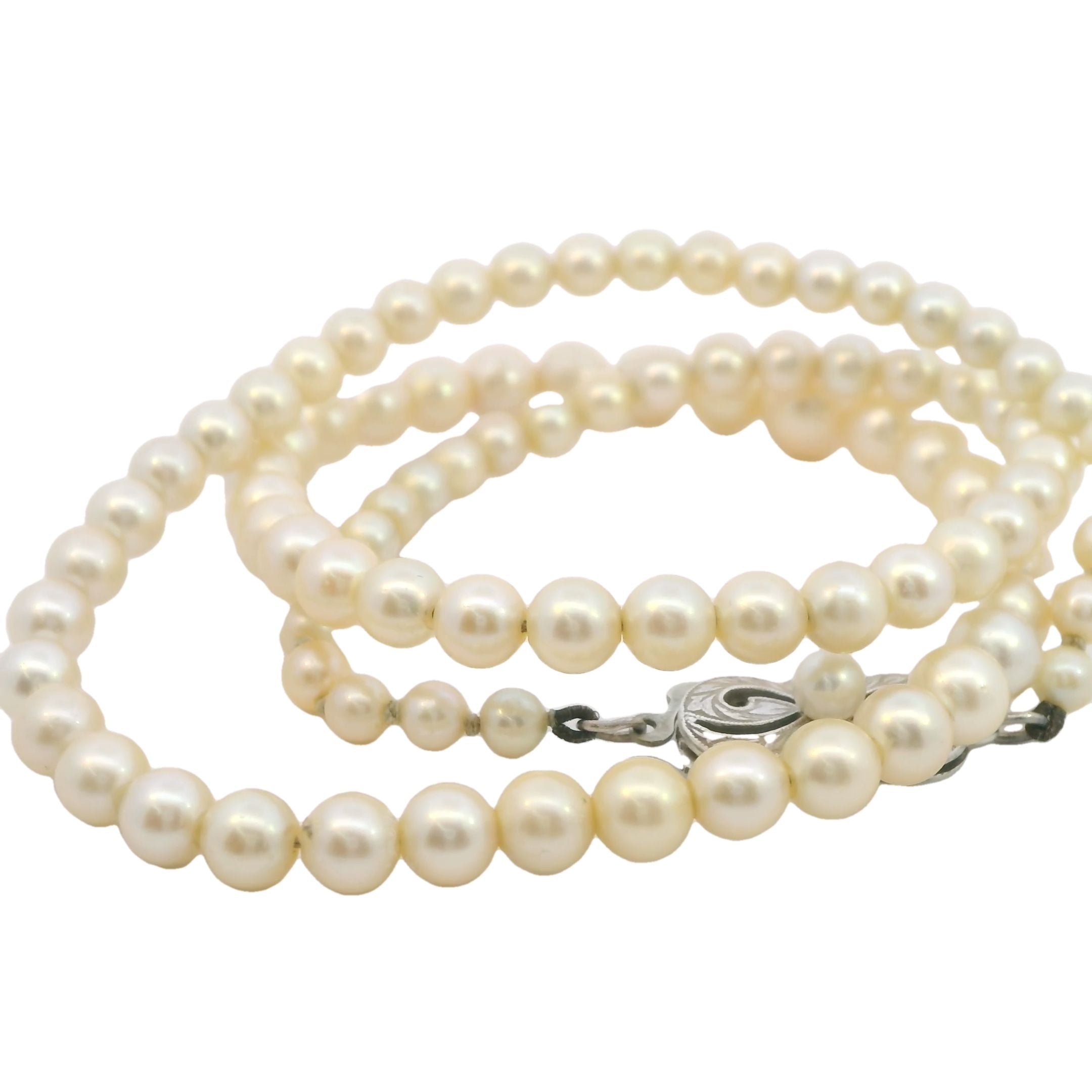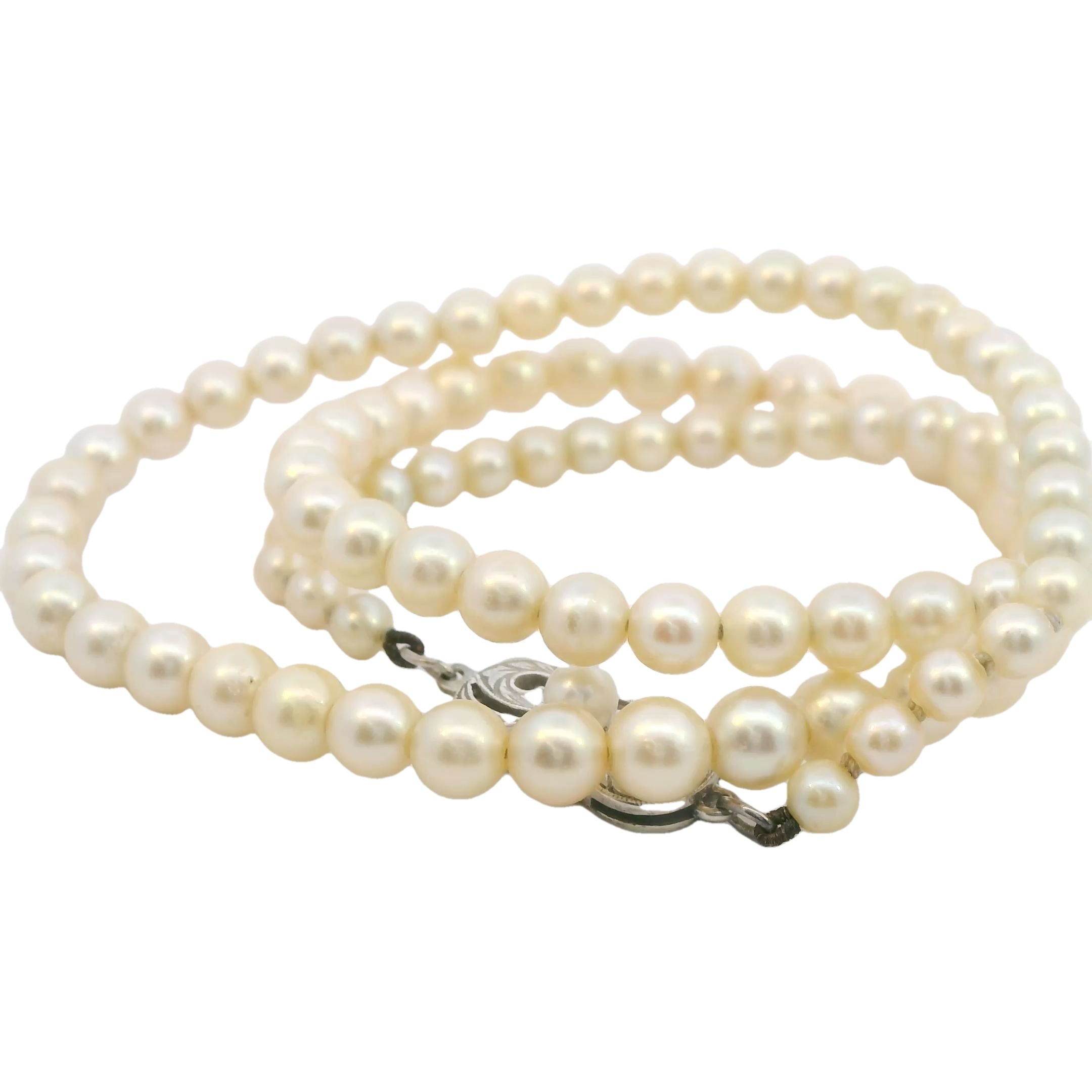 - Clasp: Silver pearl clasp with 3.9mm cultured pearl, hallmarked Mikimoto