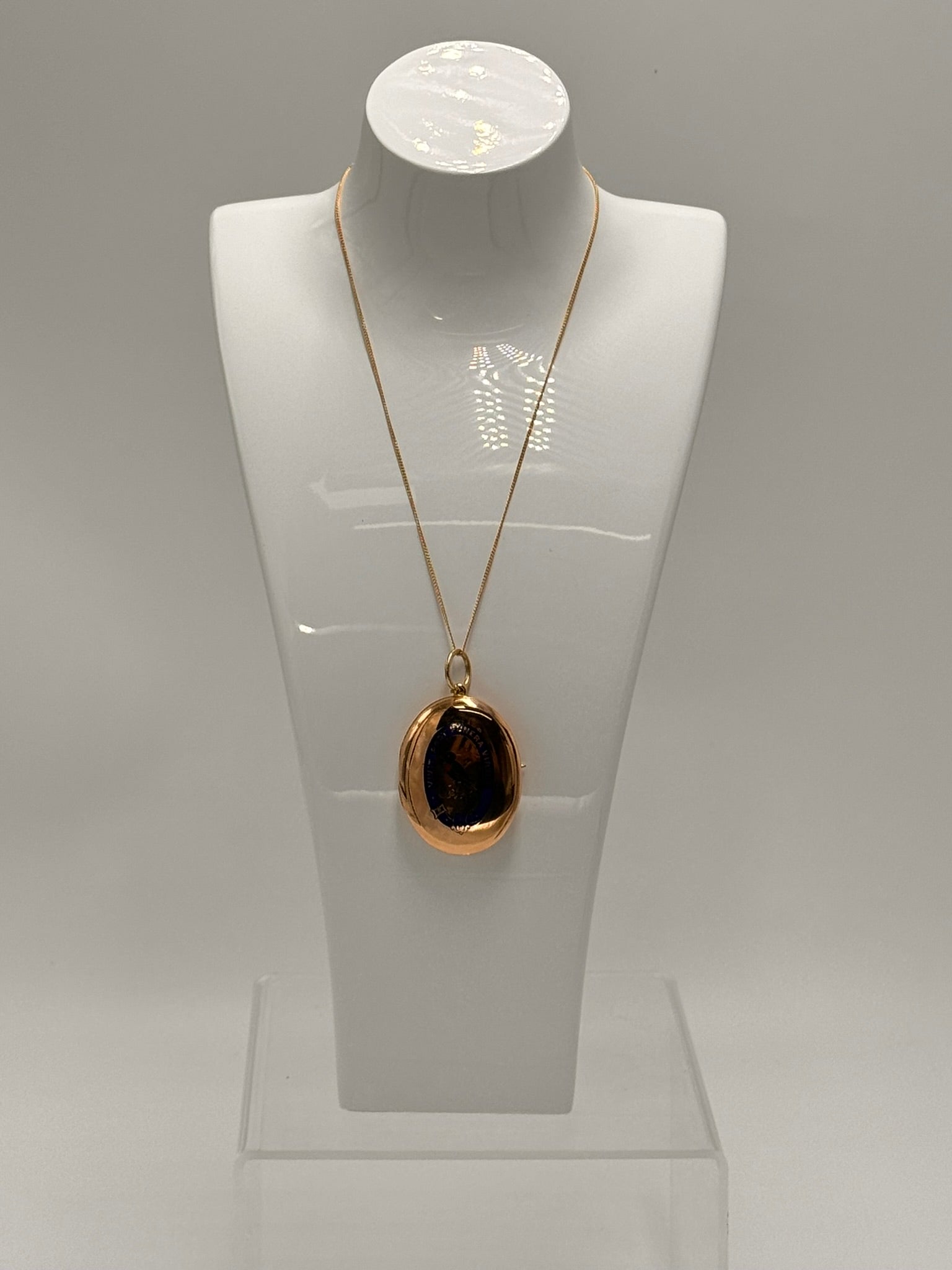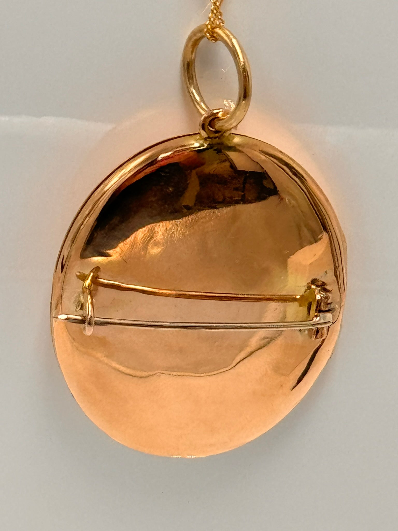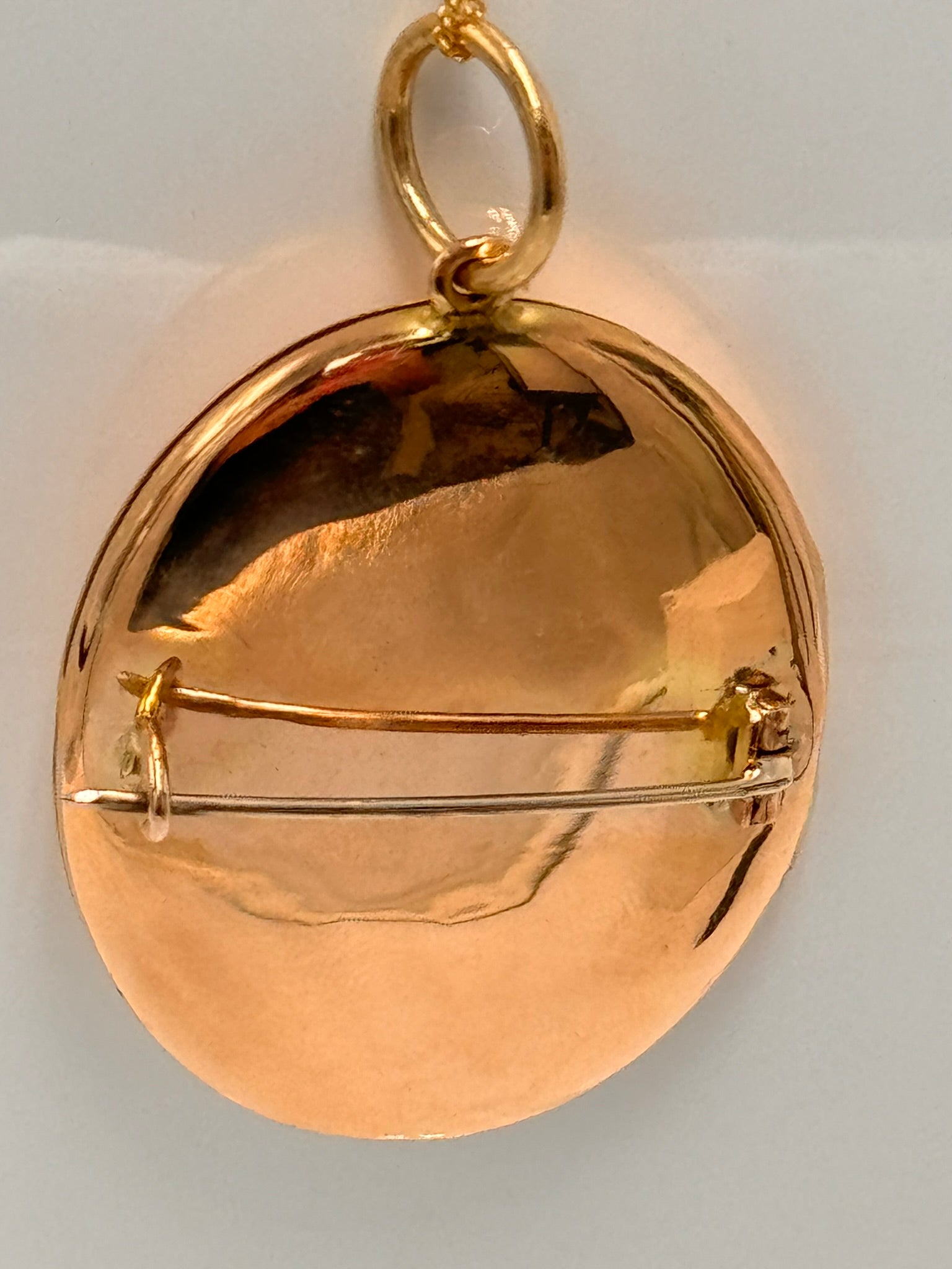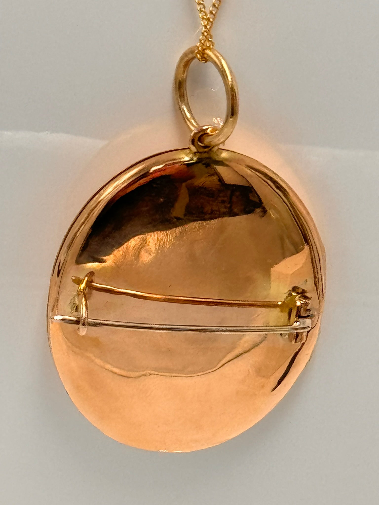 Pressed and Assembled Oval Yellow Gold Opening Brooch Pendant Locket