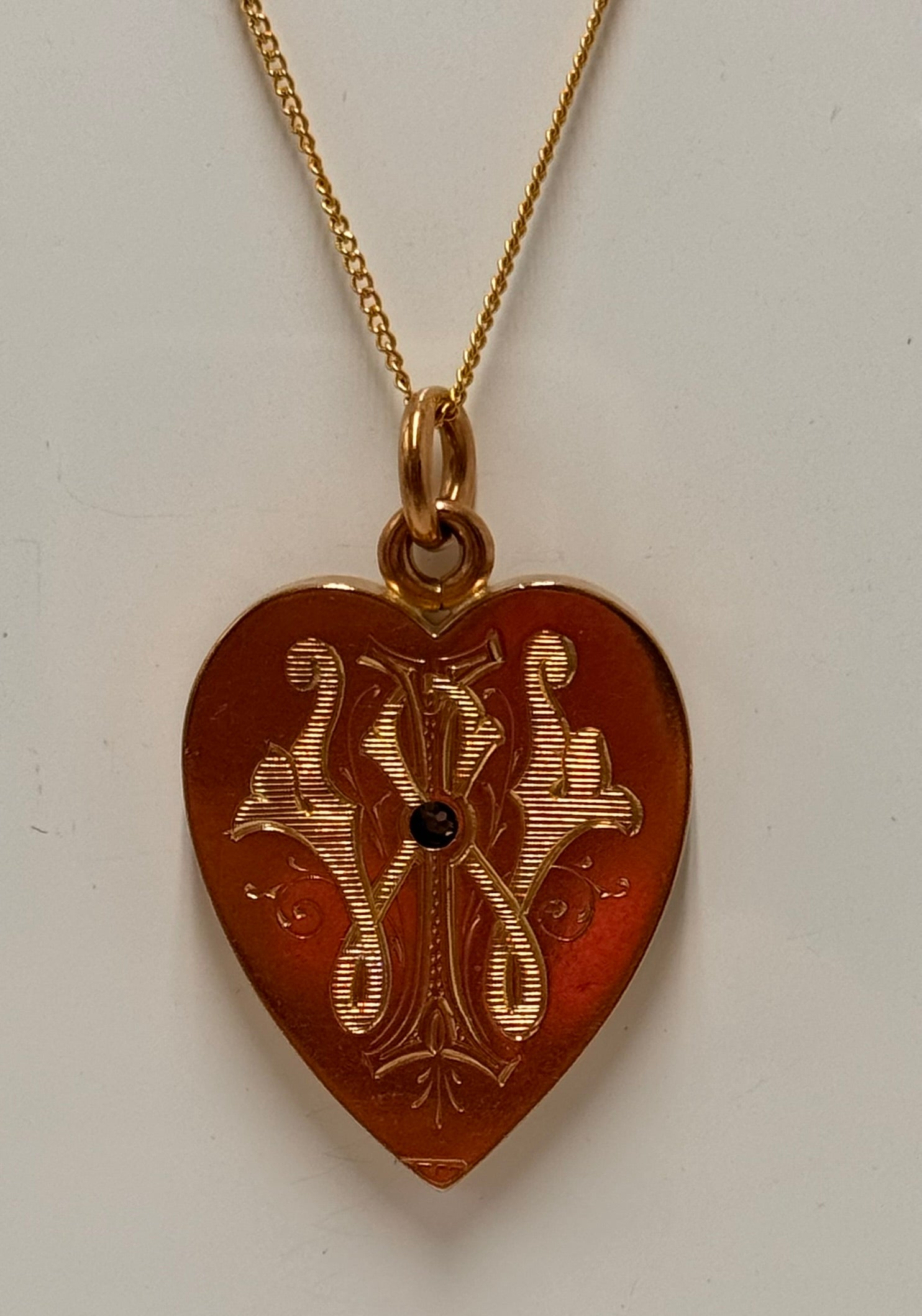 Stunning Antique 9ct Yellow Gold Heart Pendant with Old Mine Cut Diamond – A Piece of History and Elegance