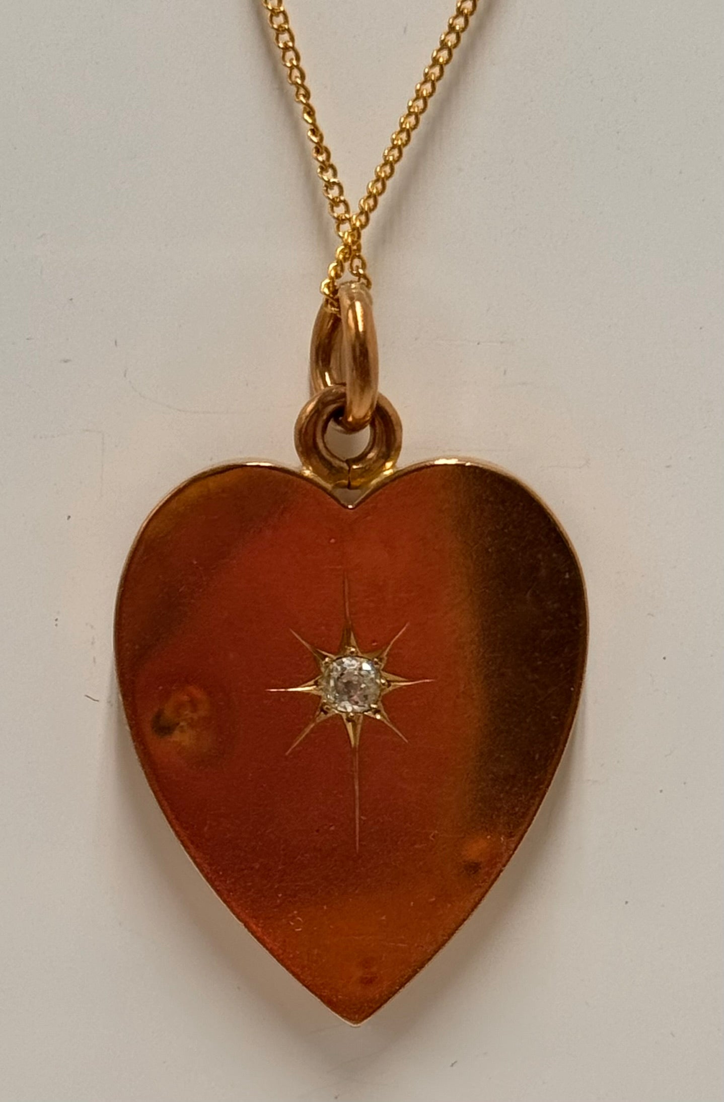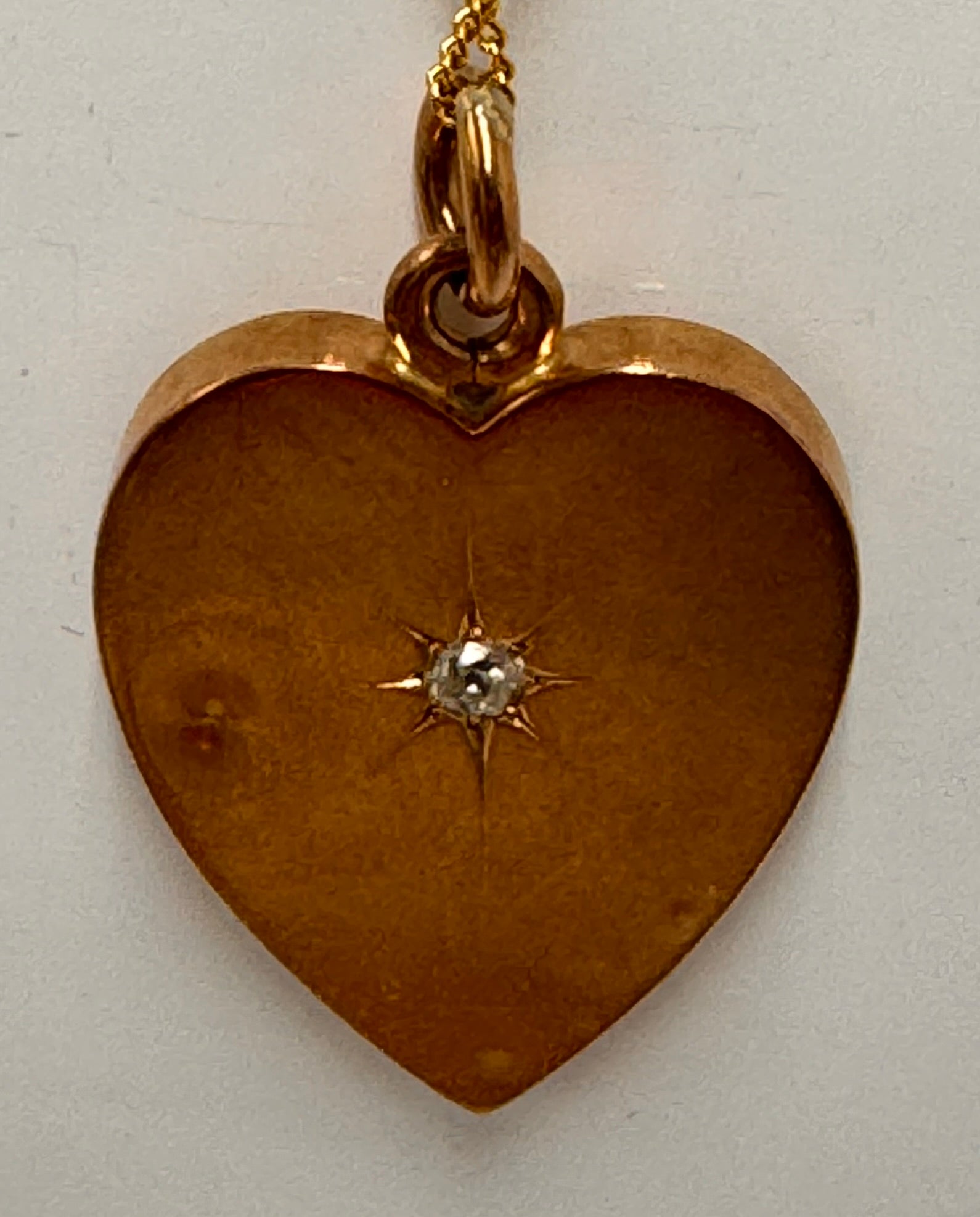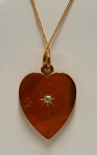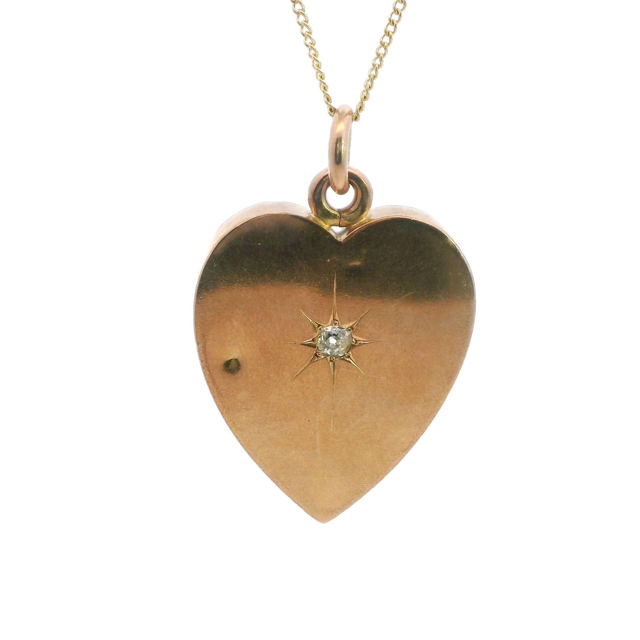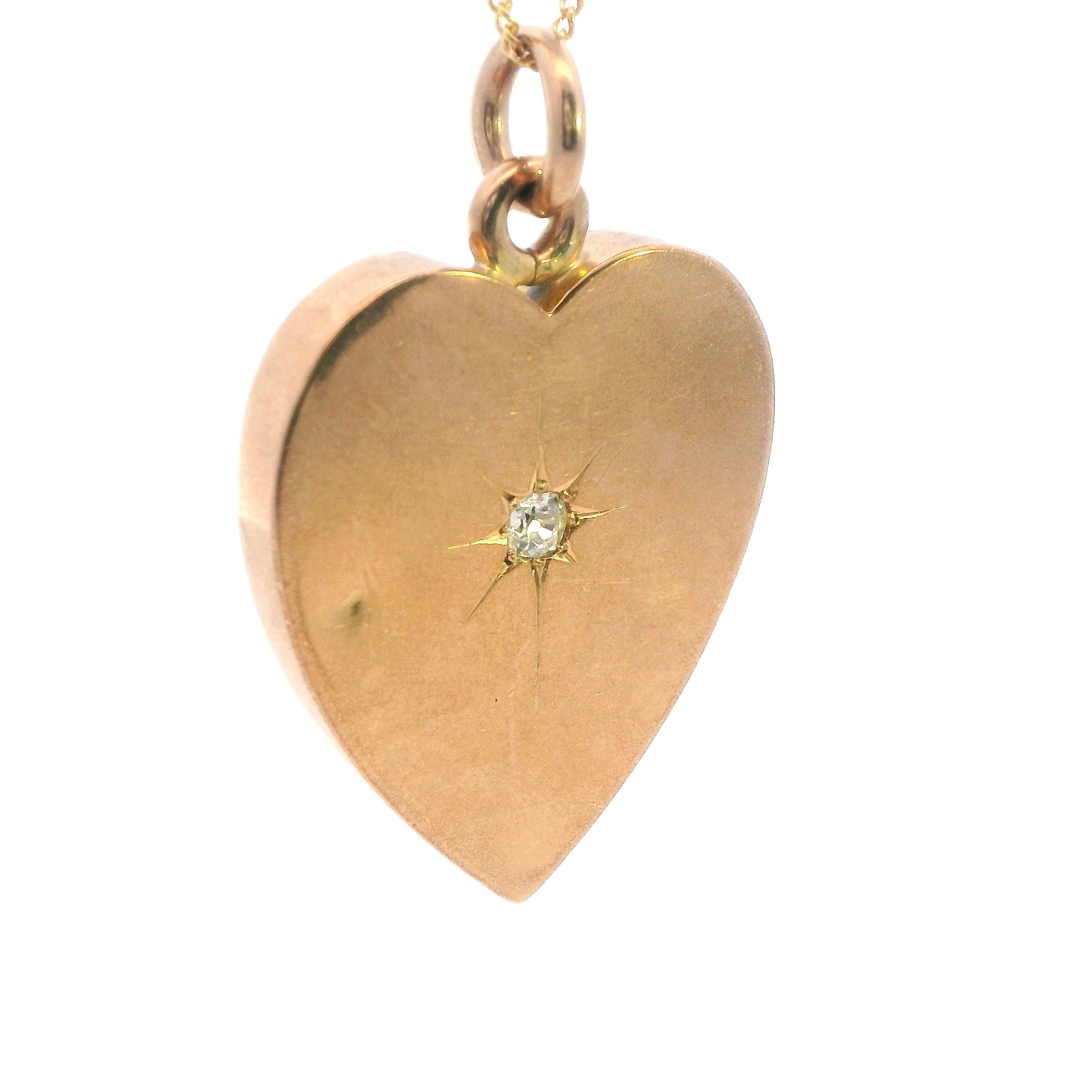 Stunning Antique 9ct Yellow Gold Heart Pendant with Old Mine Cut Diamond