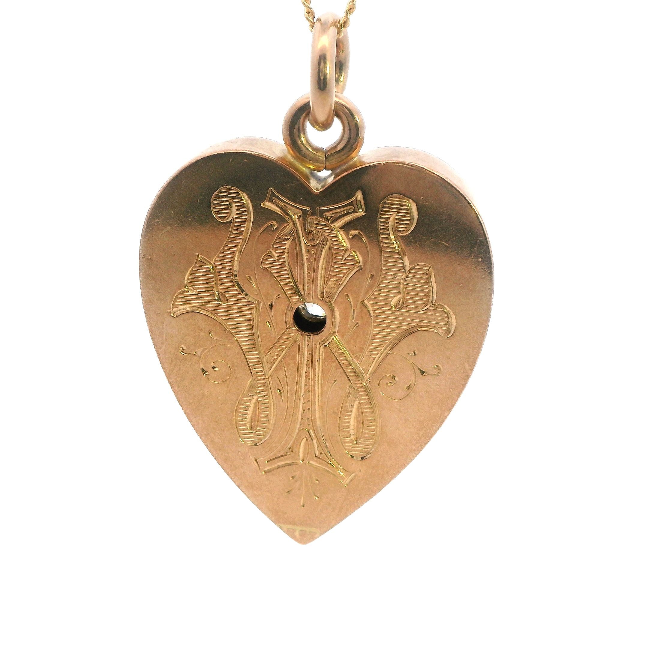 This beautiful antique 9ct yellow gold hollow heart pendant is a timeless piece, perfect for any fine jewelry collection. The pendant measures 33.7mm x 24.7mm and features an engraved back. On the front, it is star-set with a 0.10ct "old mine cut" diamond, graded "H" in color and "SI" in clarity. This lovely pendant offers both elegance and history, as it showcases an old mine cut diamond, a style that dates back to the 18th and 19th centuries. While the pendant is in great condition, please note that the side with the diamond has three small dents, adding to its antique charm.