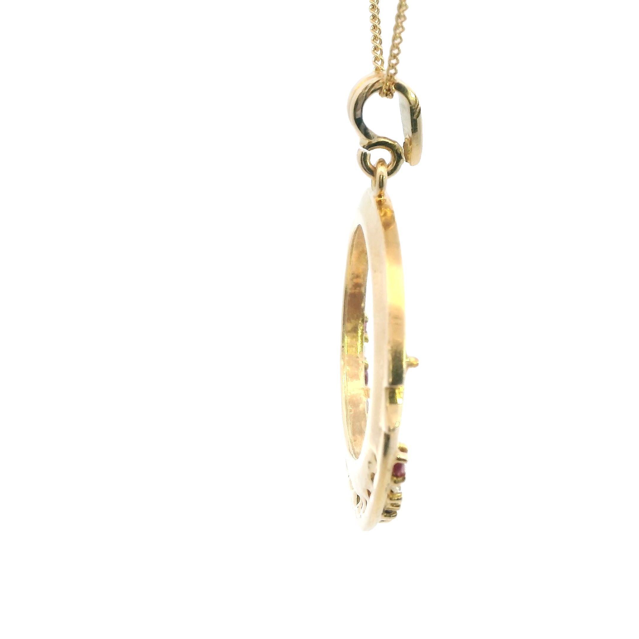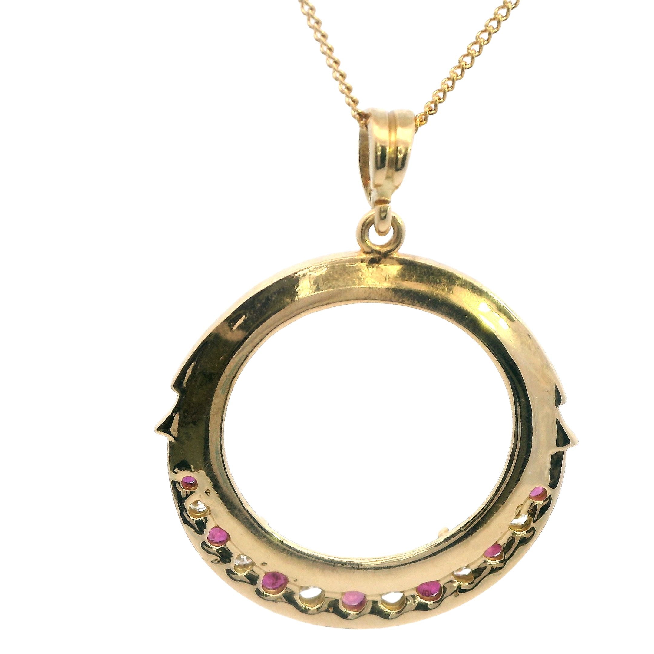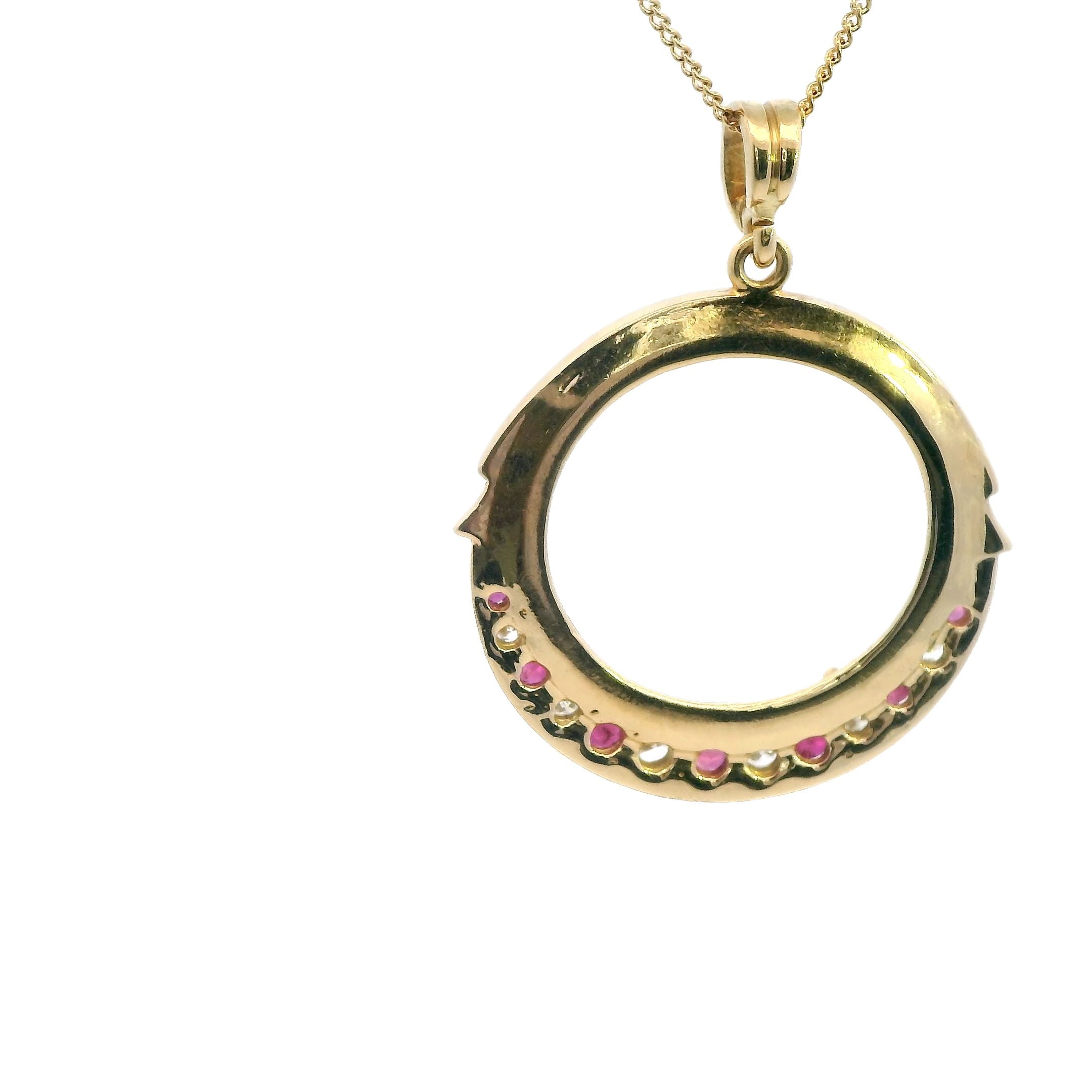 Exquisite 18ct Yellow Gold Diamond and Ruby Coin Pendant - Timeless Elegance