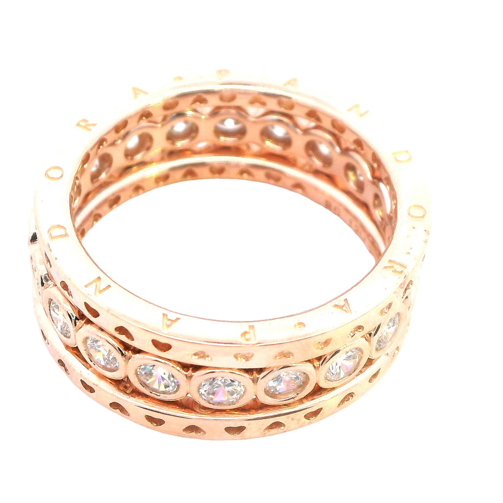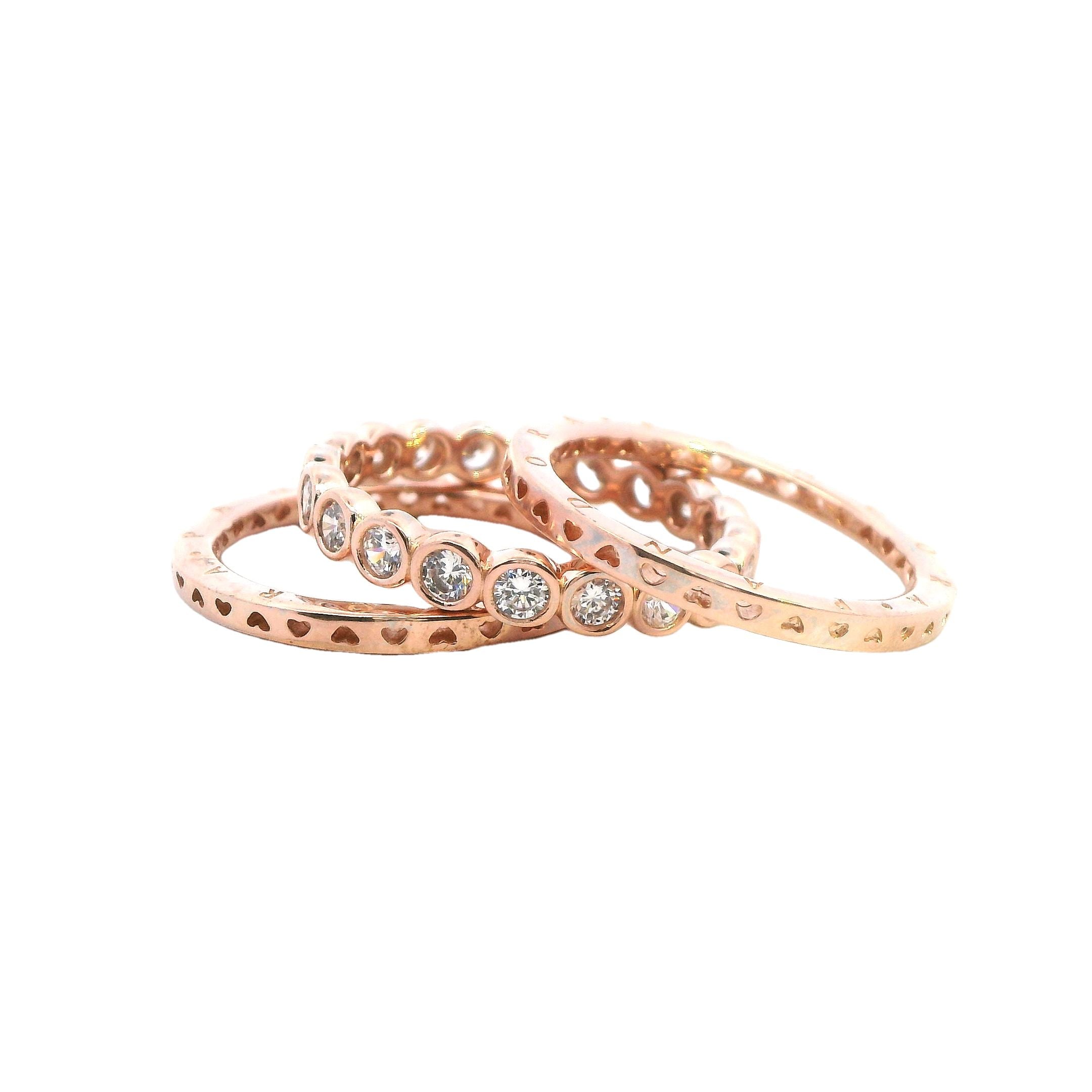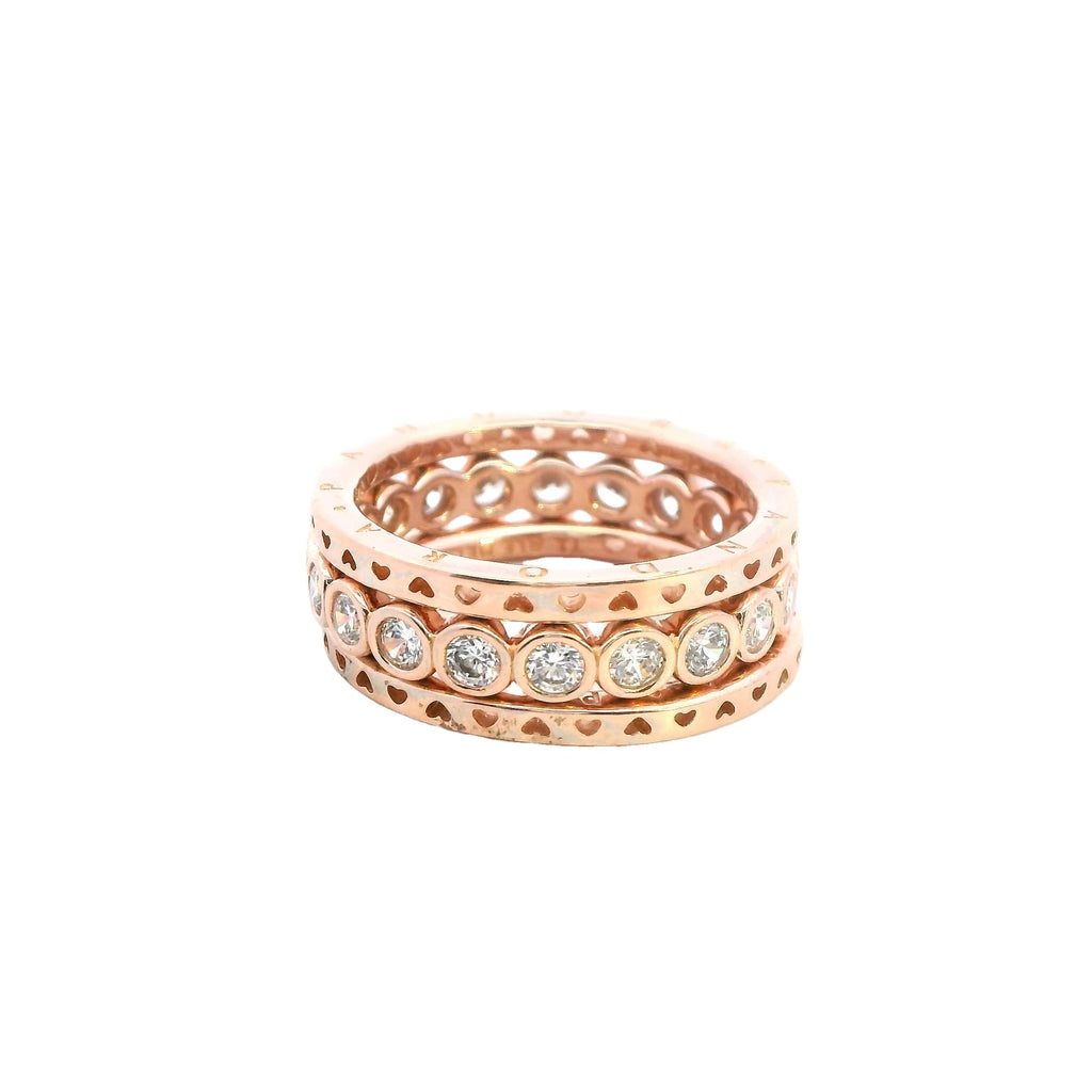 Pandora Set of Three Rose Gold Plated Rings - Two Bands & CZ Ring