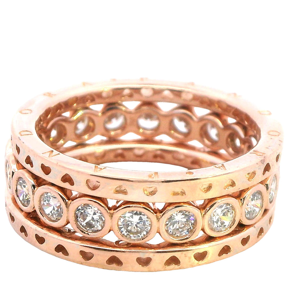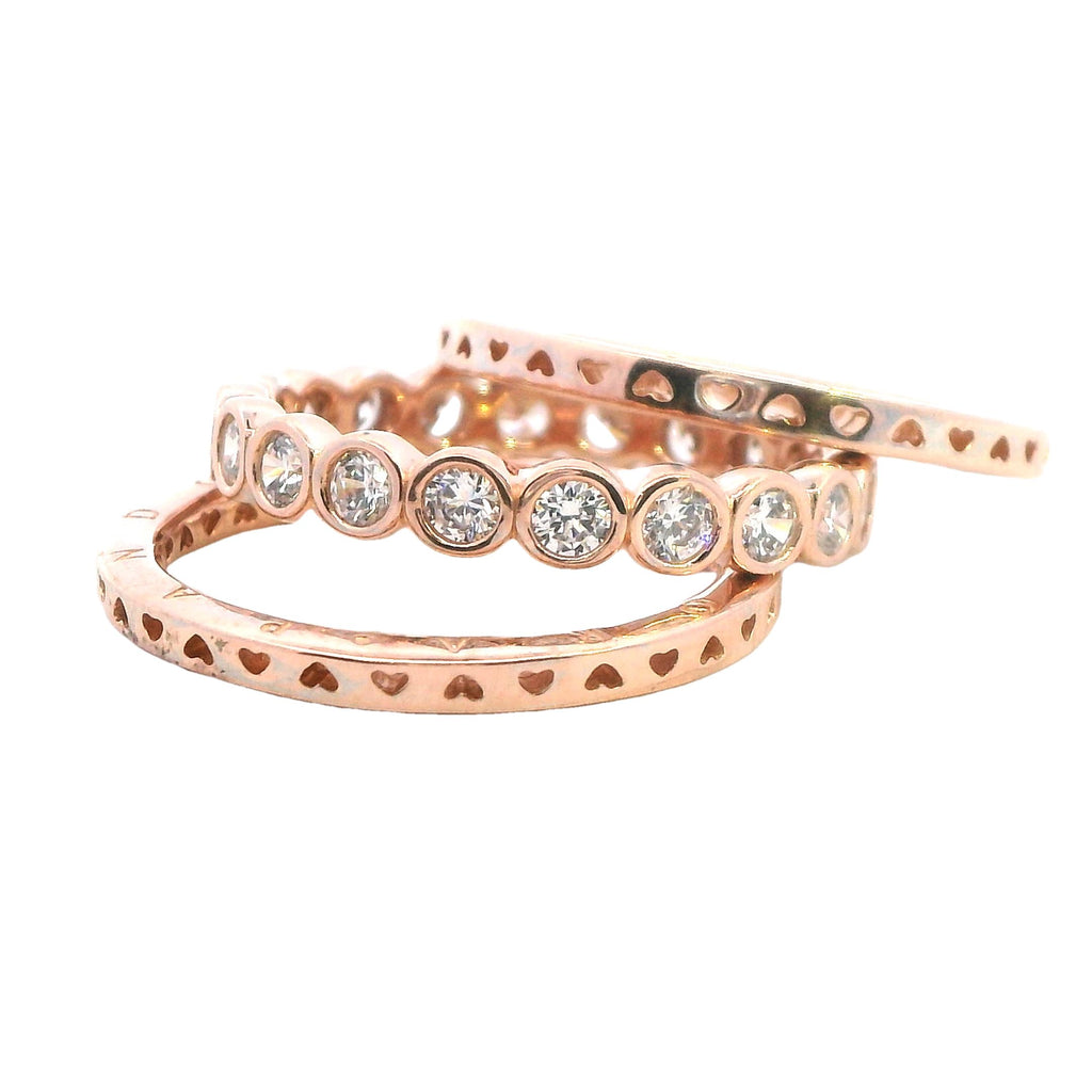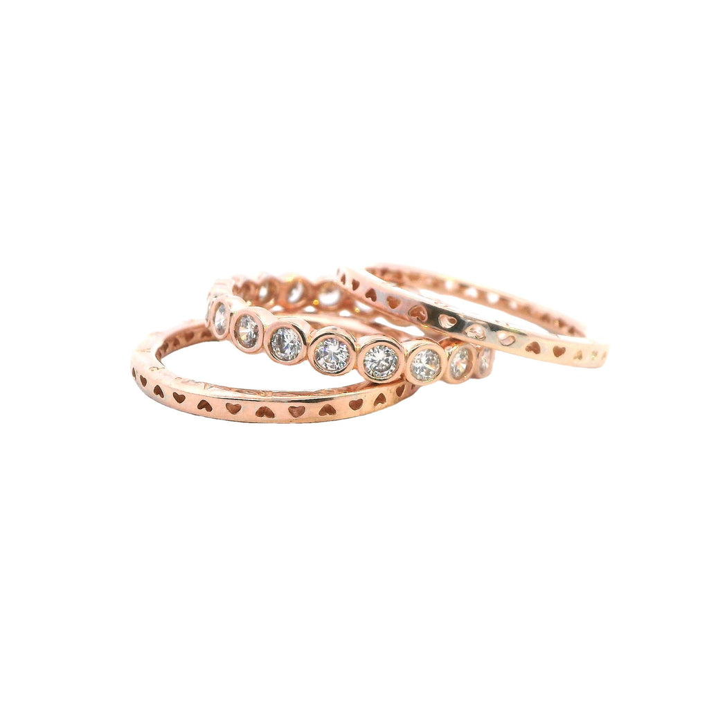 Pandora Set of Three Rose Gold Plated Rings - Two Bands & CZ Ring