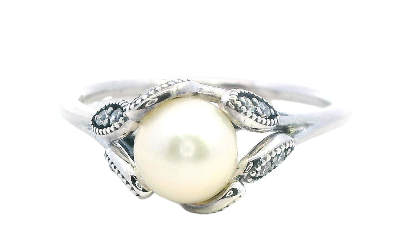 Pandora Silver Ring with Pearl - Size US 8 1/4 / UK/AU Q