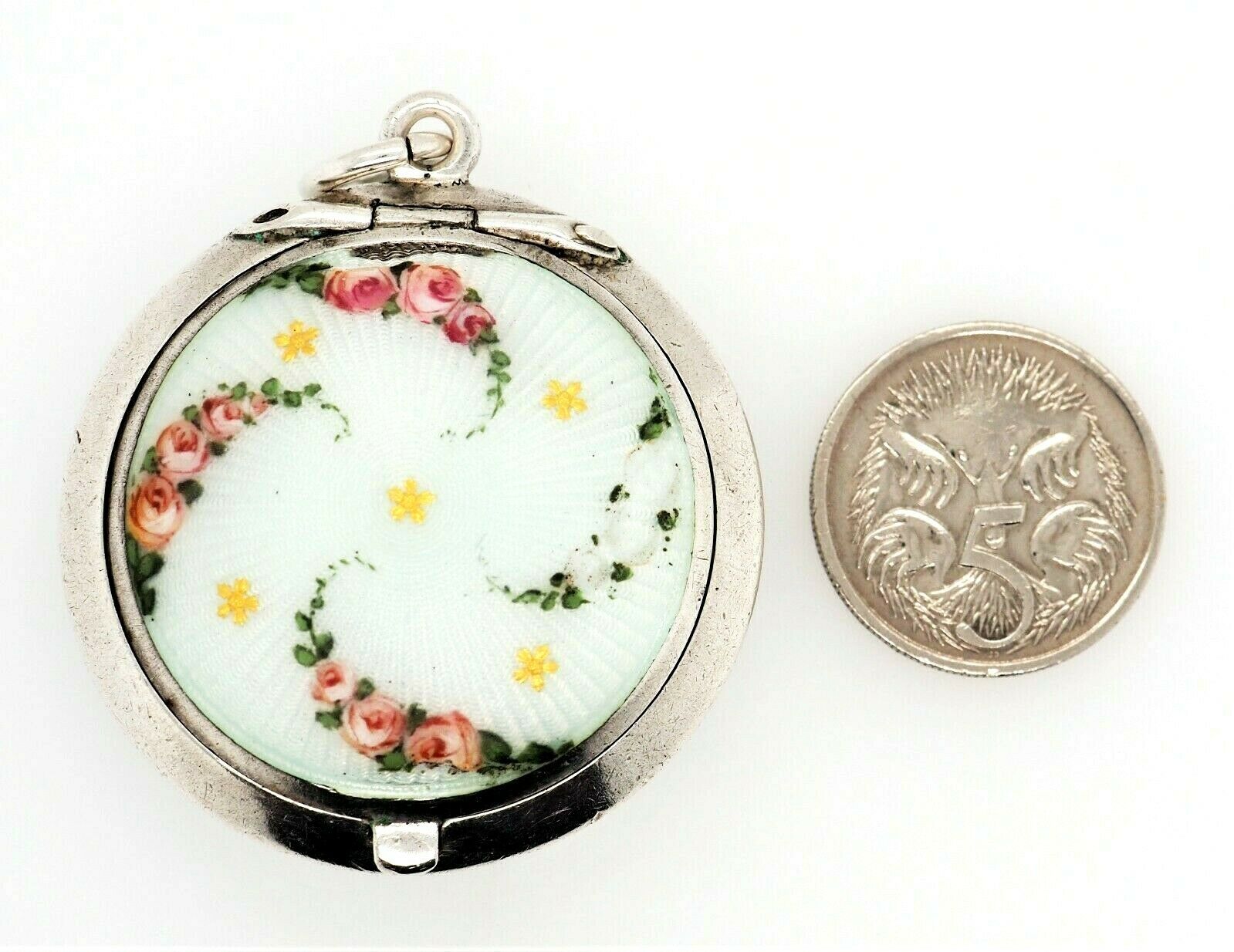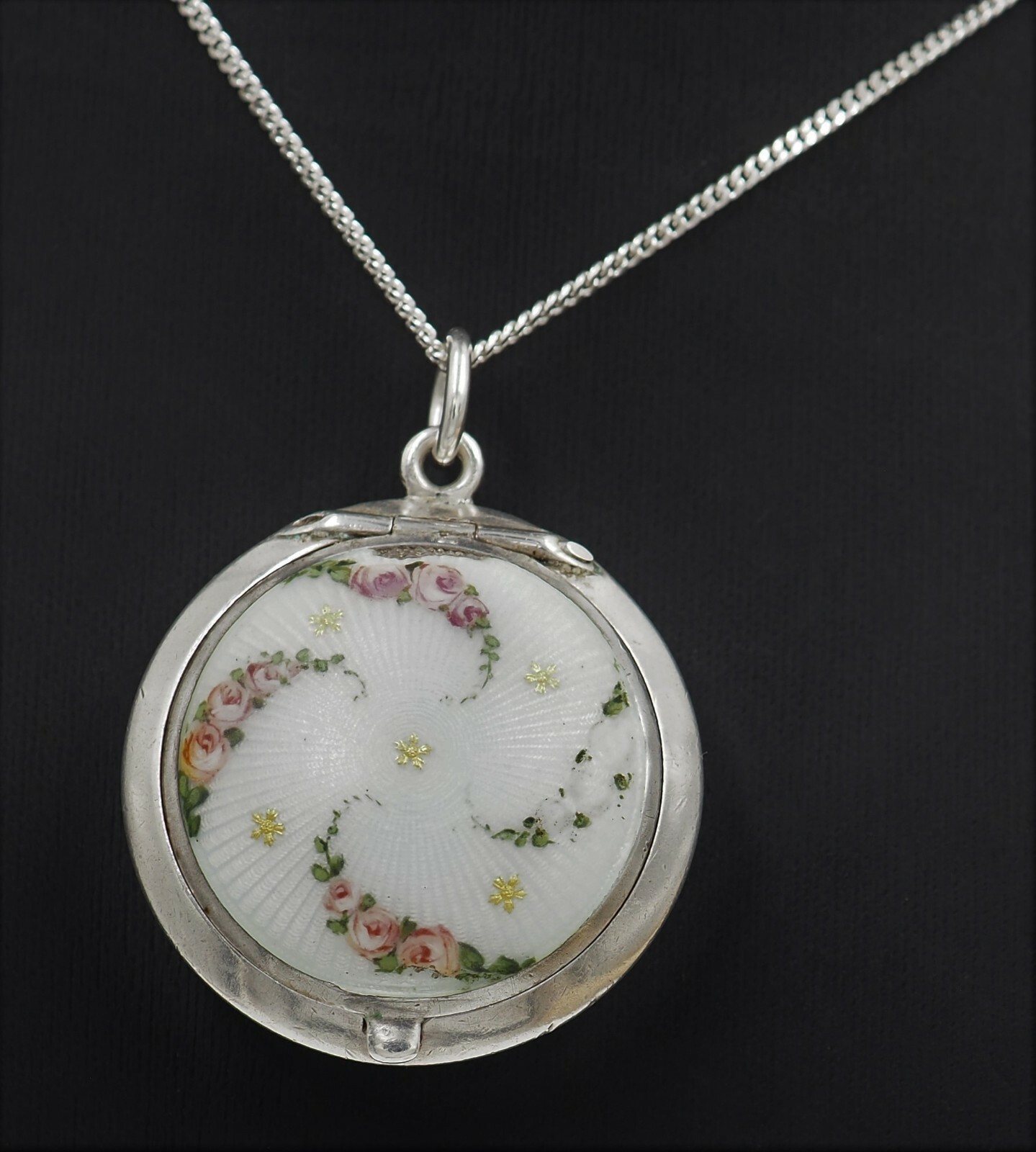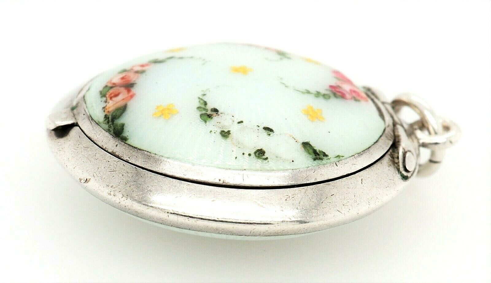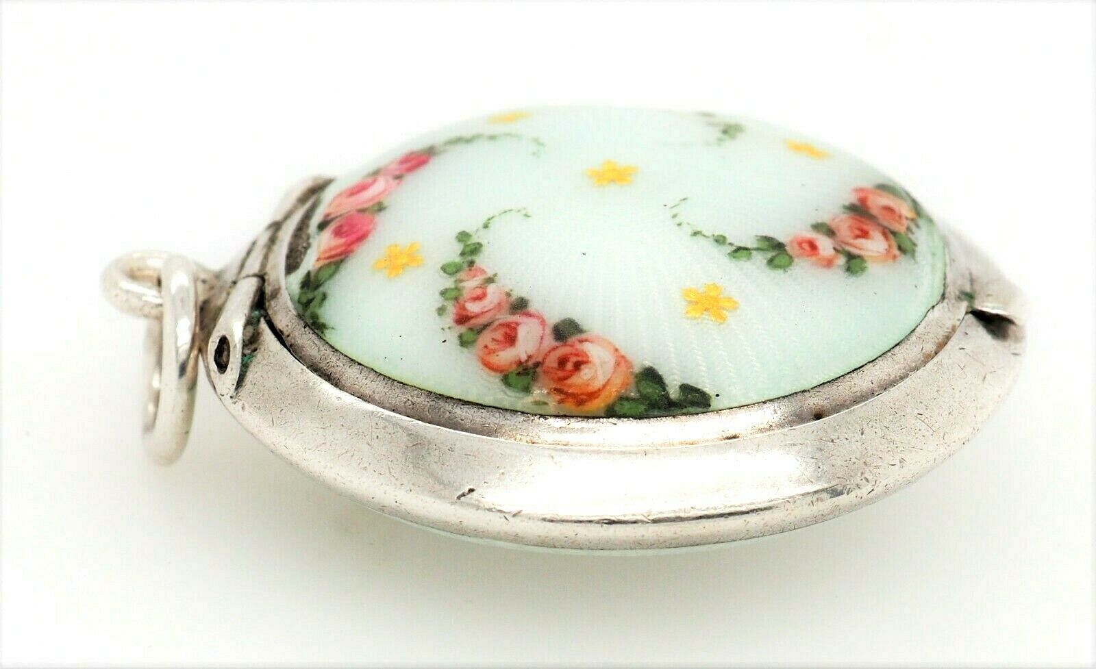Silver Hand Painted Locket Pendant Fine Vintage Jewellery