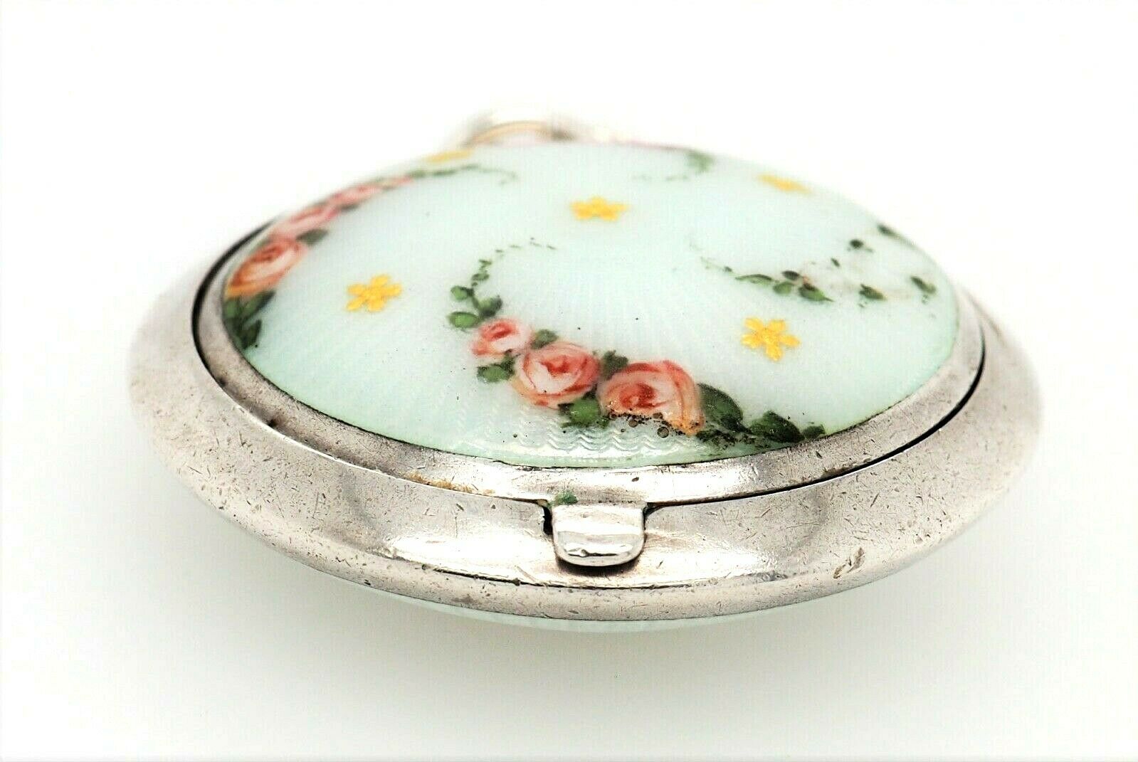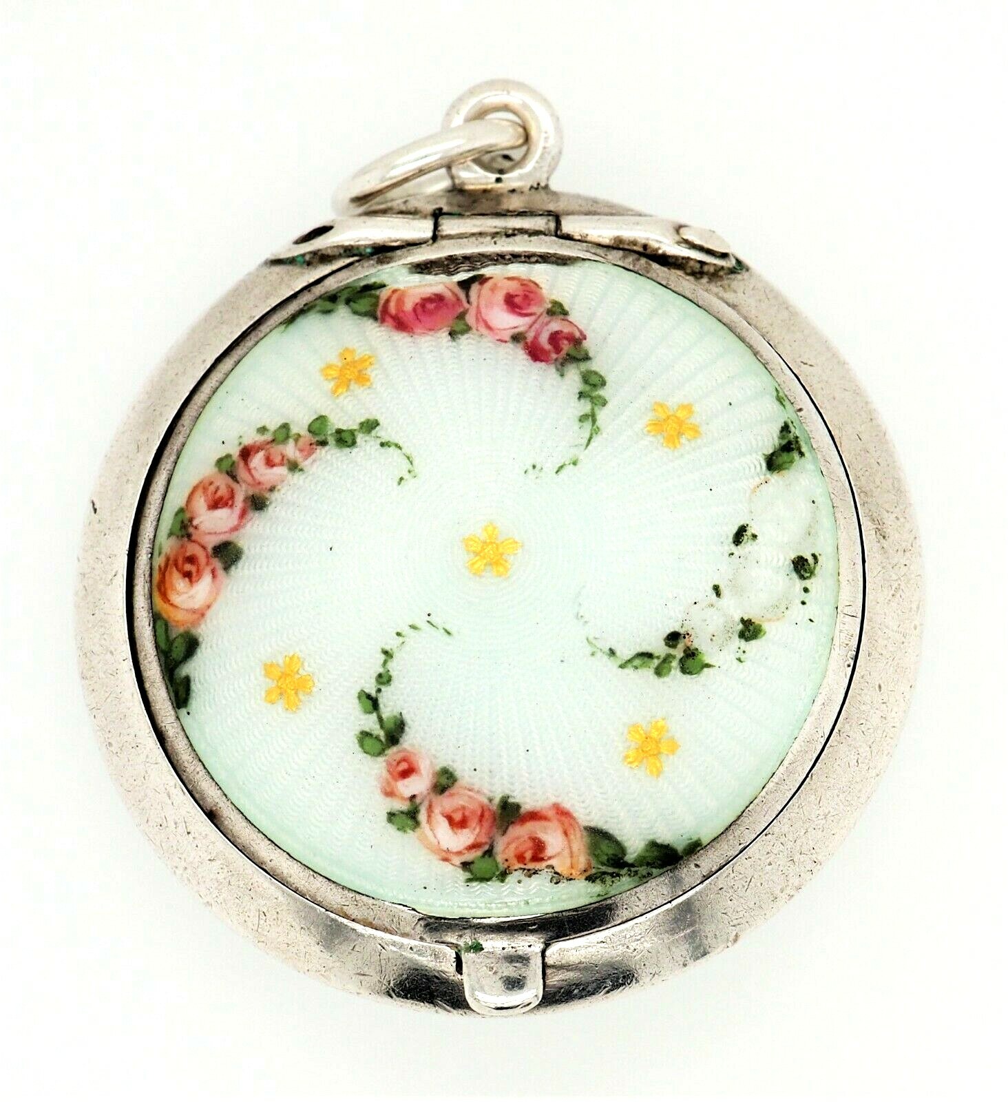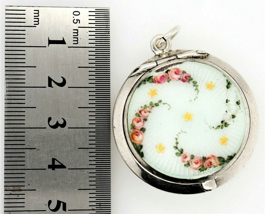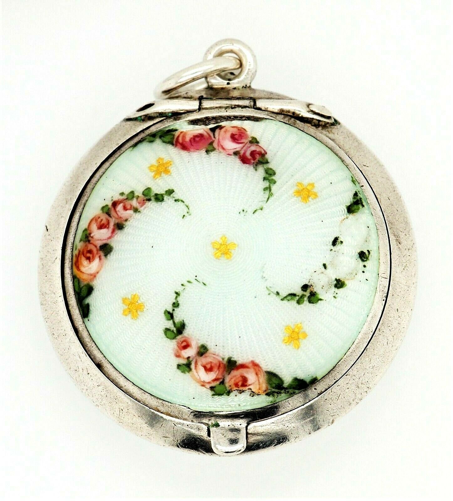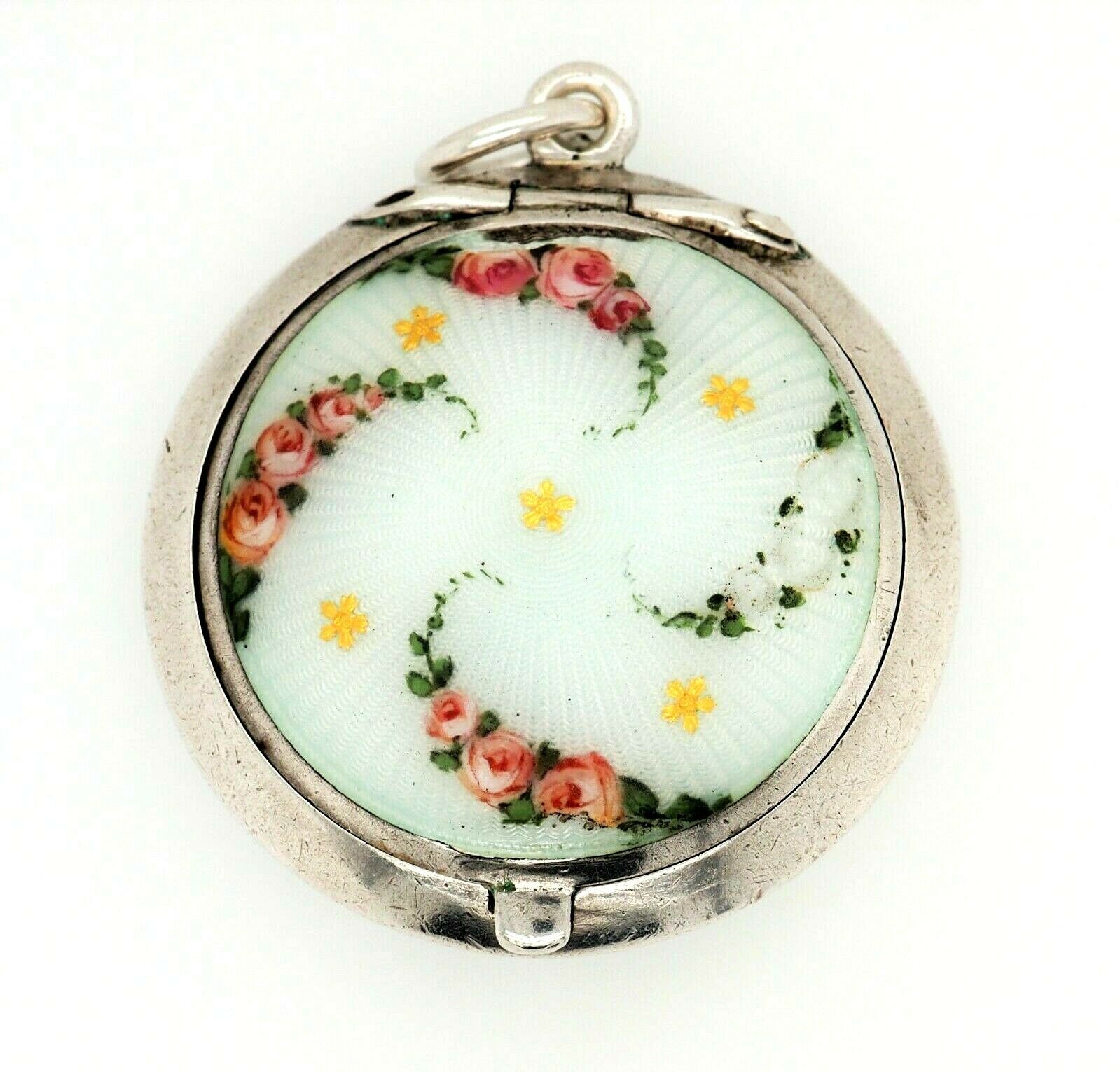 Silver Hand Painted Locket Pendant Fine Vintage Jewellery