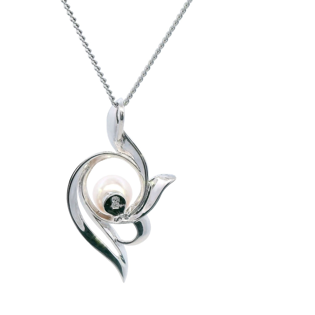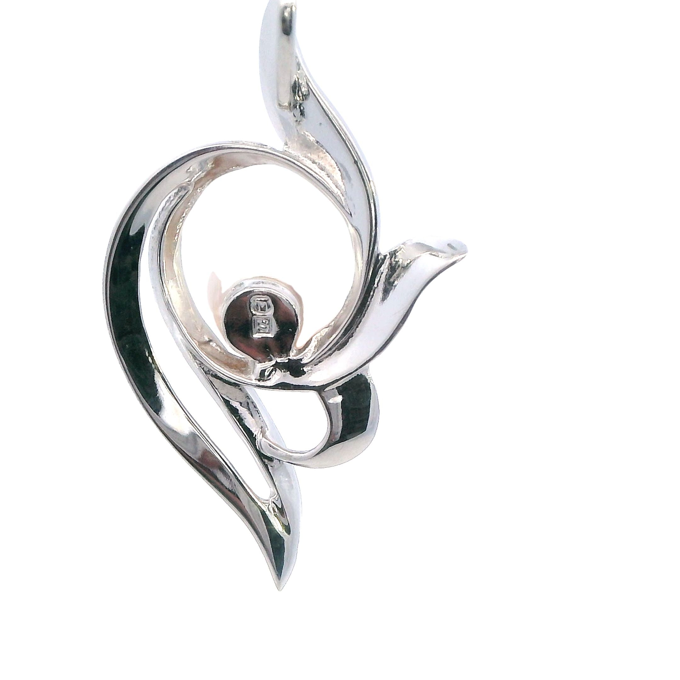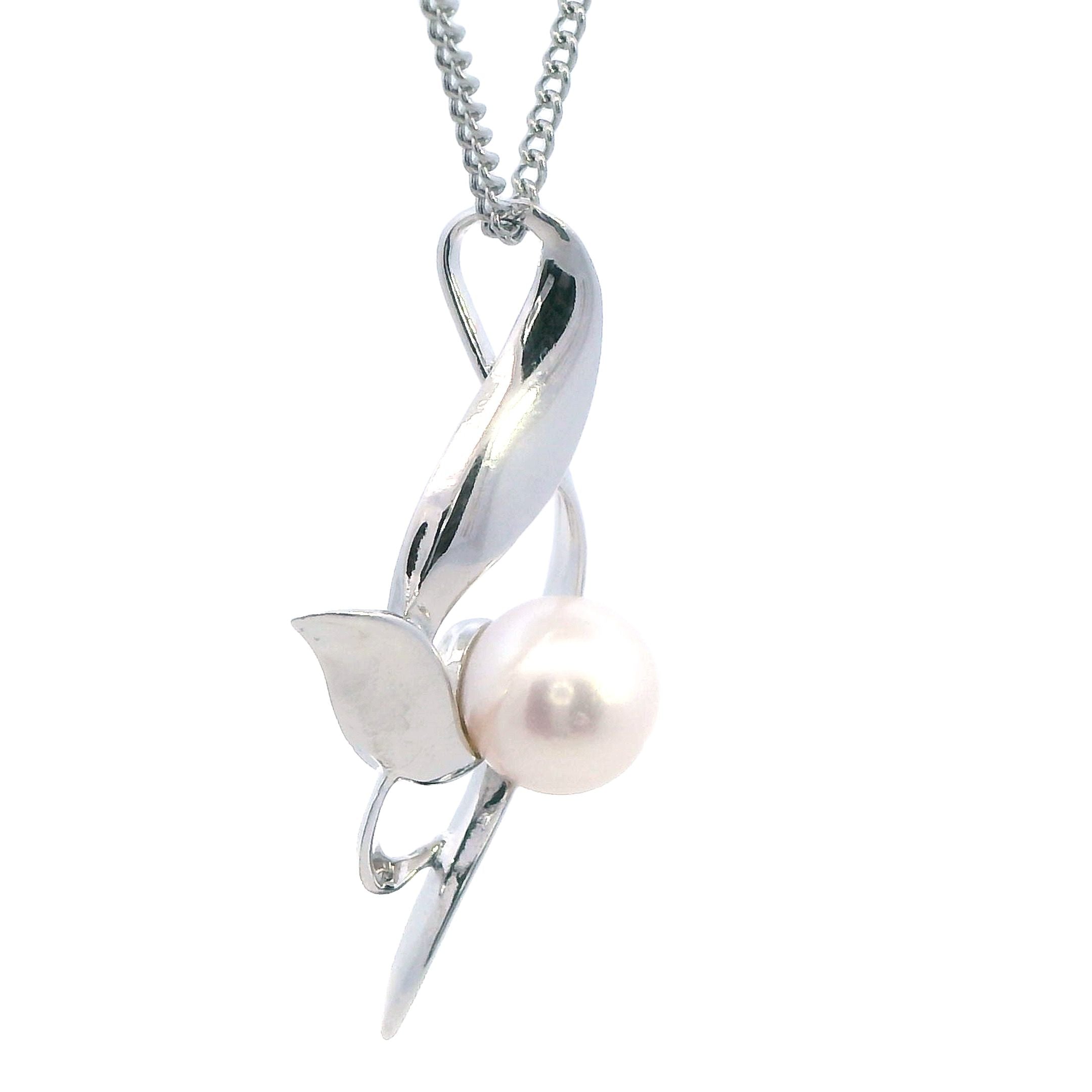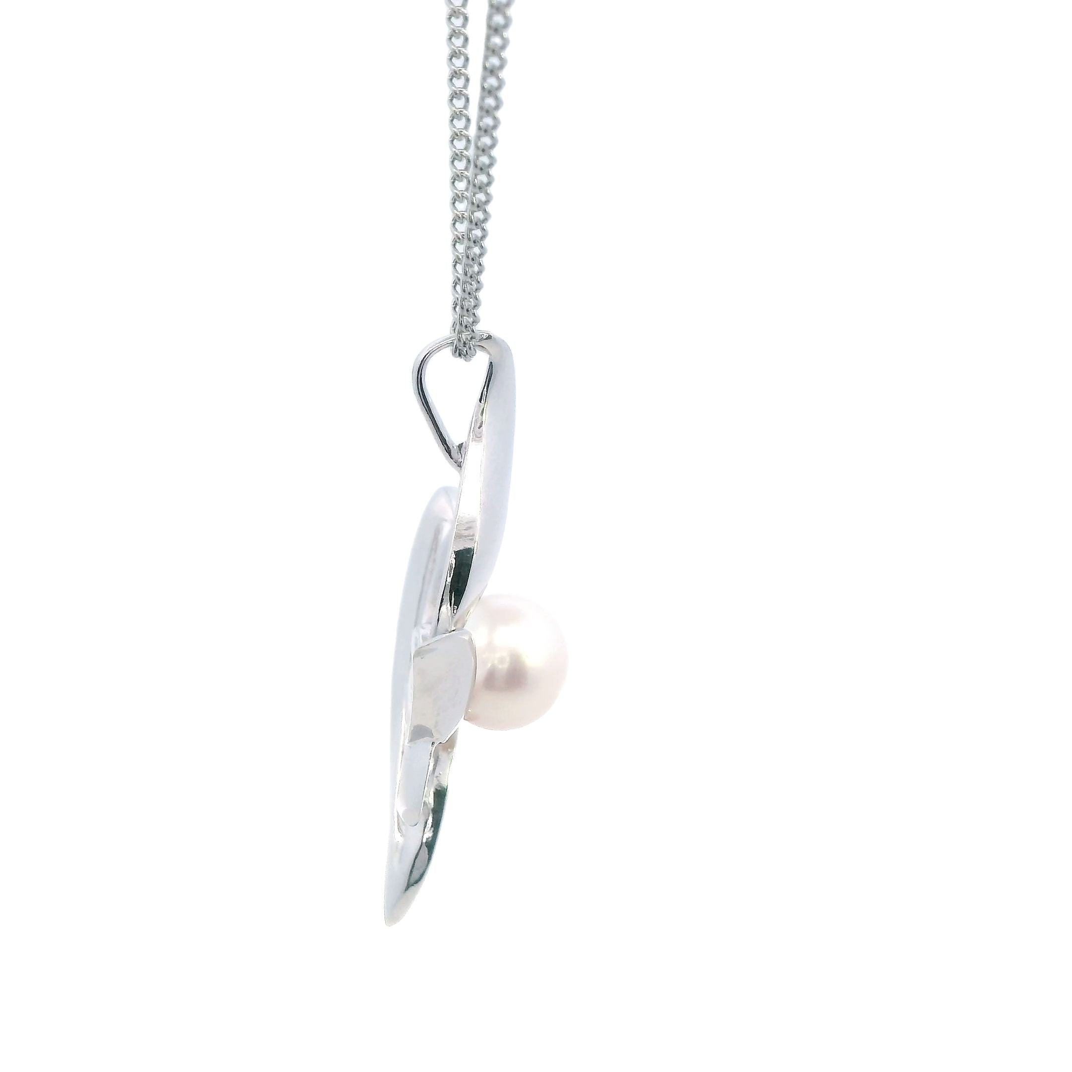 This elegant Mikimoto pendant features a beautiful 5mm cultured pearl set in silver, marked with the iconic "M" for Mikimoto and "S" for Silver. The pendant measures 28mm in length and 16mm in width, with the lustrous pearl adding a touch of sophistication to the simple yet elegant design. E17379