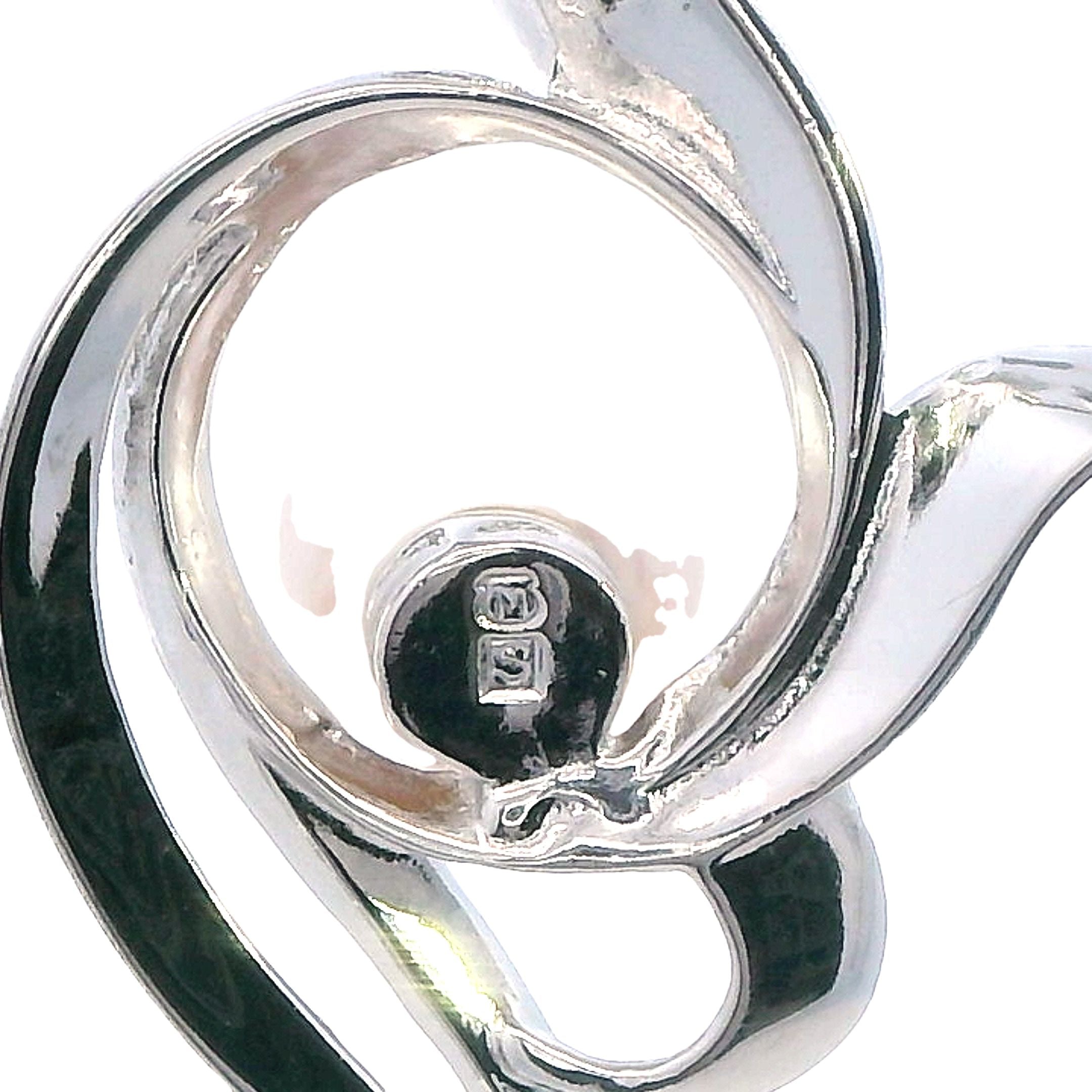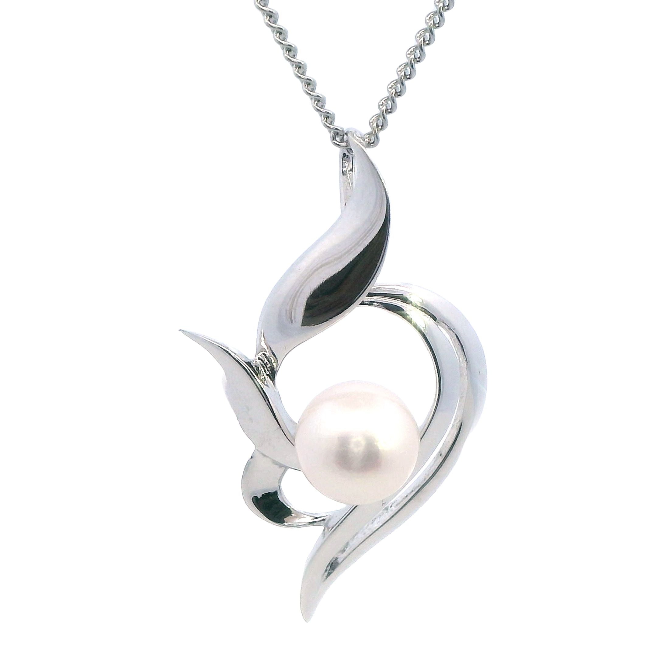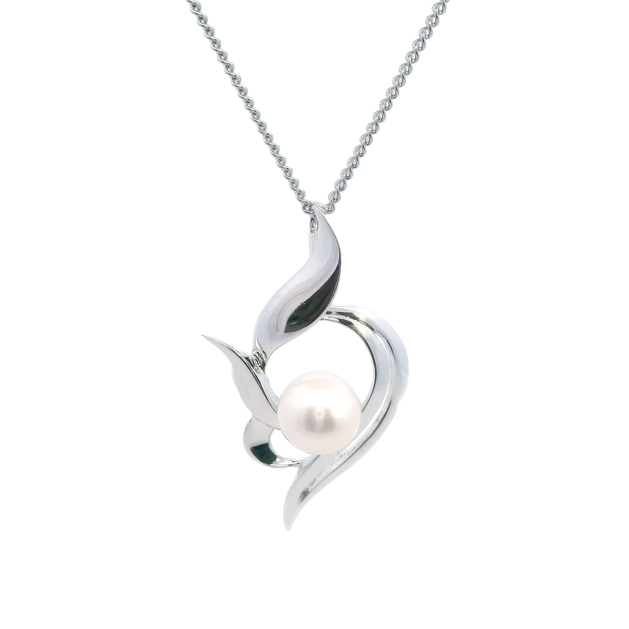 This elegant Mikimoto pendant features a beautiful 5mm cultured pearl set in silver, marked with the iconic "M" for Mikimoto and "S" for Silver. The pendant measures 28mm in length and 16mm in width, with the lustrous pearl adding a touch of sophistication to the simple yet elegant design. E17379