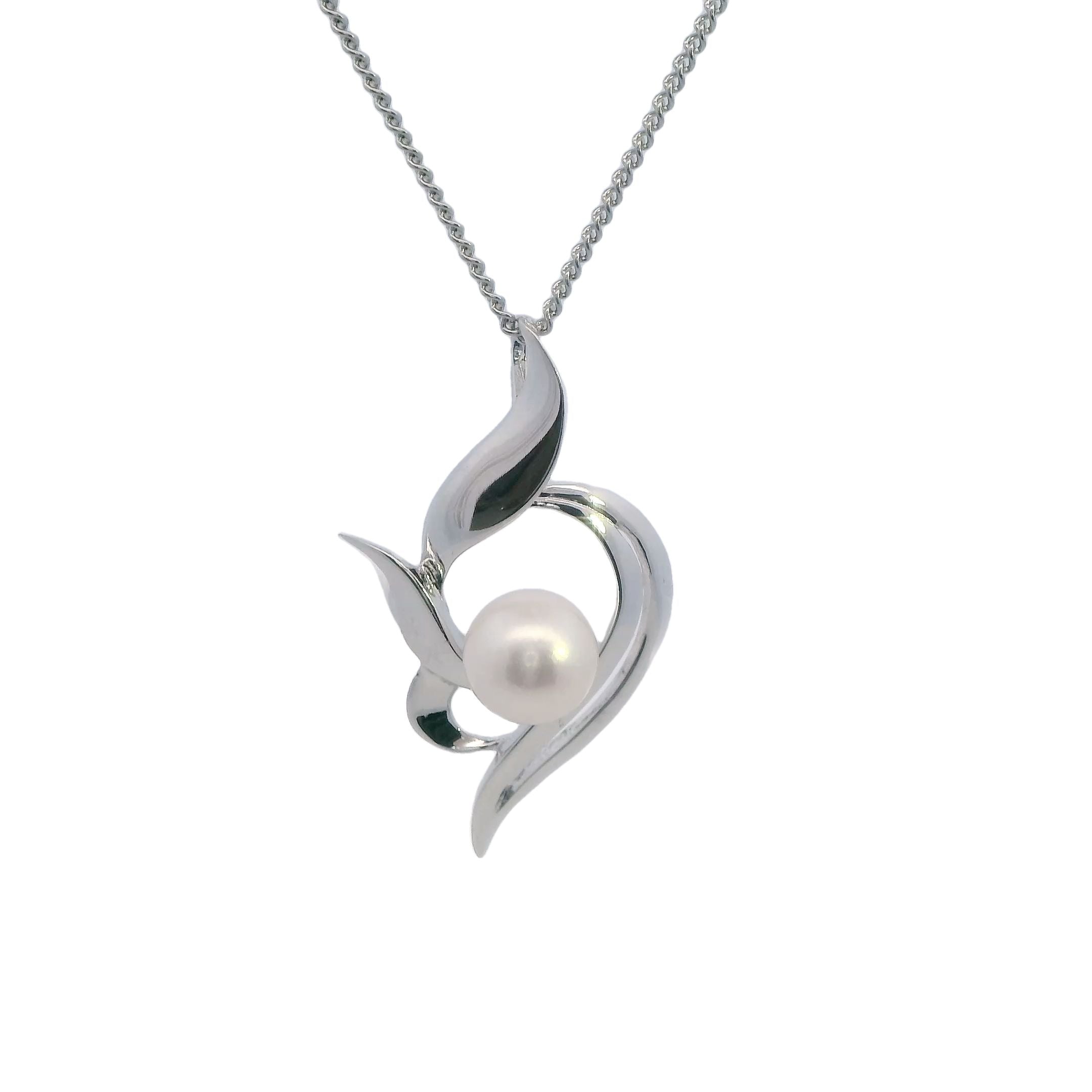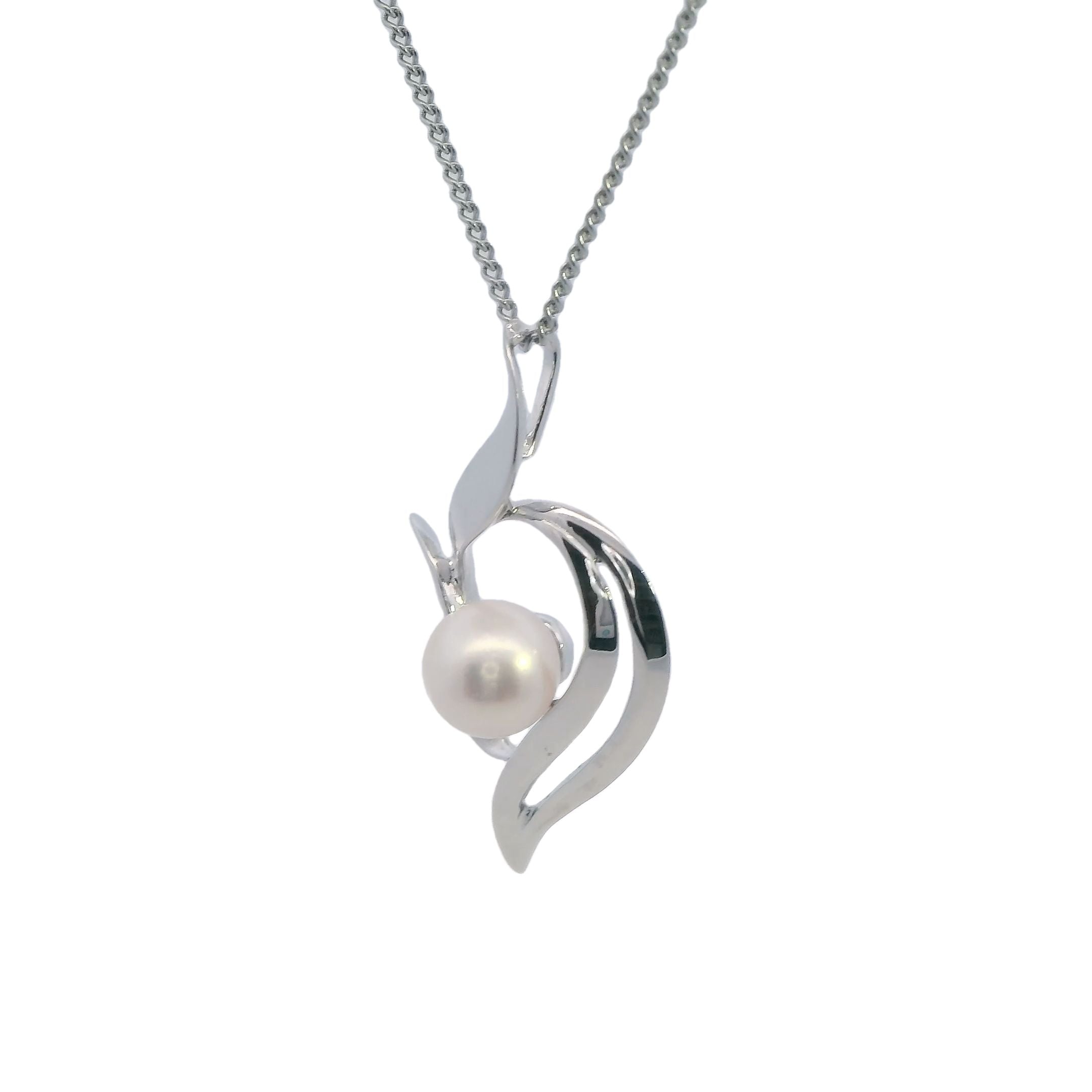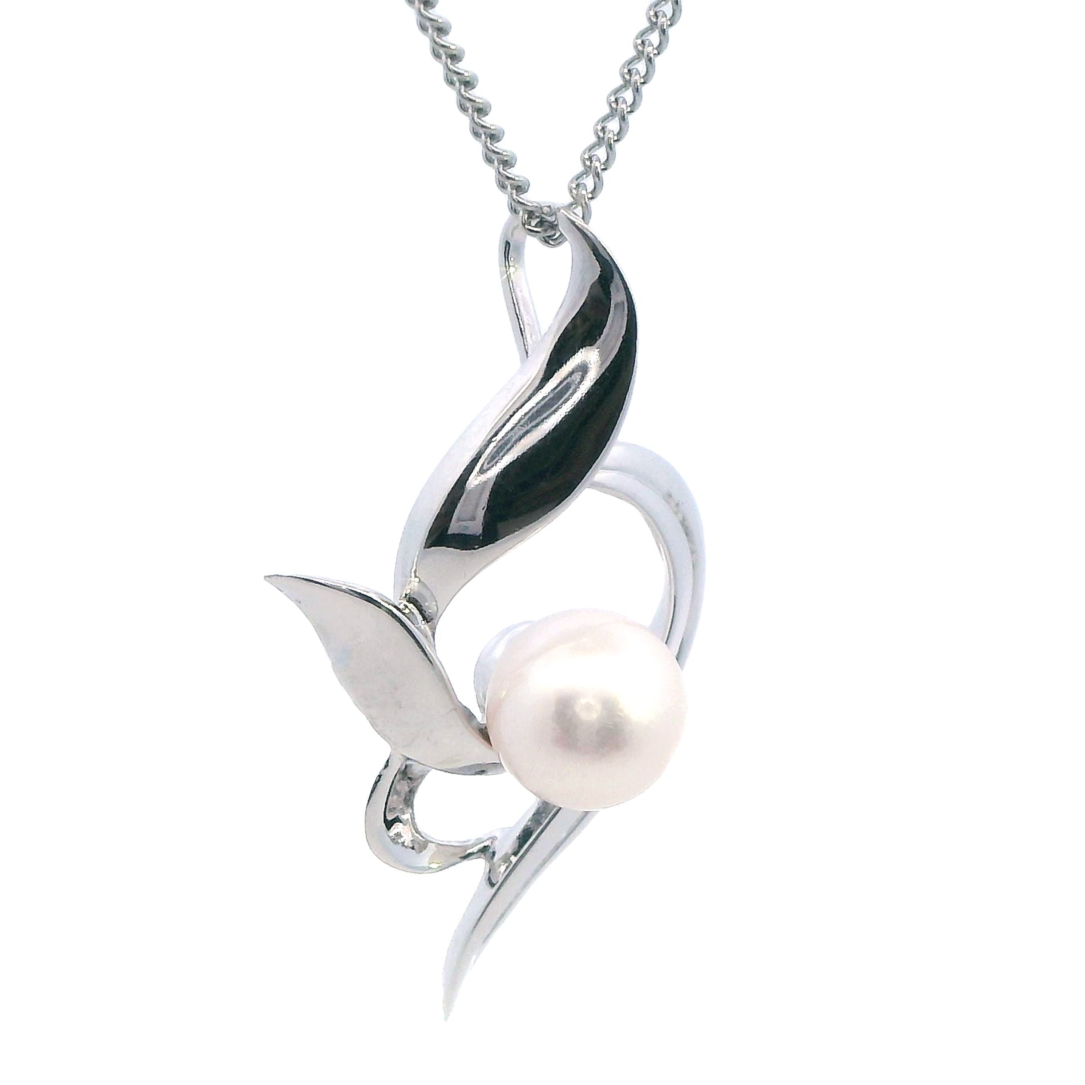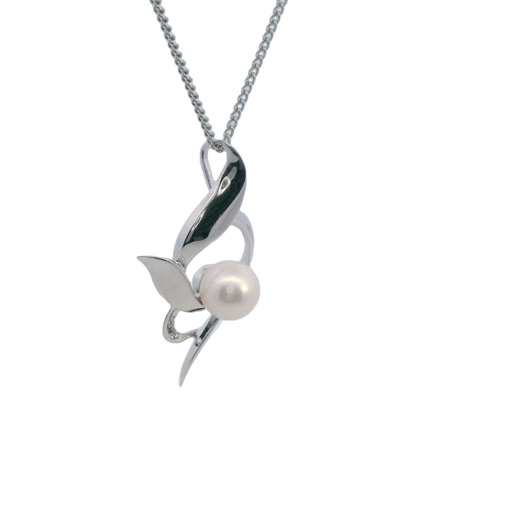 This elegant Mikimoto pendant features a beautiful 5mm cultured pearl set in silver, marked with the iconic "M" for Mikimoto and "S" for Silver. The pendant measures 28mm in length and 16mm in width, with the lustrous pearl adding a touch of sophistication to the simple yet elegant design. E17379