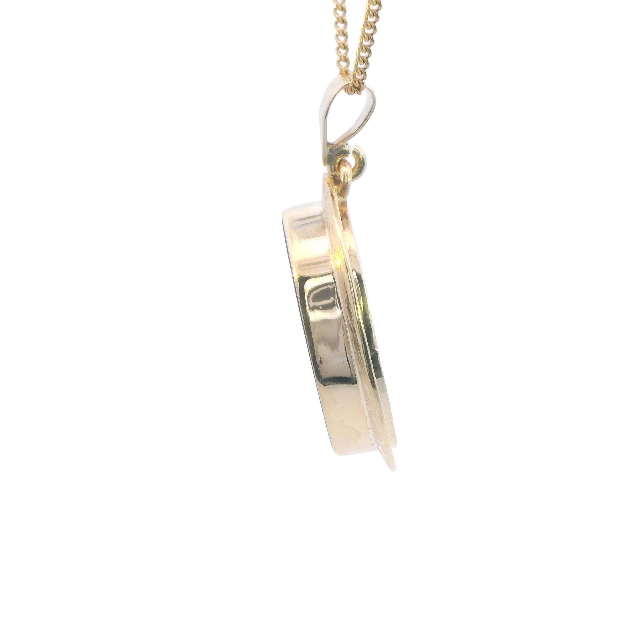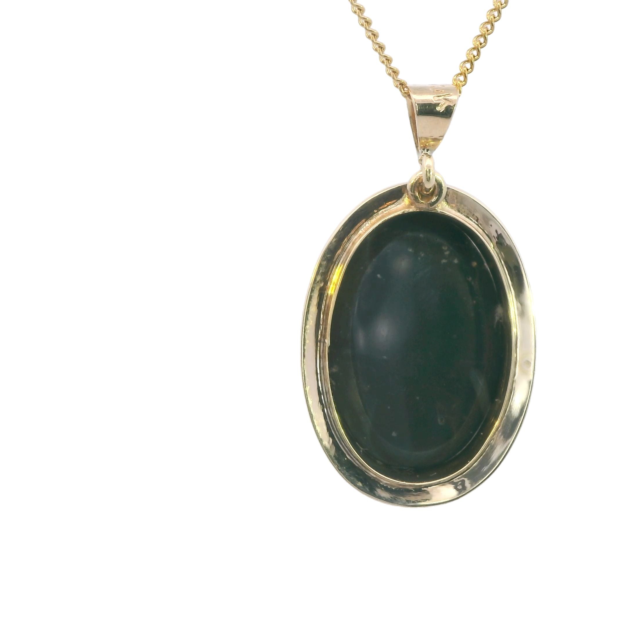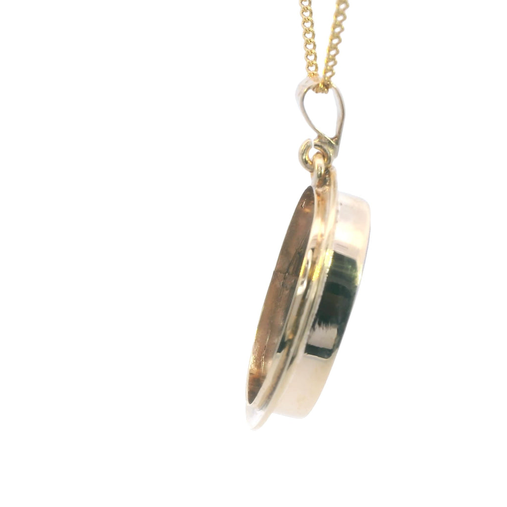 The opal is bezel set in a smooth and secure 10K yellow gold frame, which complements the opal’s colours beautifully. The pendant measures 23mm x 16mm, making it the perfect size for both everyday wear and special occasions. The rich hues of the opal paired with the warm tones of the yellow gold create a striking contrast that will catch the eye and elevate any outfit.