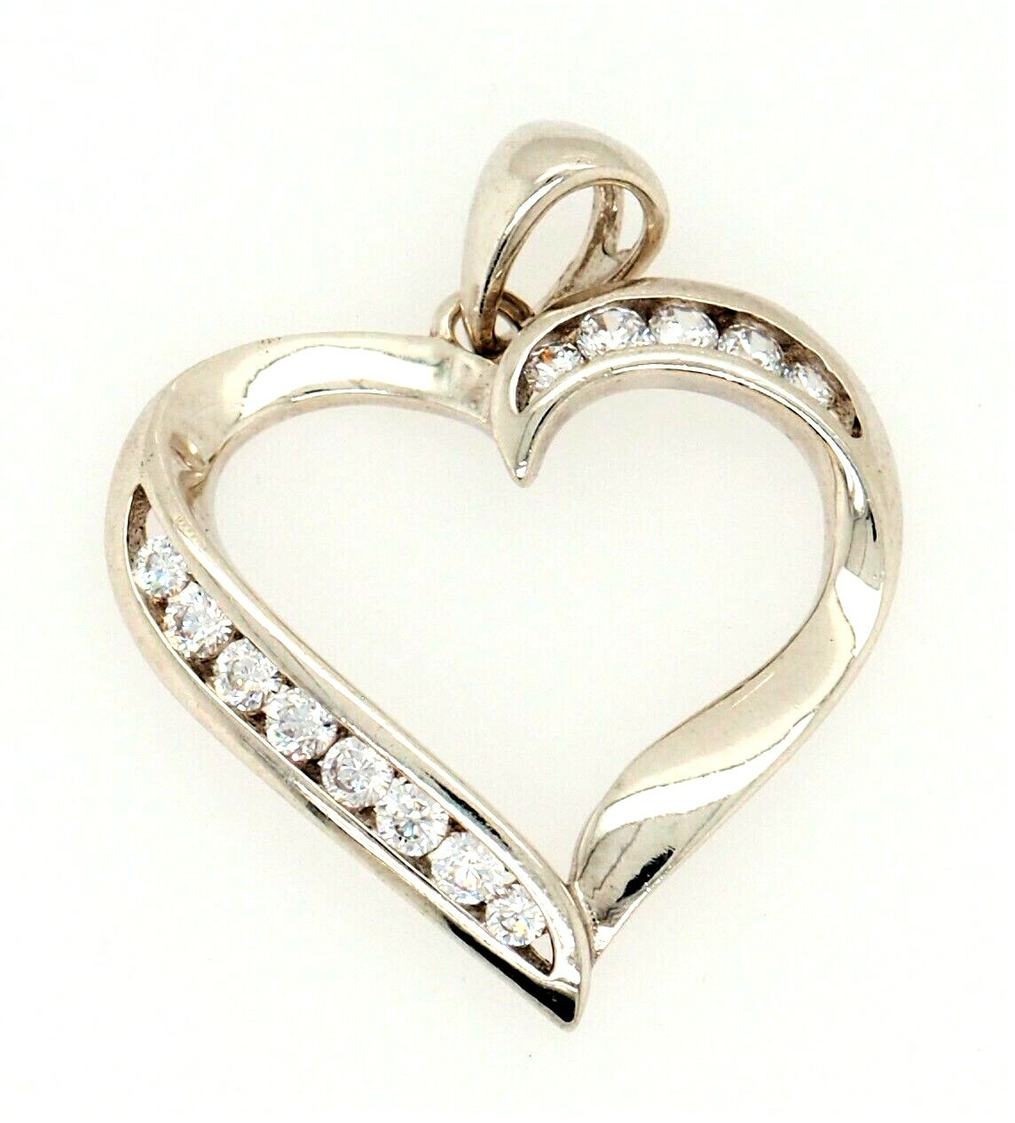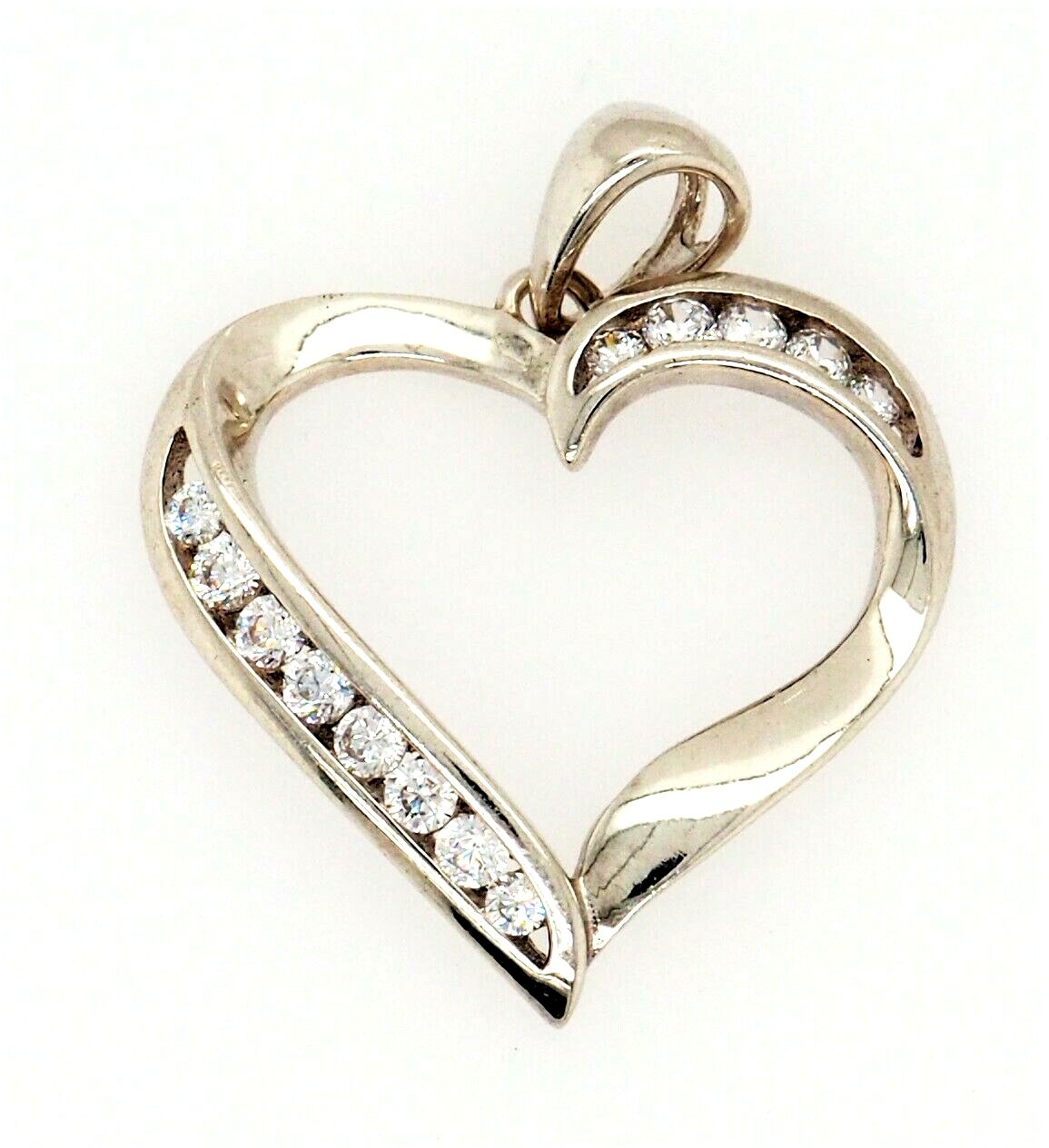 A delightful 925 sterling silver heart pendant featuring clear Cubic Zirconia's.