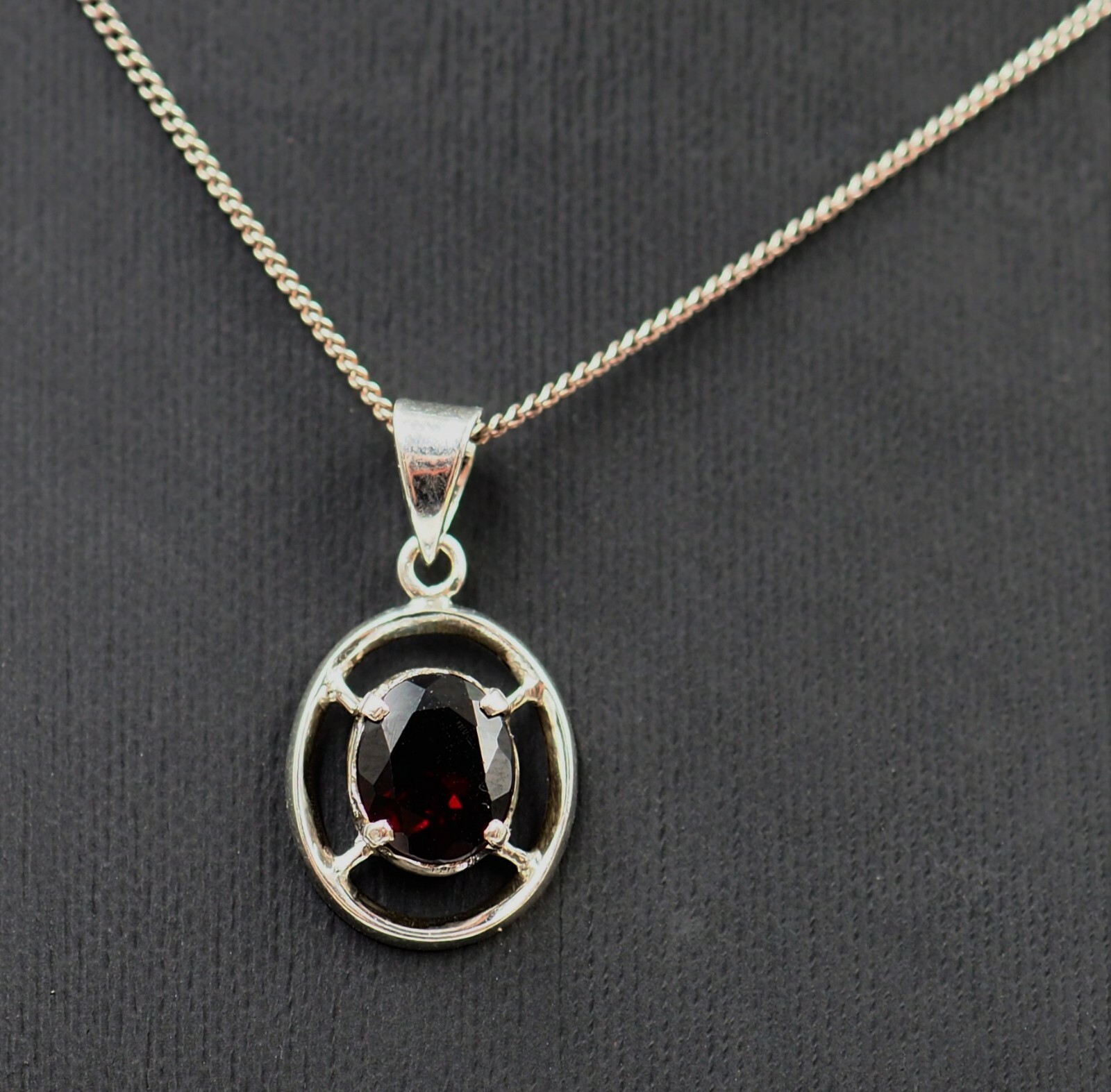 Garnet & 925 Sterling Silver Pendant Fine Gemstone Jewellery