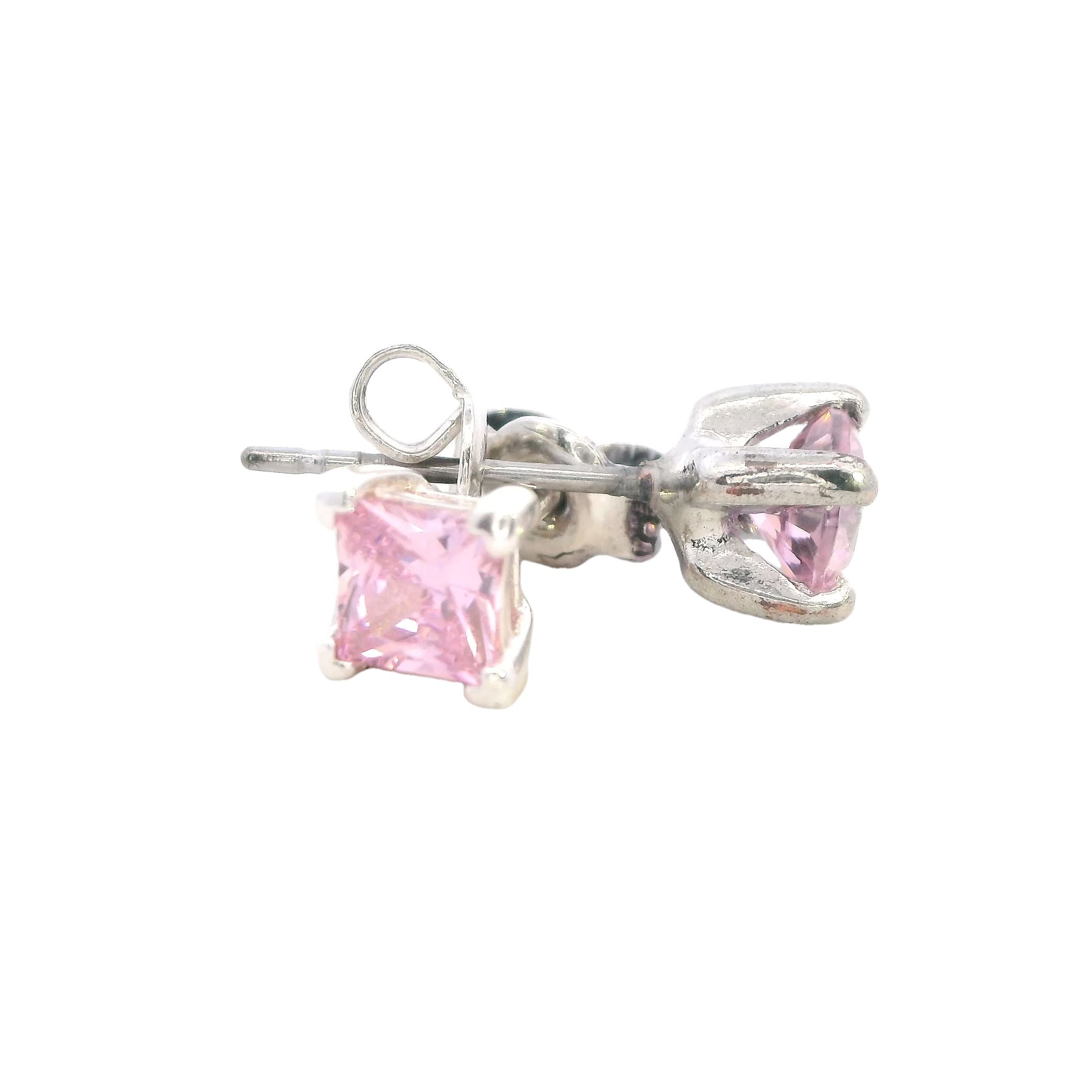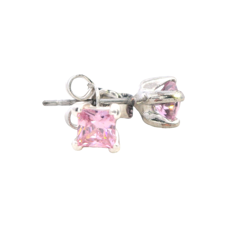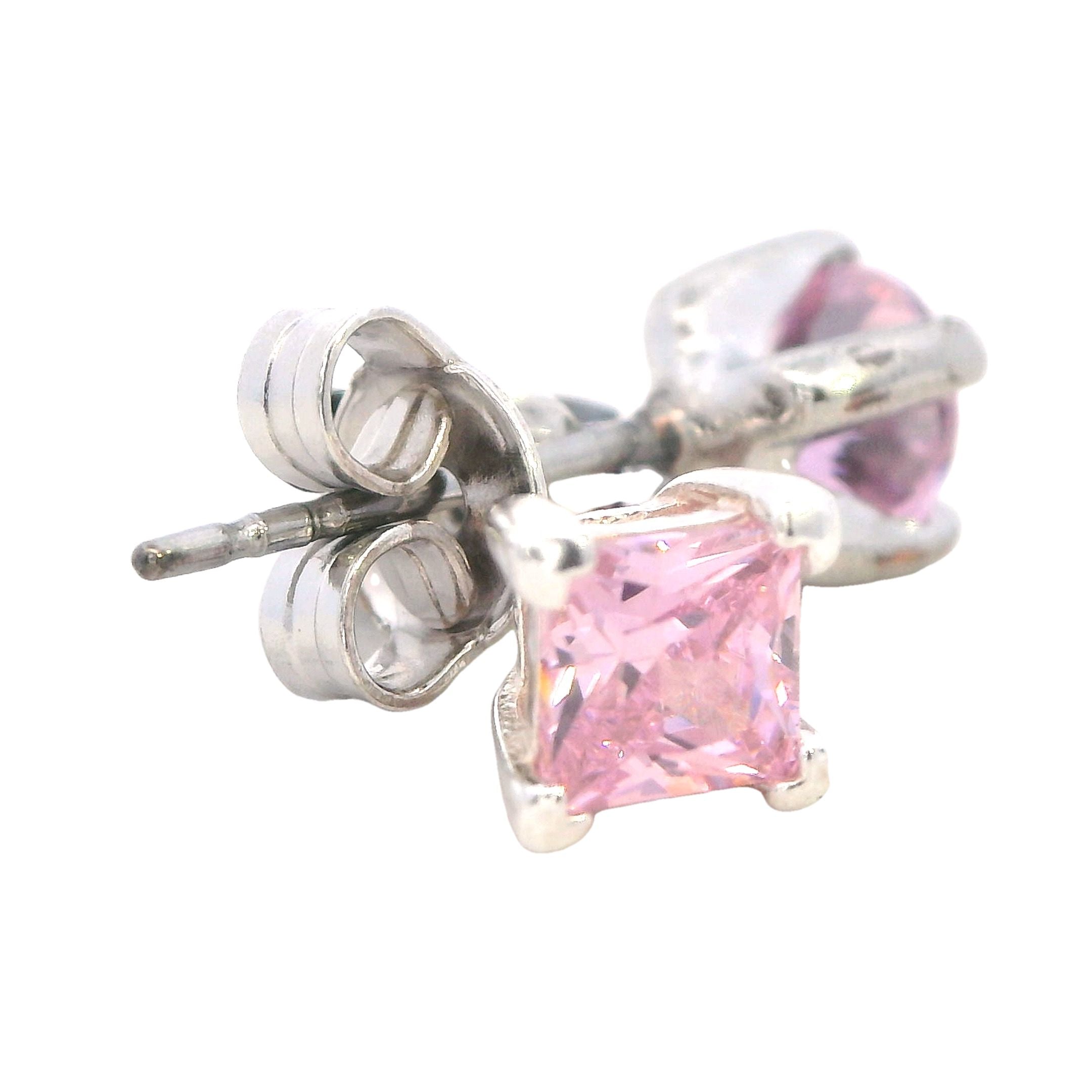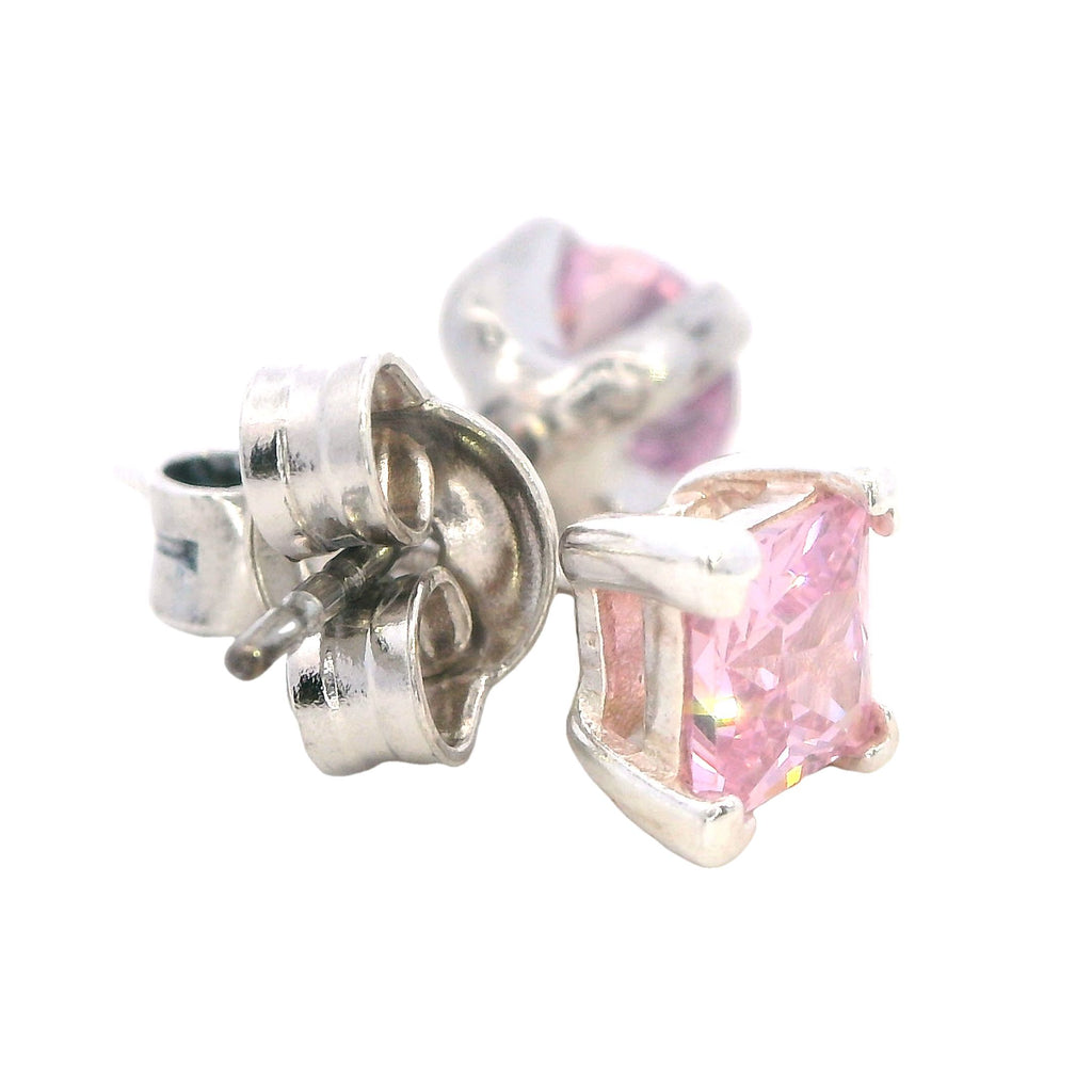 Silver Stud Earrings with 4mm Square Pink CZ Stone