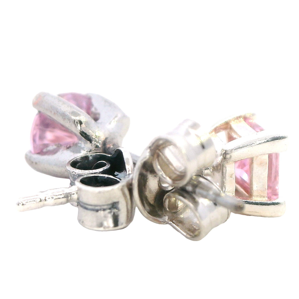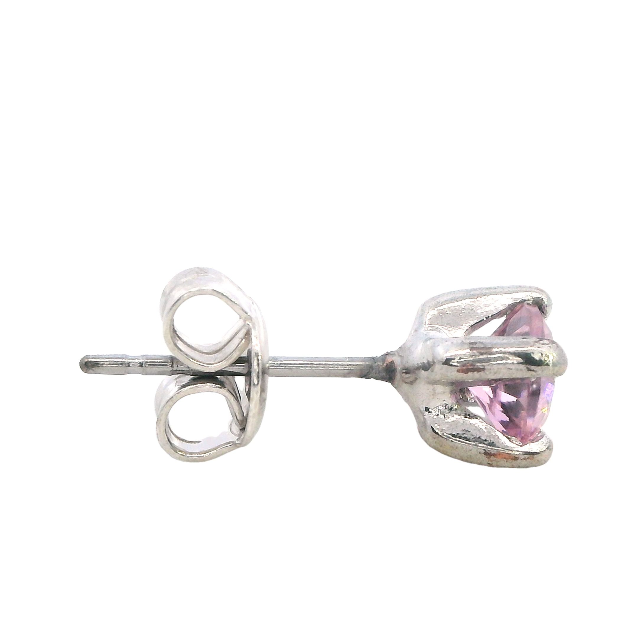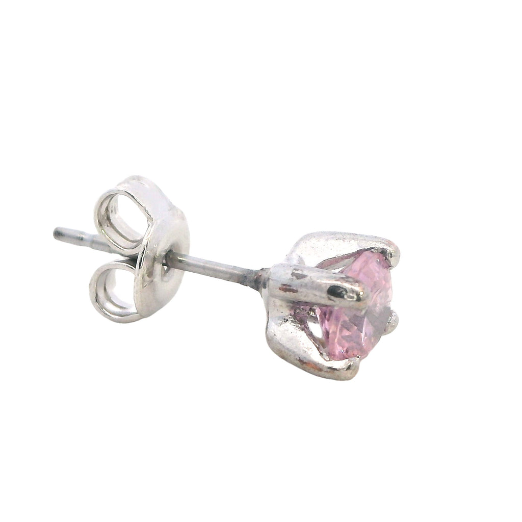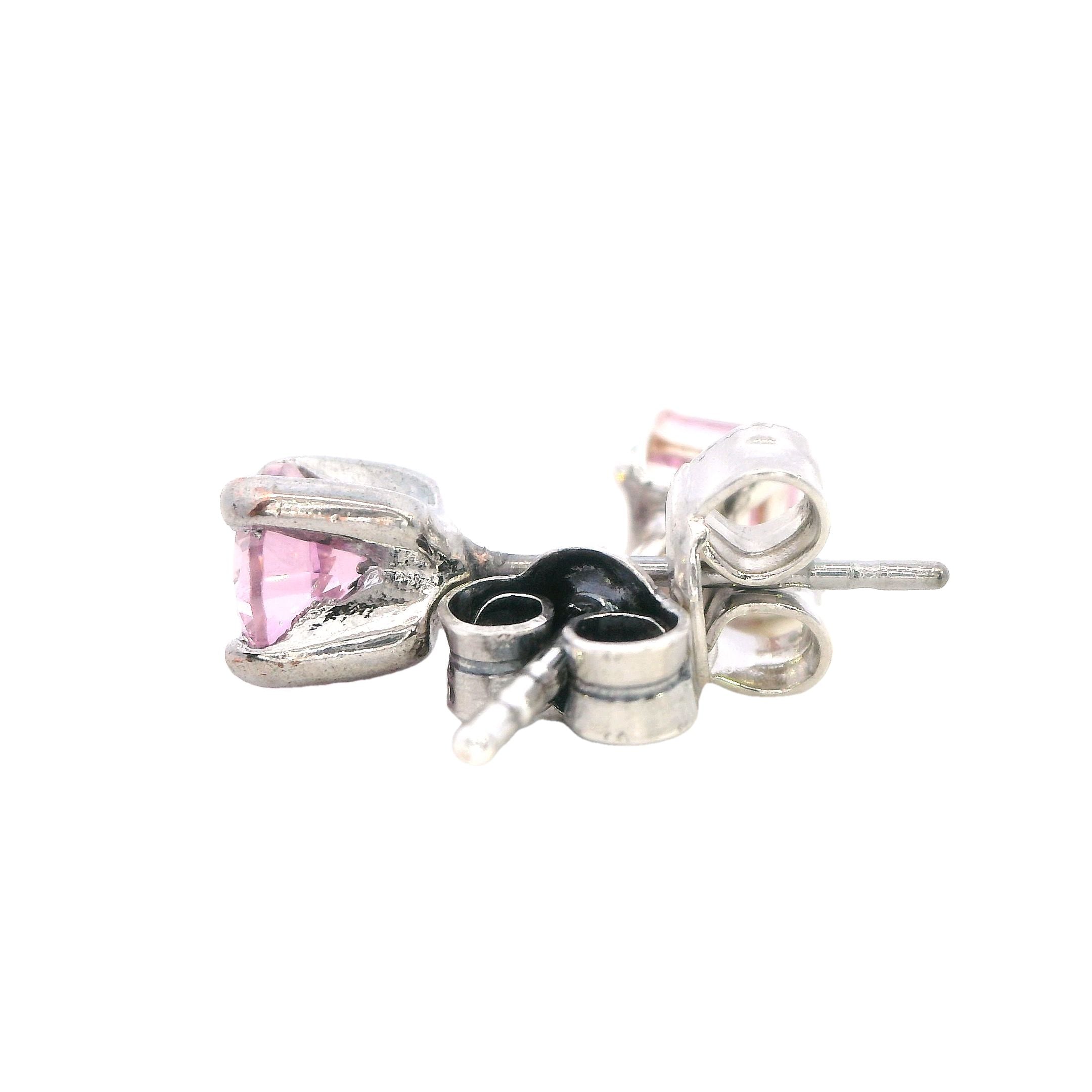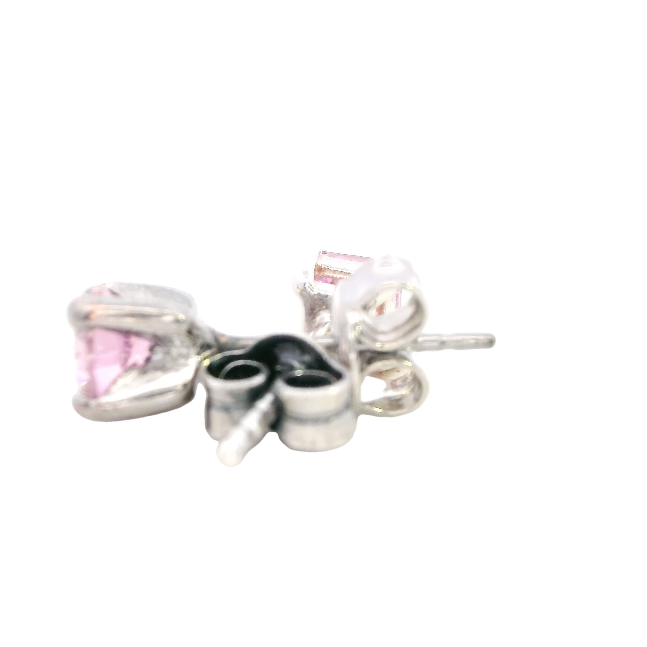 Silver Stud Earrings with 4mm Square Pink CZ Stone