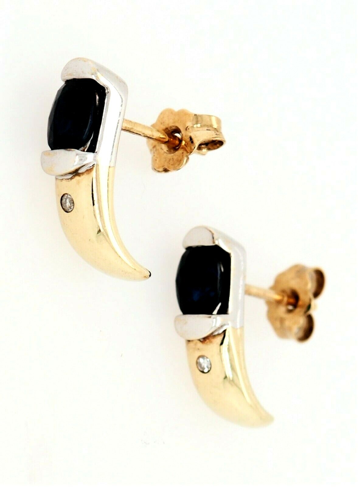 Sapphire & Diamond Stud Earrings 9ct Yellow Gold Fine Jewellery Pierced Ears