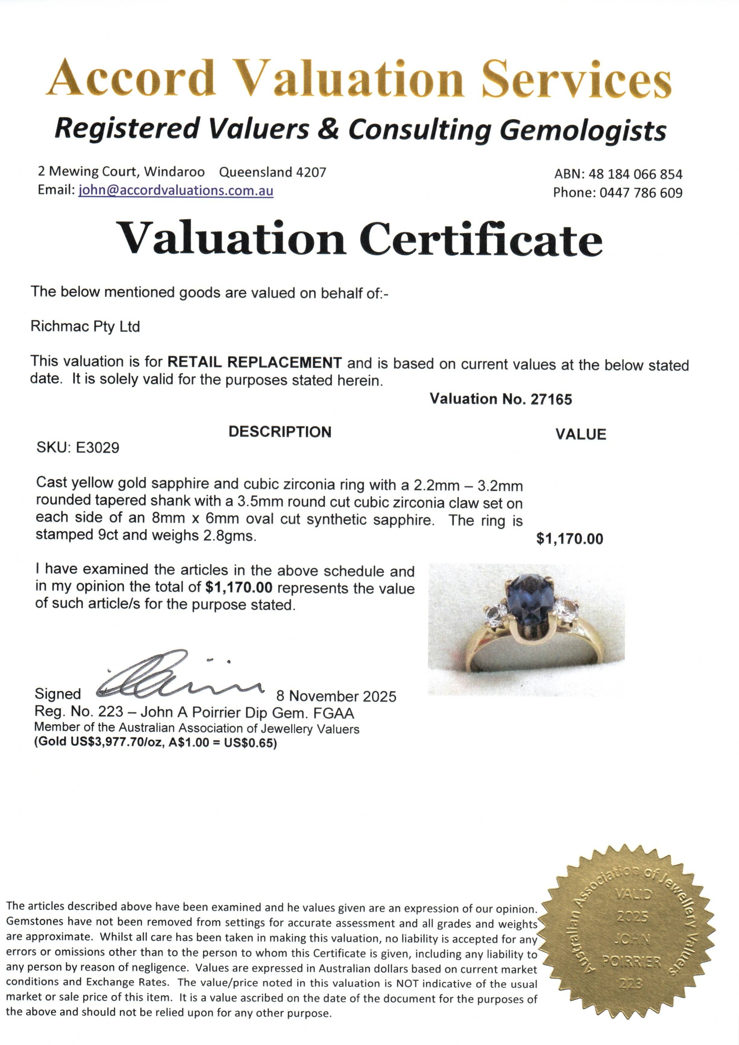 π Elegant 9ct Gold Created Sapphire & CZ Ring Size N β Valued $1170 β E3029 π