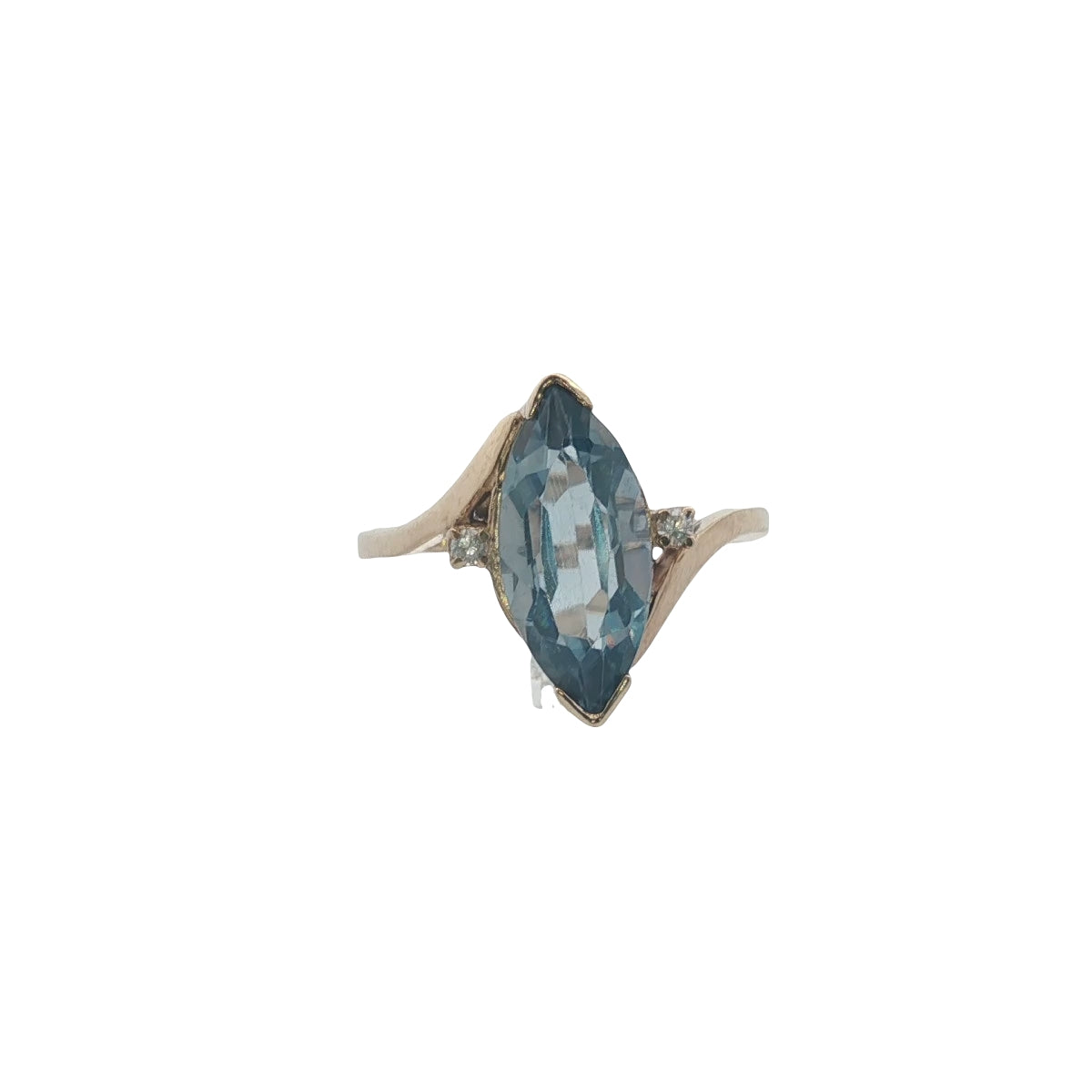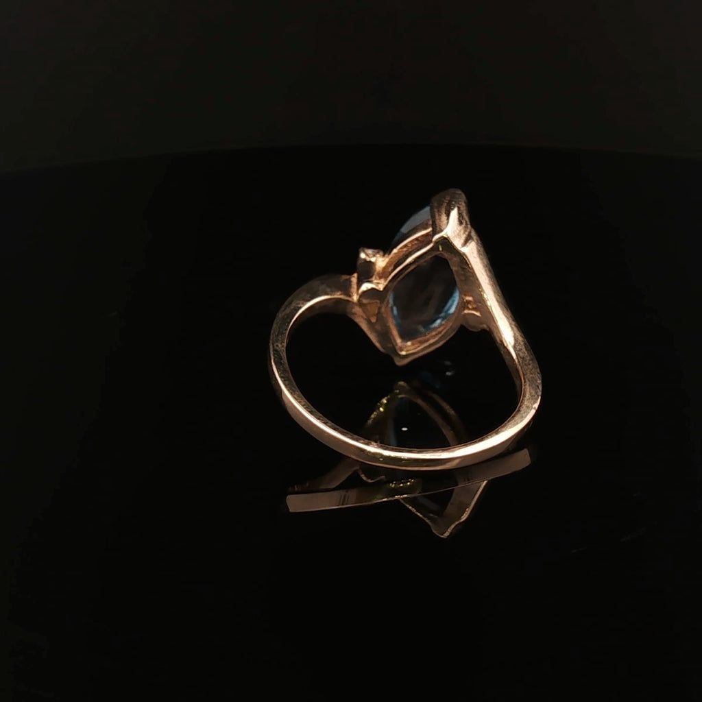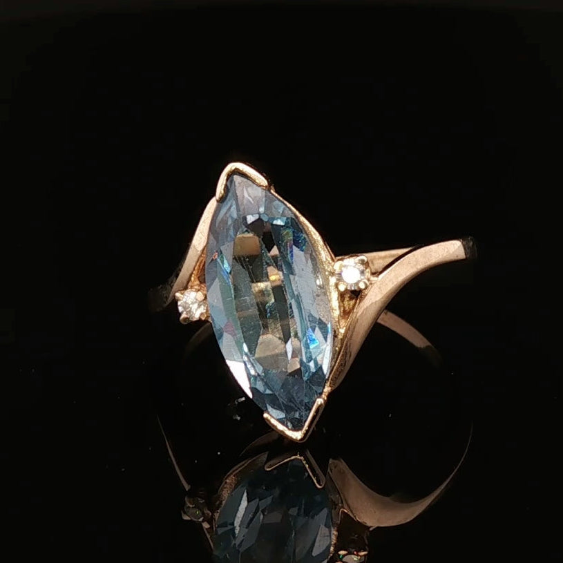 Elegant 9ct Gold Blue Topaz & CZ Ring Size P½ – Marquise Cut