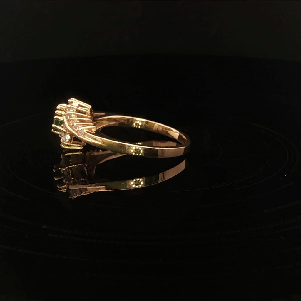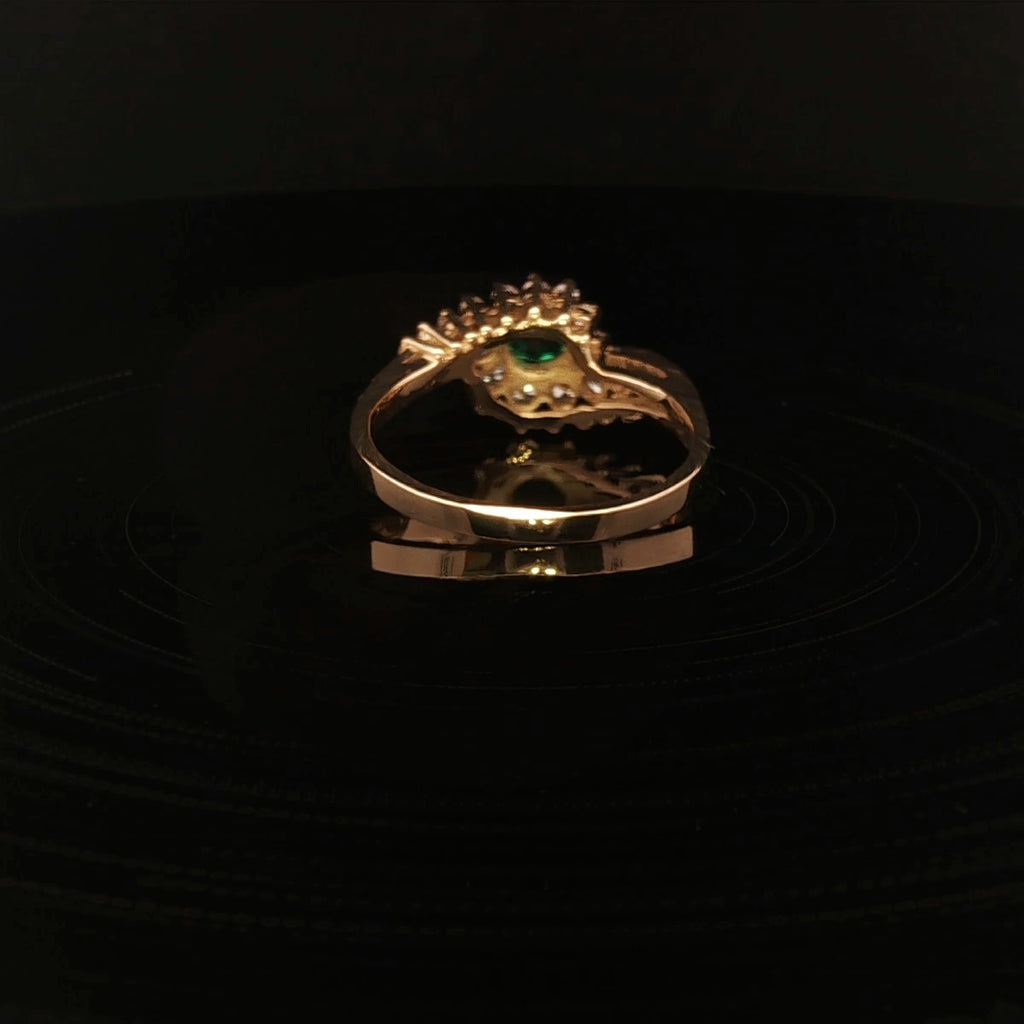 Stunning 18ct Gold Created Emerald & Diamond Ring Size M½