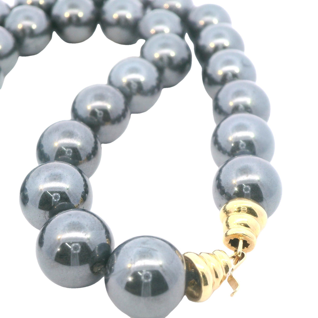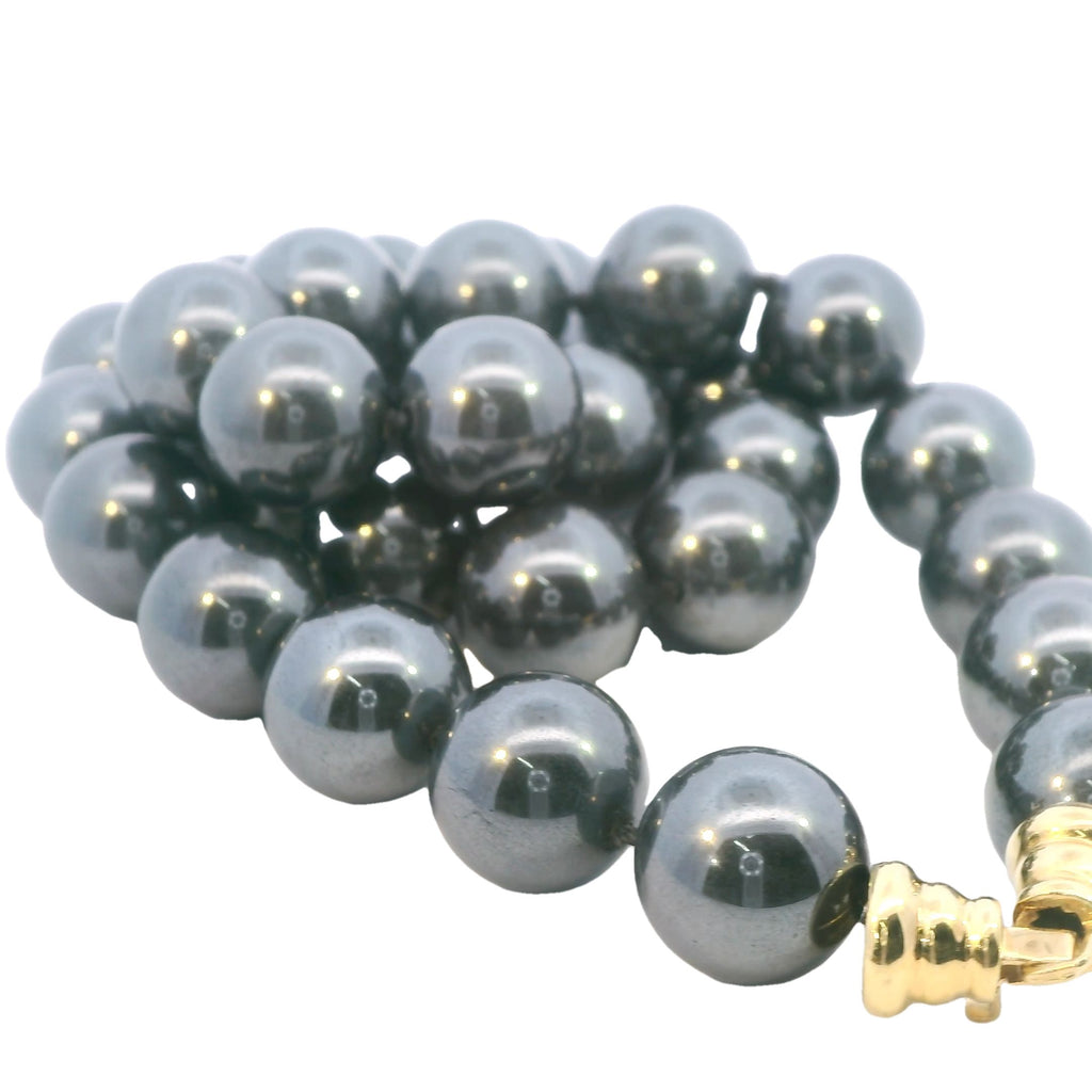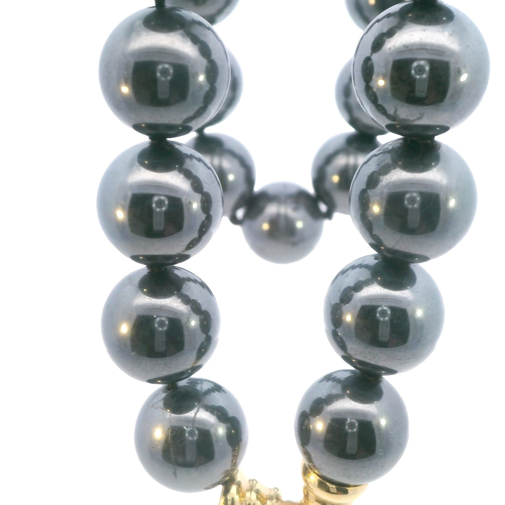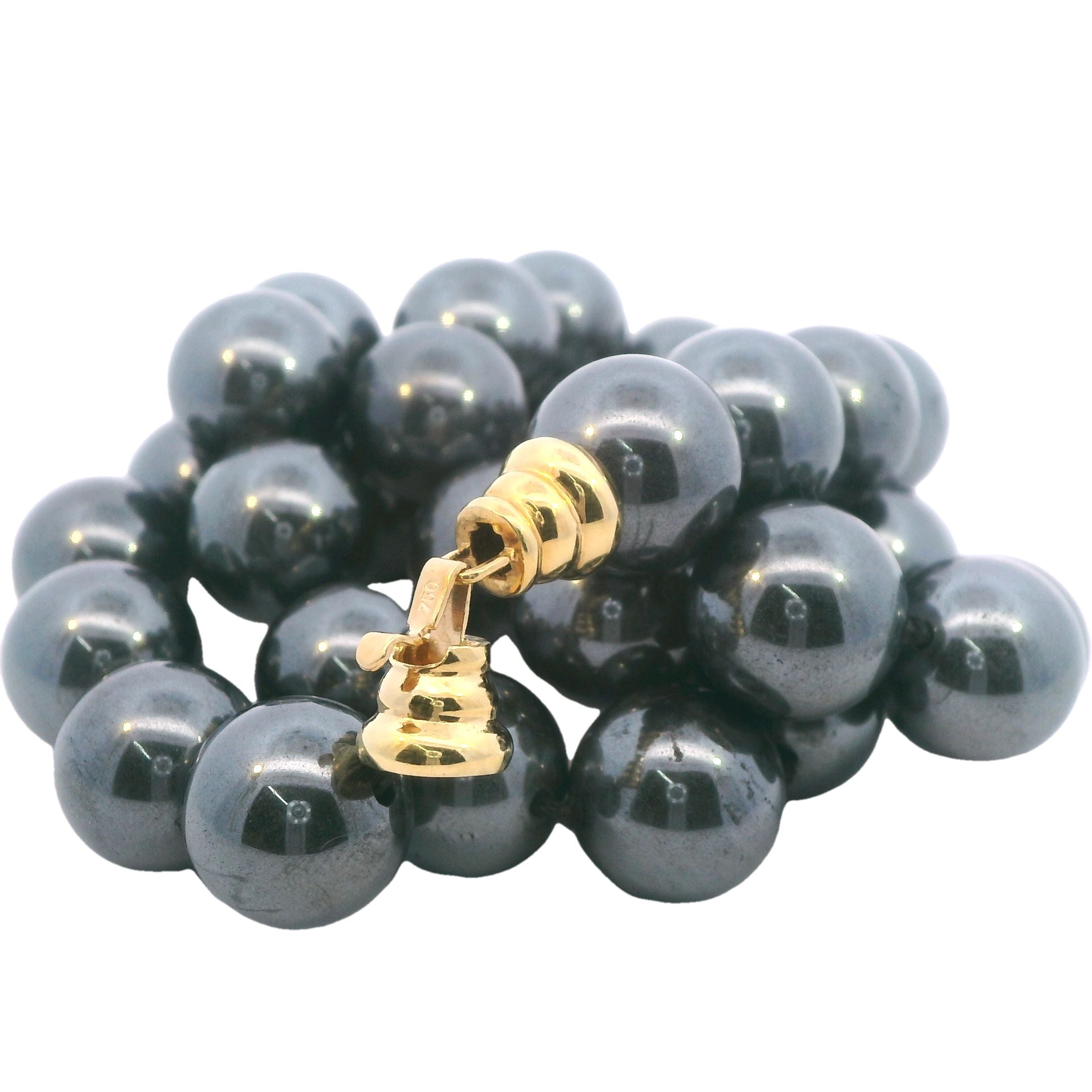 Elegant Hematite Bead Necklace with 18ct Yellow Gold Clasp – Timeless