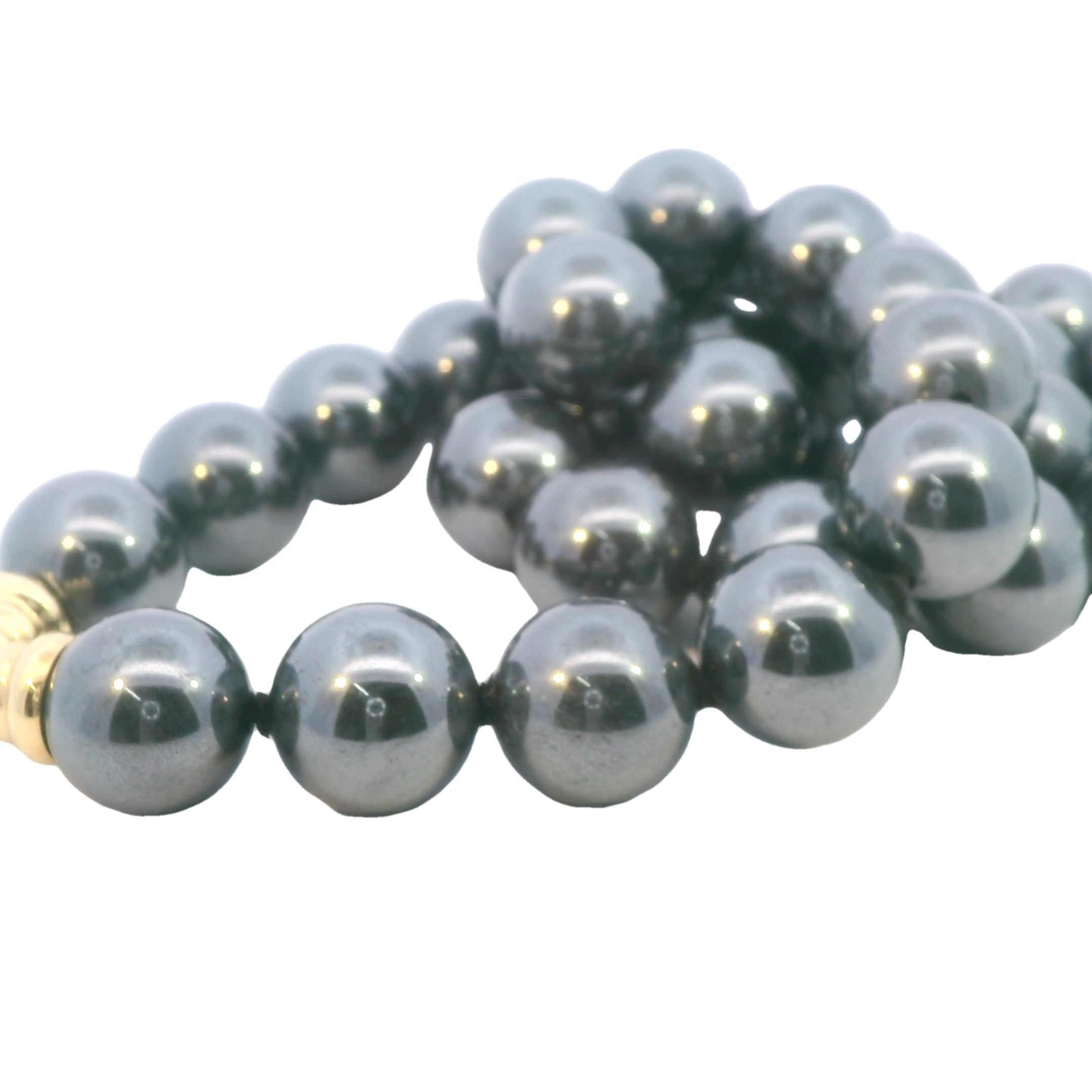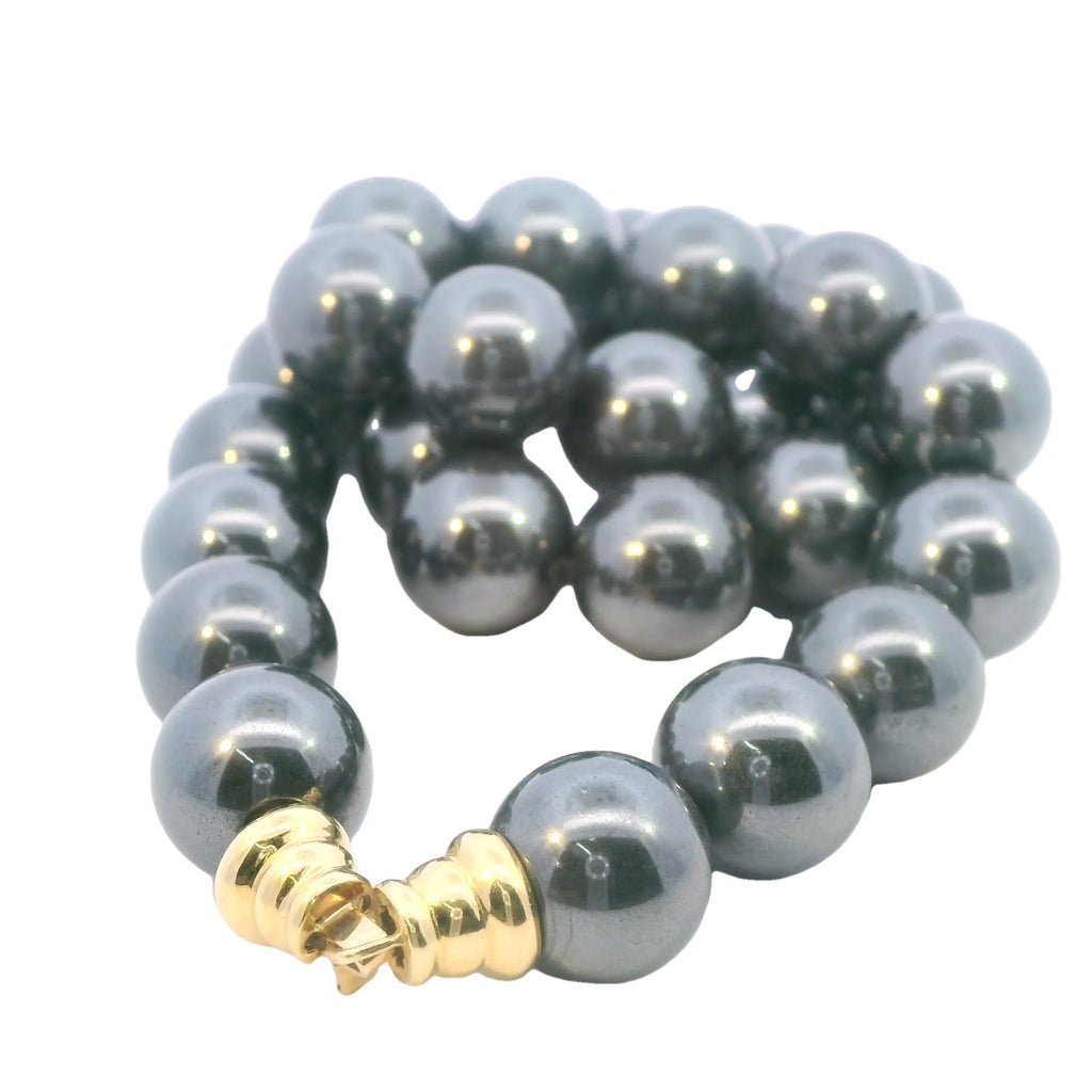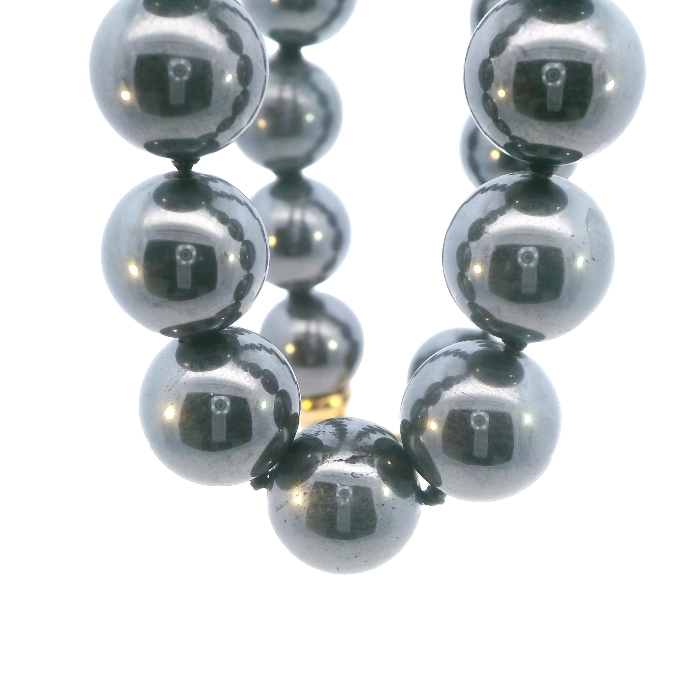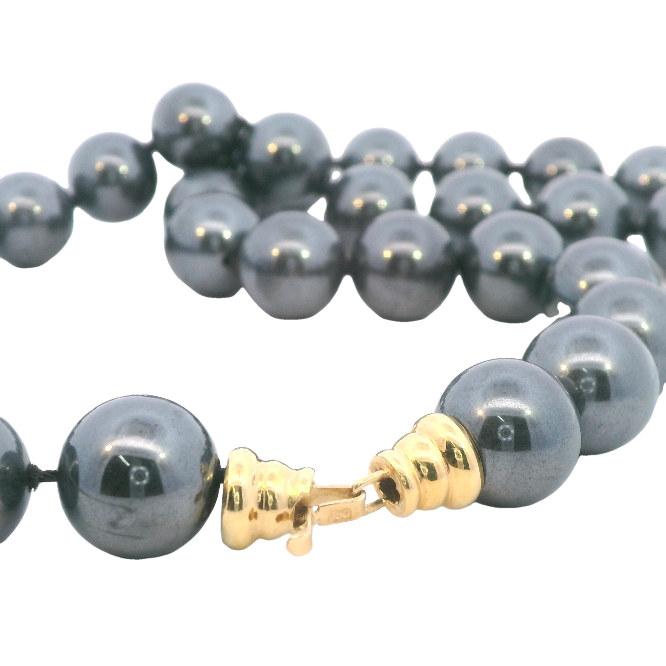 Elegant Hematite Bead Necklace with 18ct Yellow Gold Clasp – Timeless