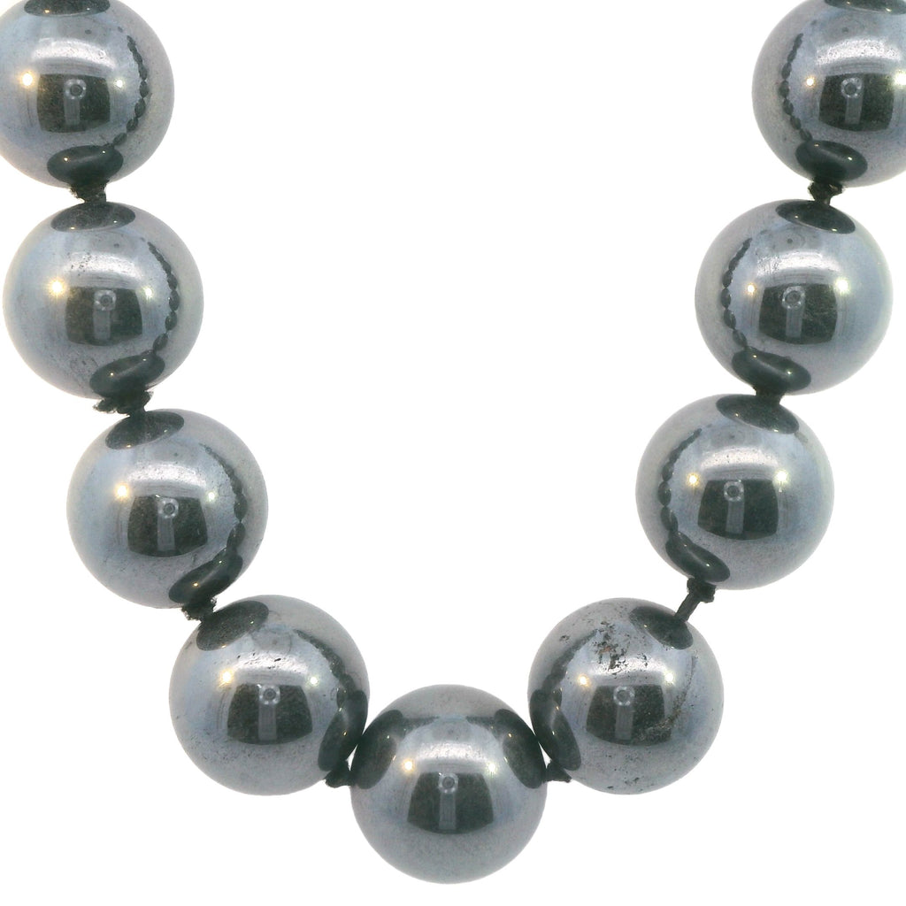 This stunning hematite bead necklace is a striking example of understated elegance. Crafted with precision, this necklace features smooth, polished hematite beads, each with a 15mm diameter, offering a luxurious shine that reflects light beautifully. Hematite is a unique mineral known for its metallic luster and deep, rich gray-black color, adding an air of mystery and sophistication to any ensemble. Historically, hematite has been believed to have grounding and protective properties, making it a gemstone both fashionable and meaningful.