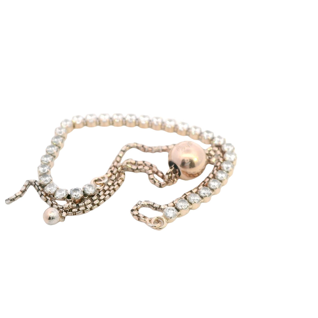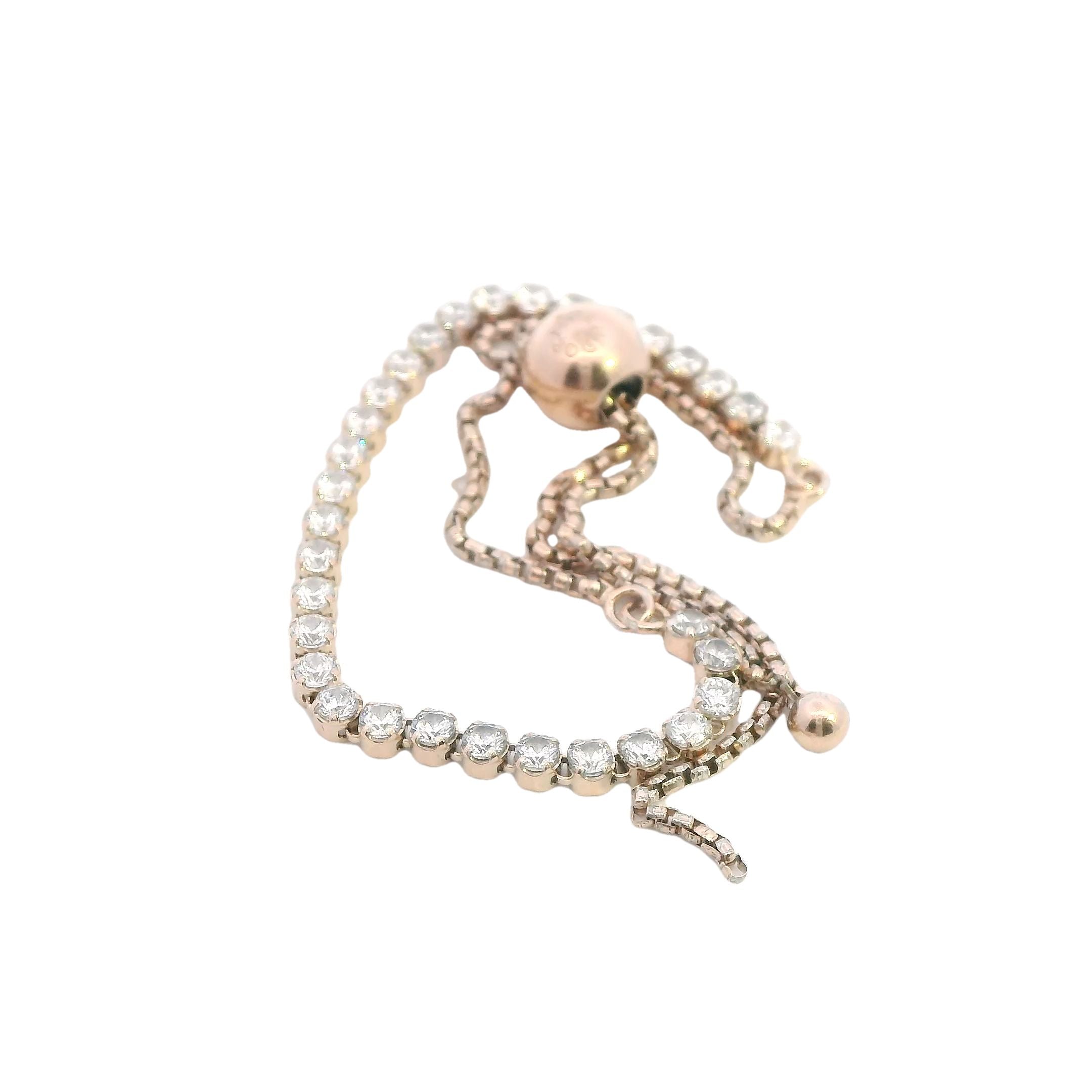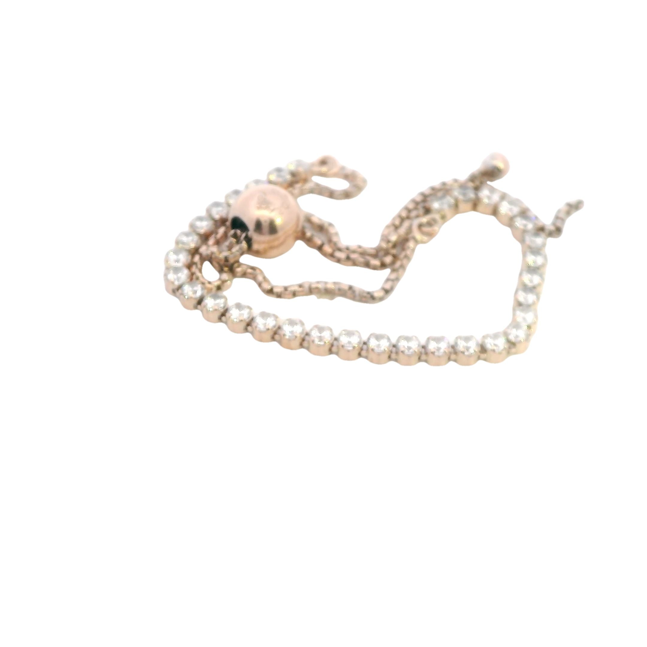 The slider design allows for easy adjustability, ensuring a perfect fit. Measuring 33cm in length and weighing just 2.41gms, this lightweight bracelet offers both comfort and style, making it an ideal accessory for any occasion. Whether worn alone or stacked with other pieces, this bracelet adds a touch of sophistication and sparkle to your look.