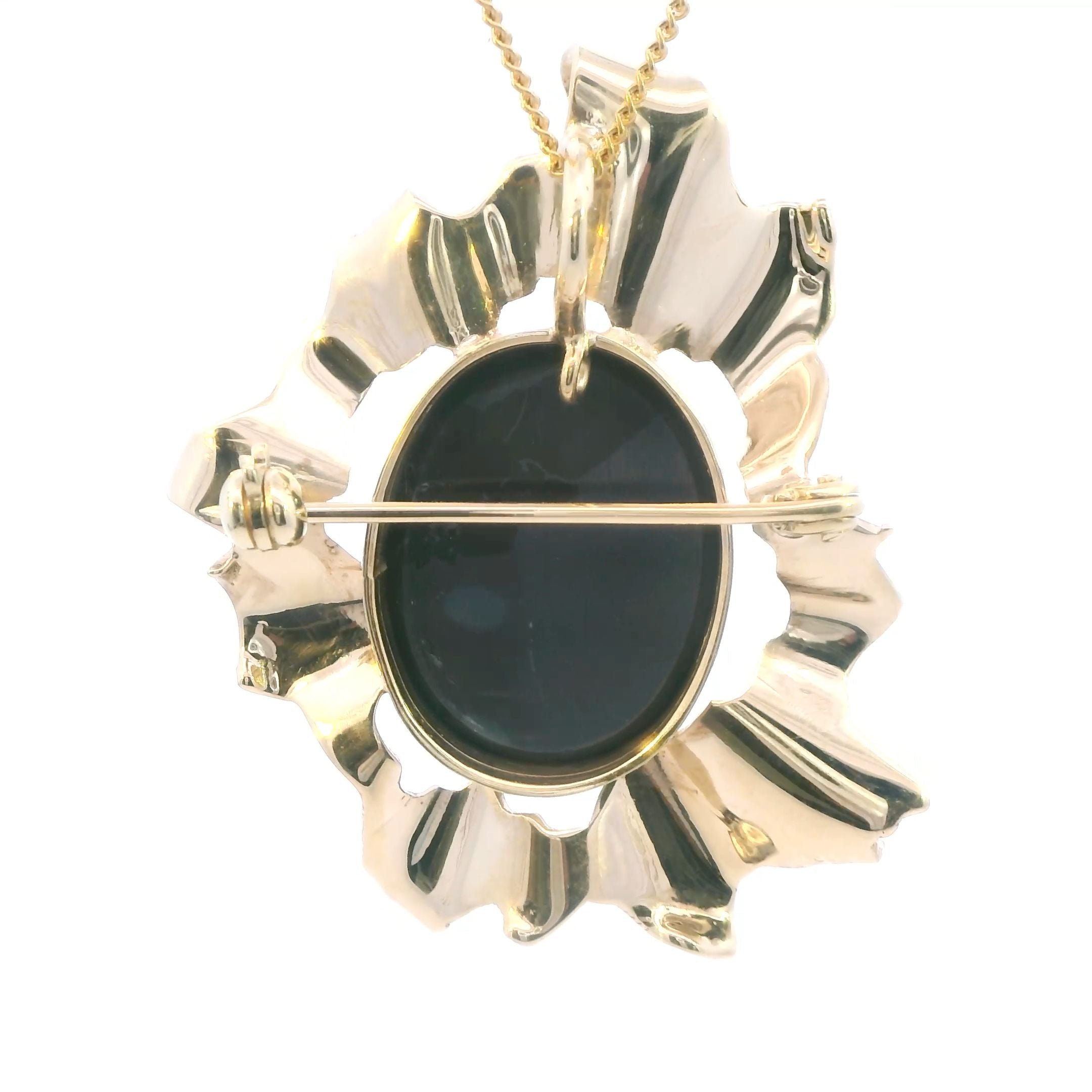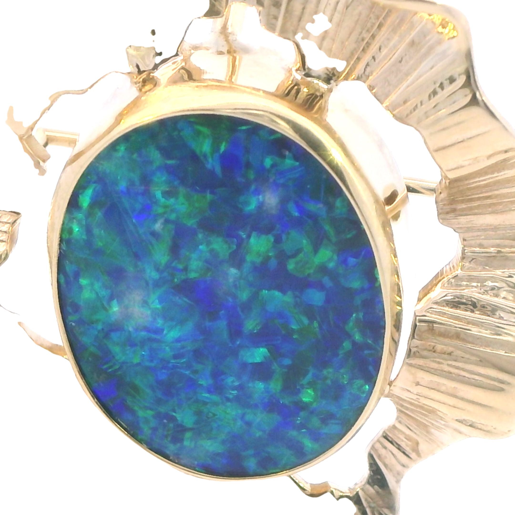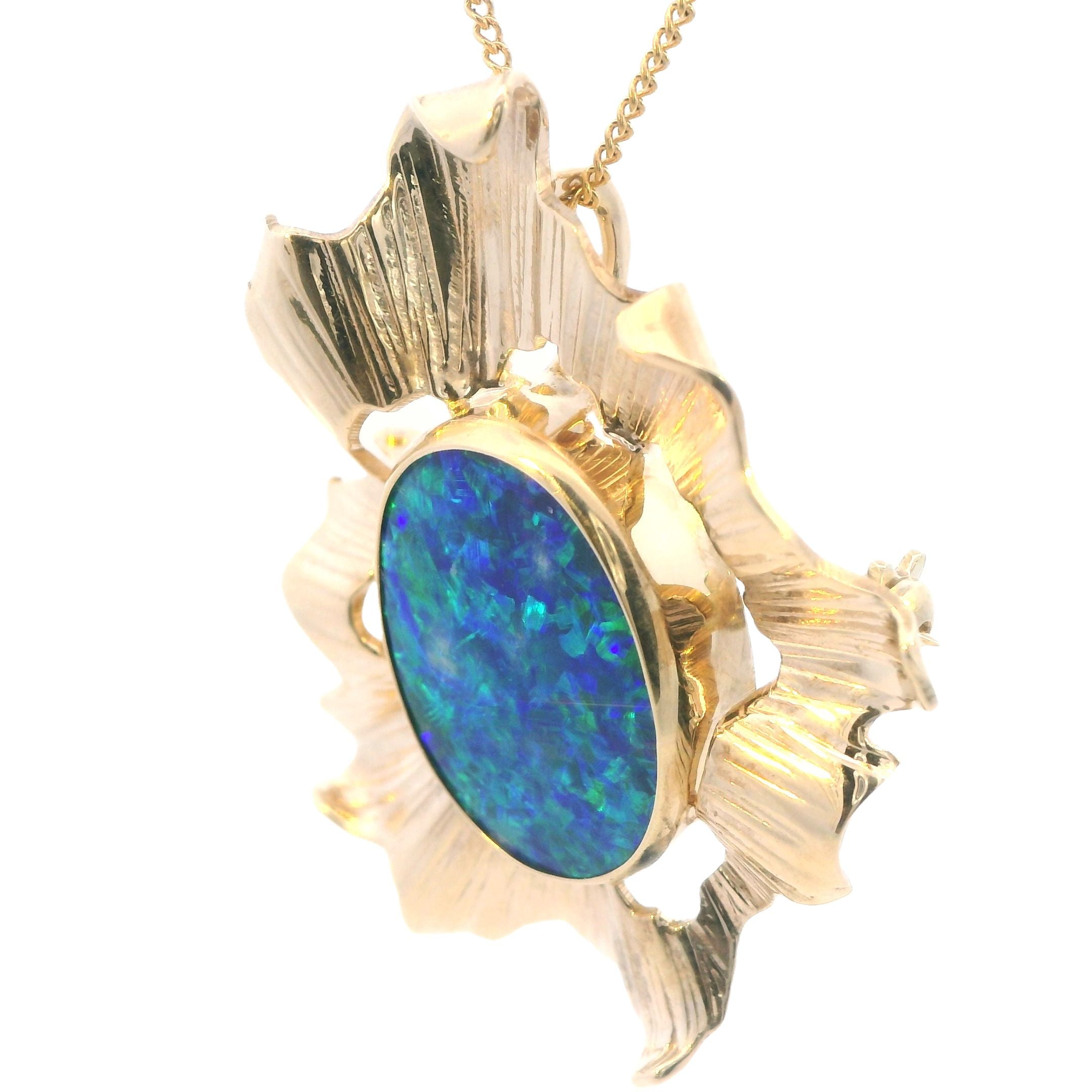This opal pendant/brooch is more than just a piece of jewelry—it's a versatile work of art that will become a cherished part of any collection. Whether worn as a striking pendant on a gold chain or as a brooch to add elegance to a lapel or dress, this piece brings a touch of luxury and intrigue to any look.