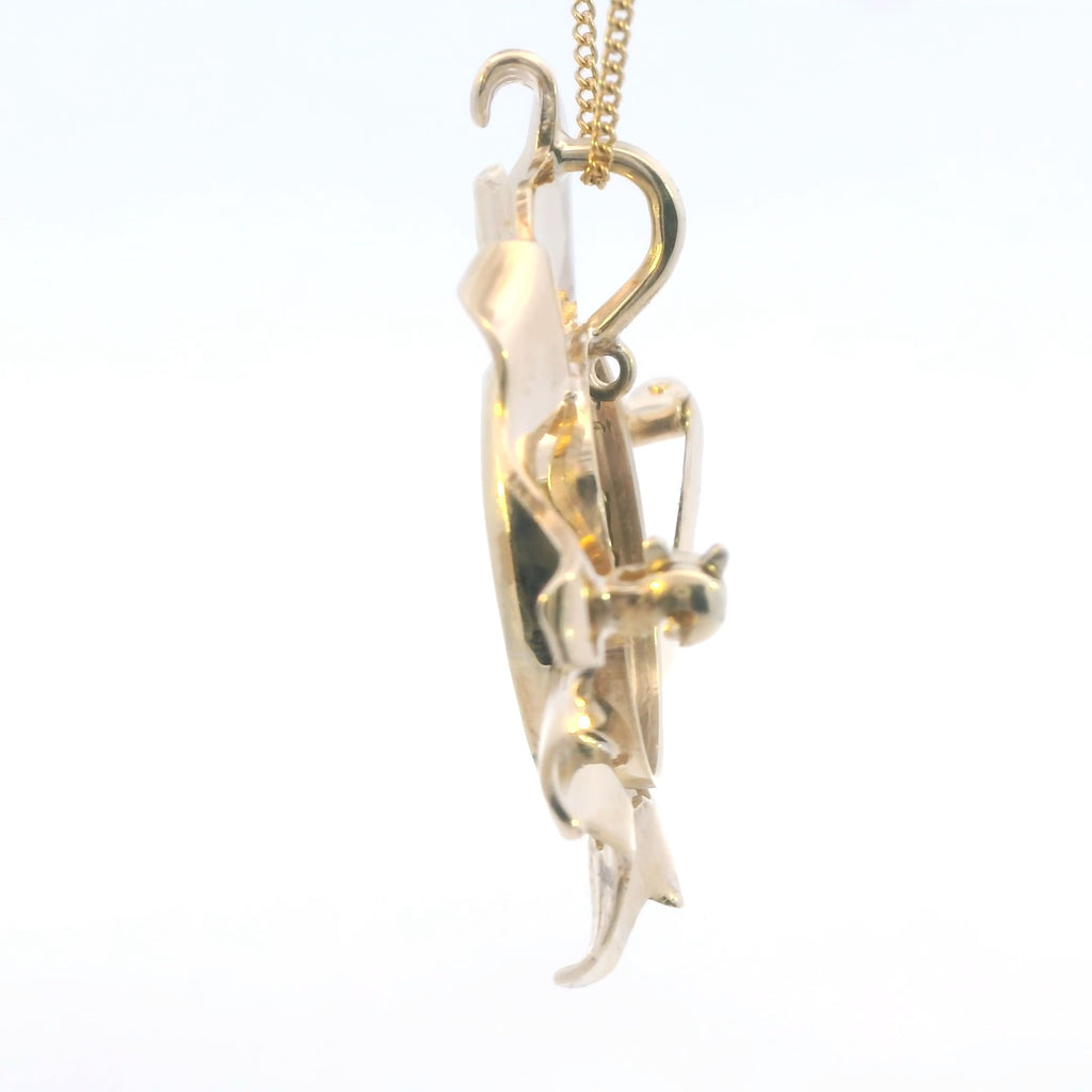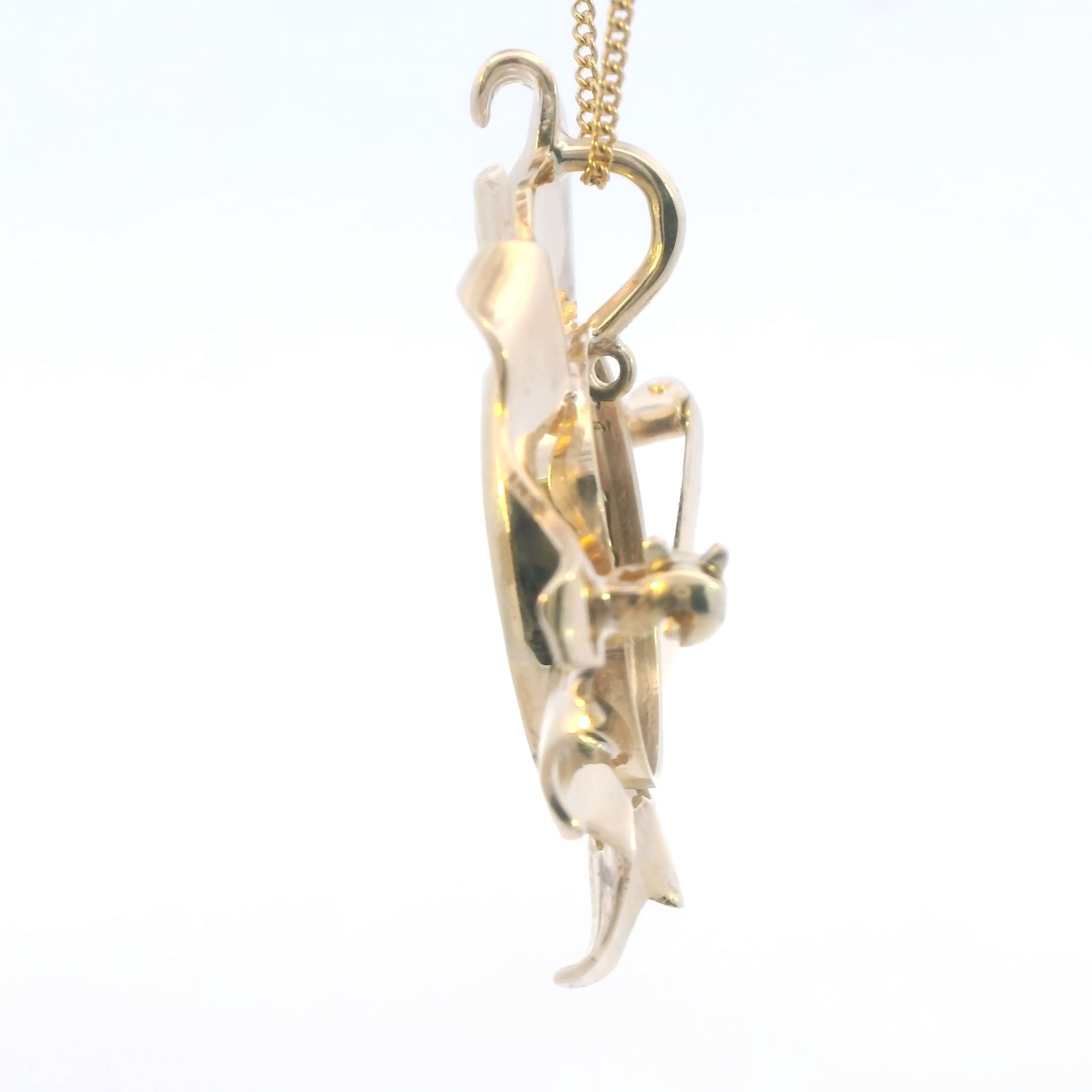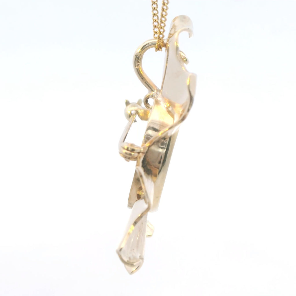 This exquisite yellow gold opal pendant, which can also be worn as a brooch, is a true masterpiece of elegance and versatility. Crafted with care and precision, this cast and assembled piece offers the flexibility to be worn in two ways—either as a statement pendant or a beautiful brooch—allowing you to adapt it to any occasion or style.