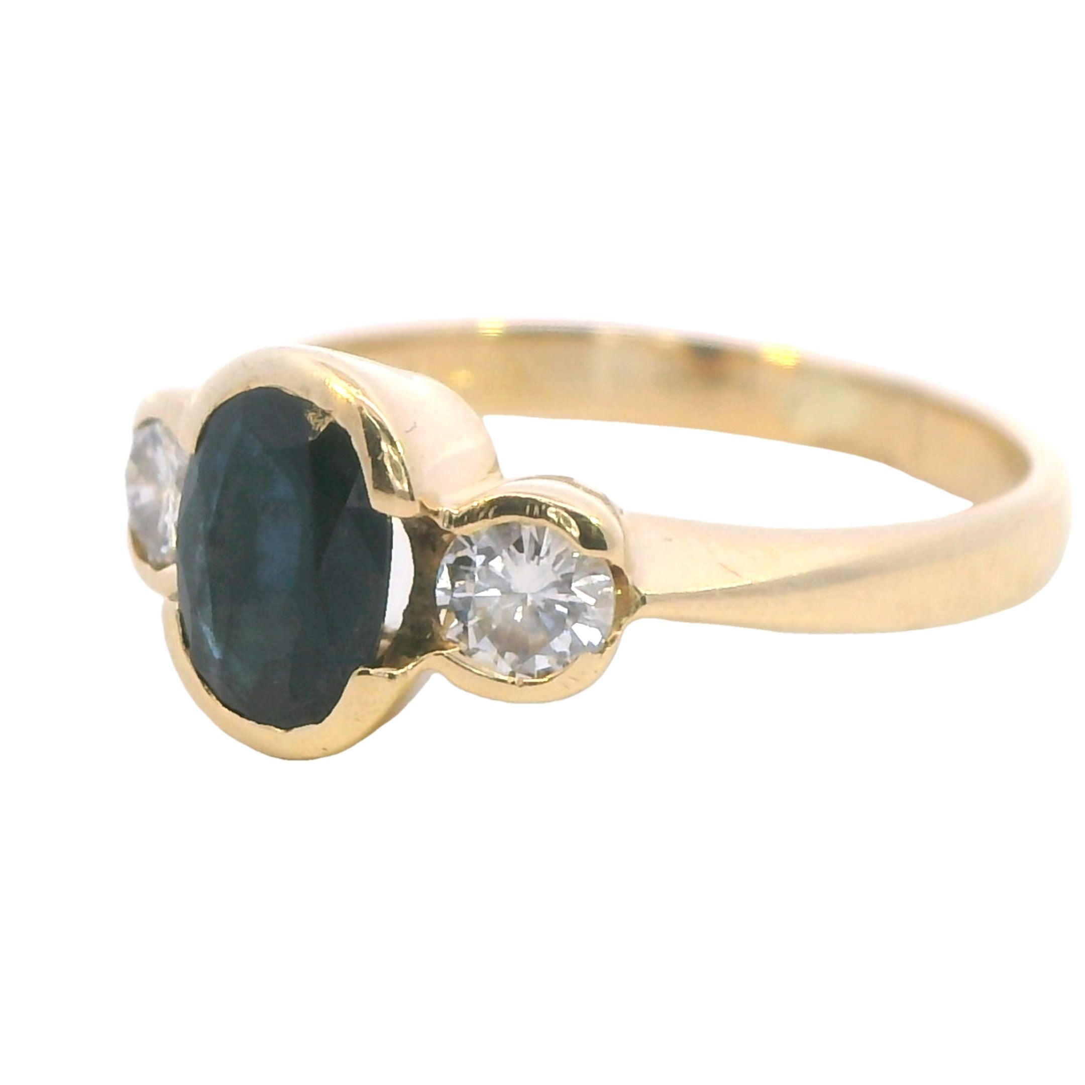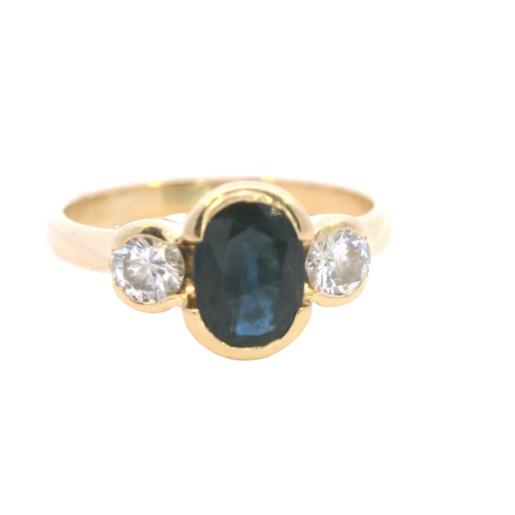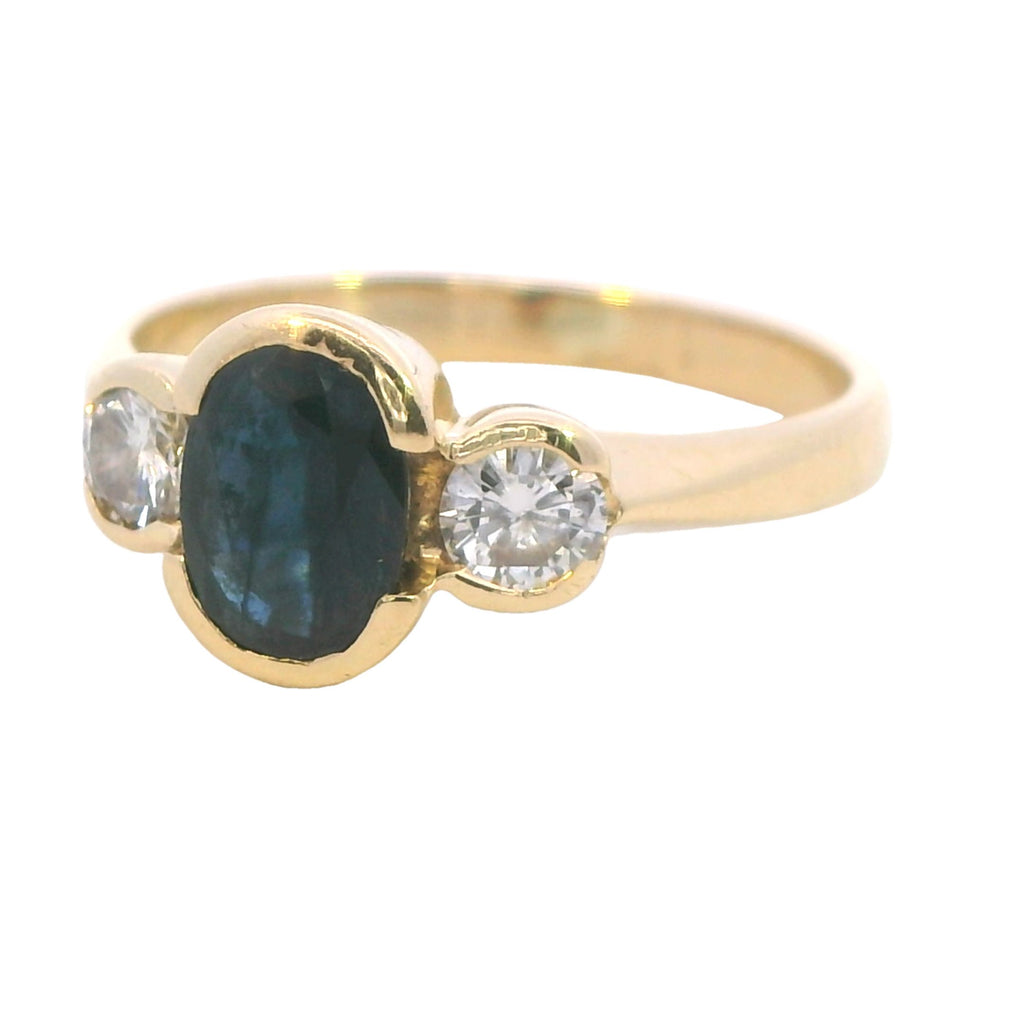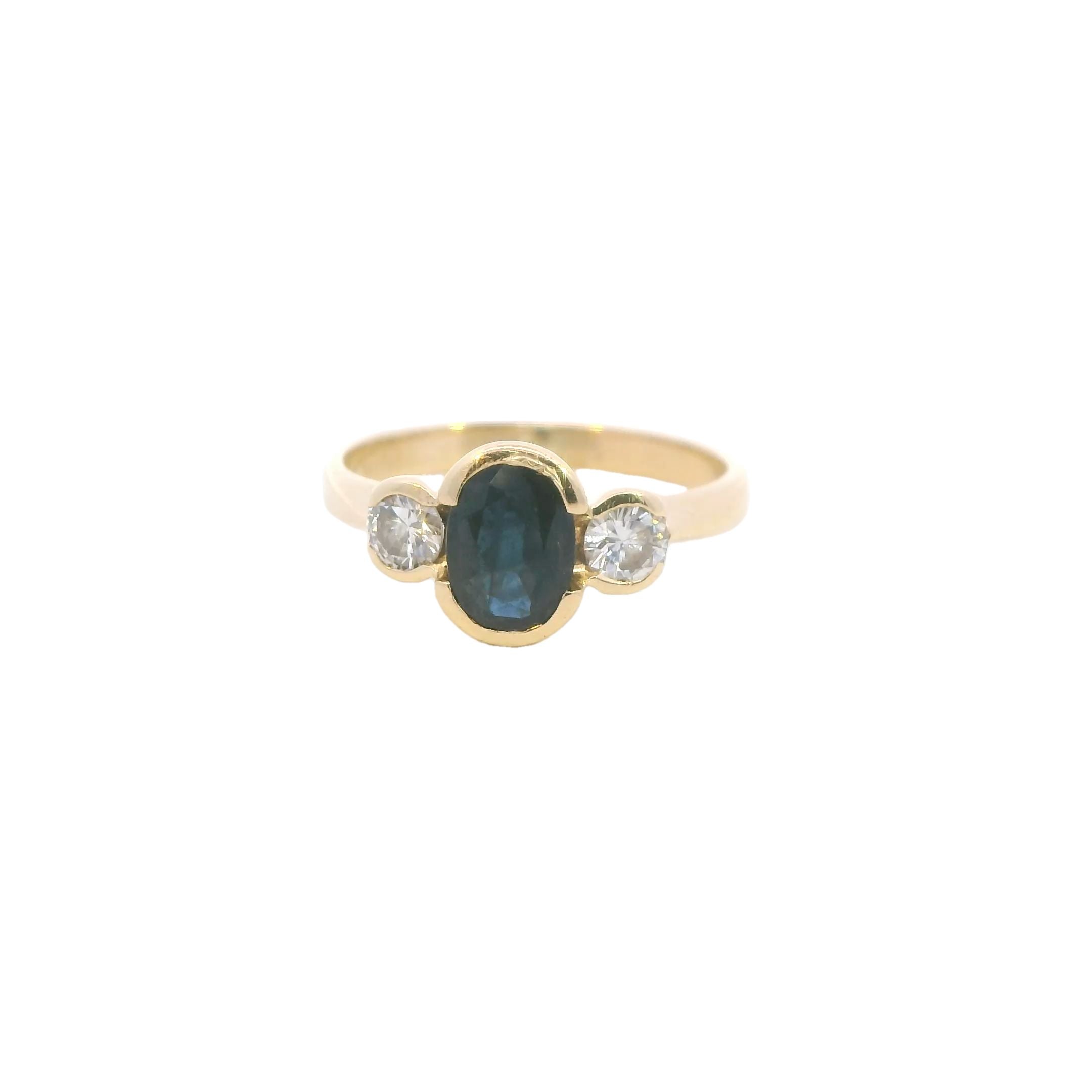 - Gemstones: 1.00ct Oval-Cut Sapphire, 2 x 0.07ct Brilliant-Cut Diamonds