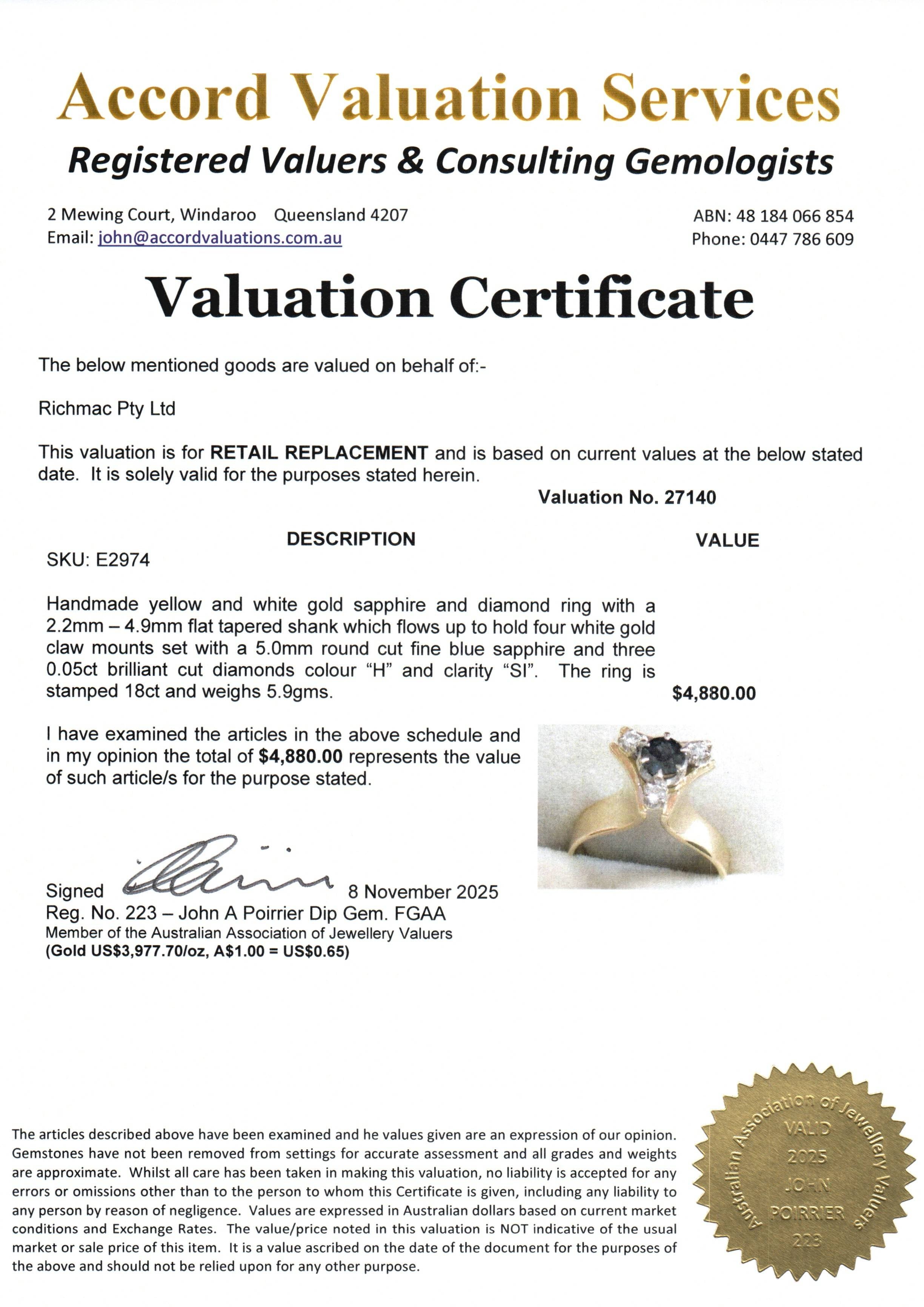 Stamped 18ct and weighing 5.0 grams, this exquisite ring comes with an independent certificate of valuation, confirming an insurance replacement value of $4880. A truly beautiful ring that would make an unforgettable engagement or special occasion piece.