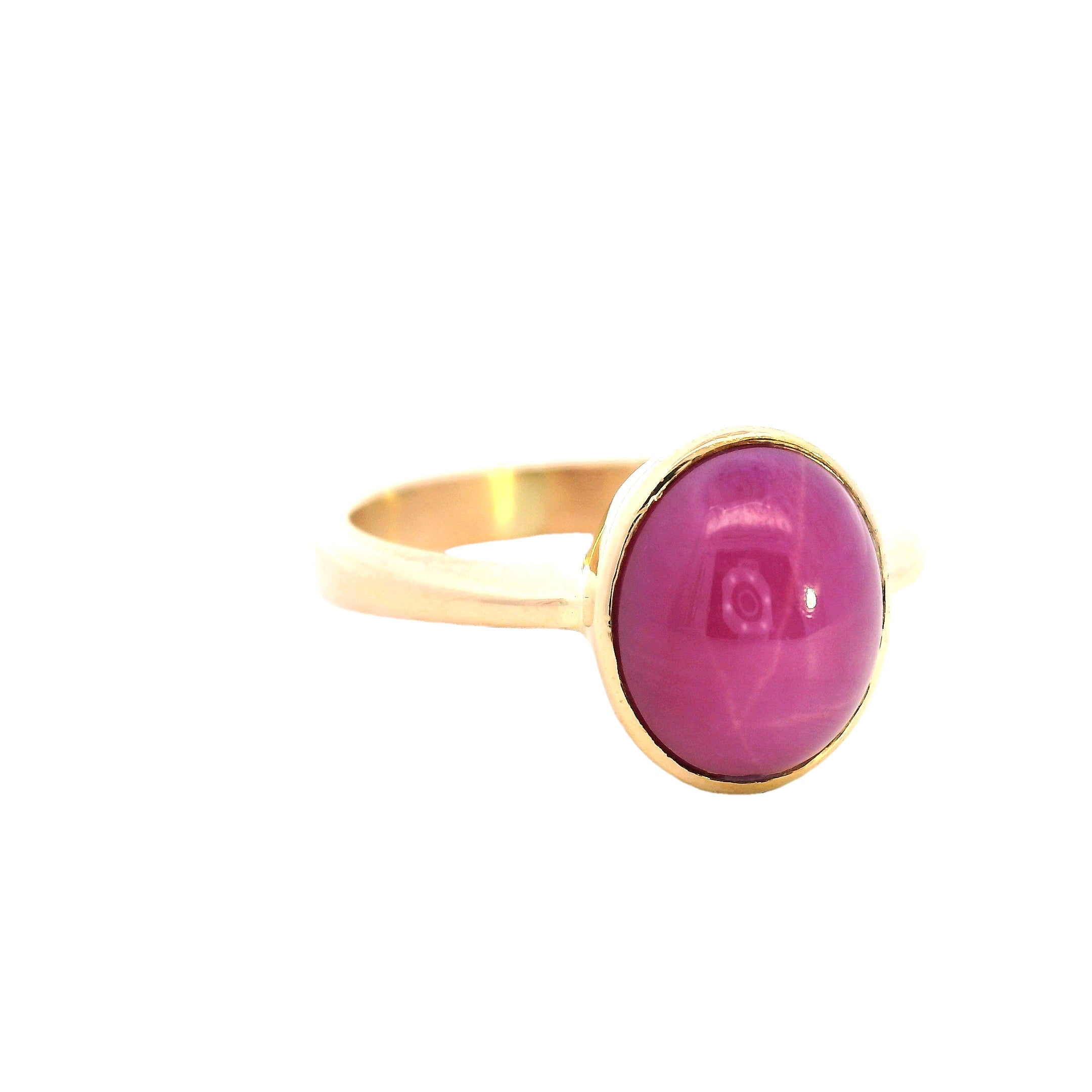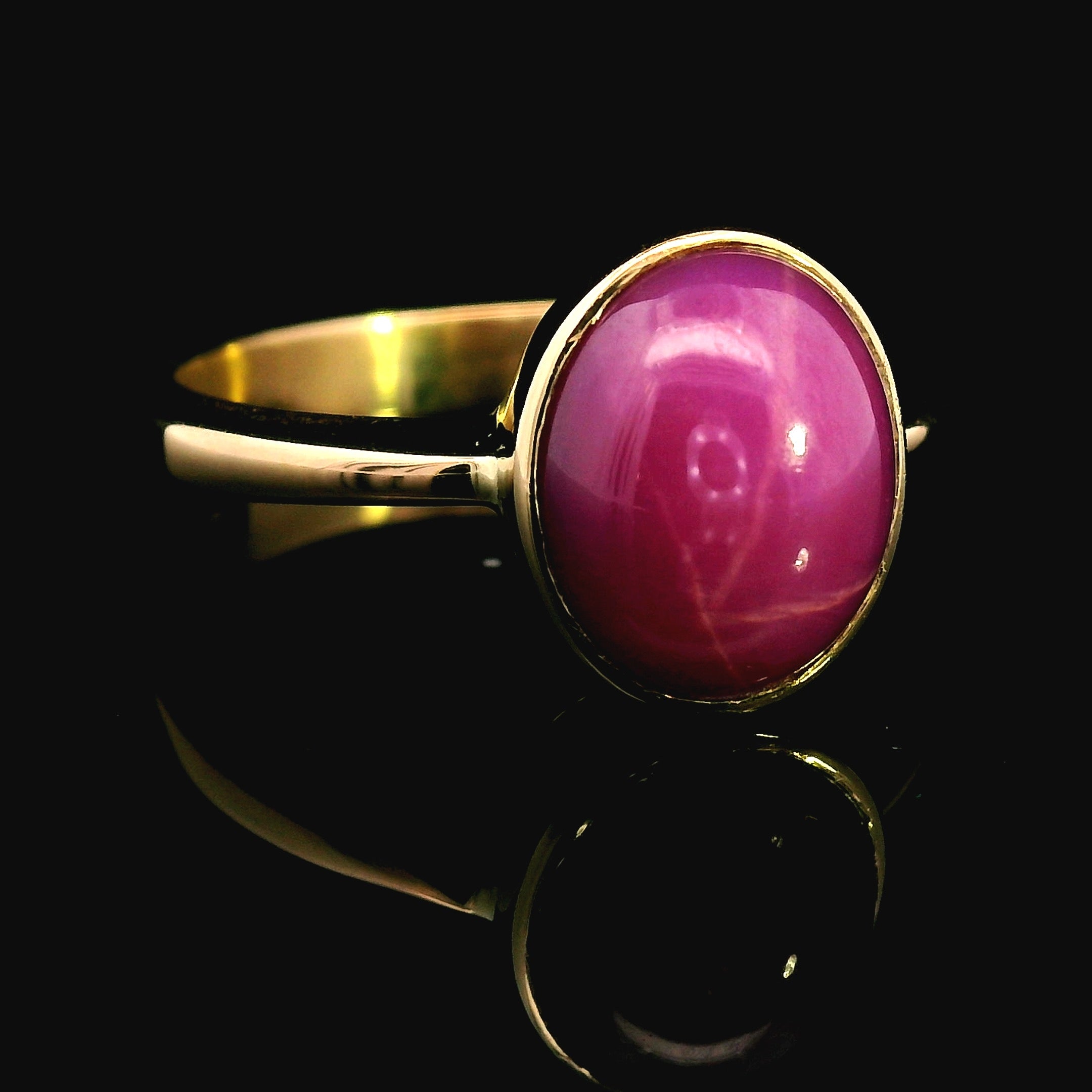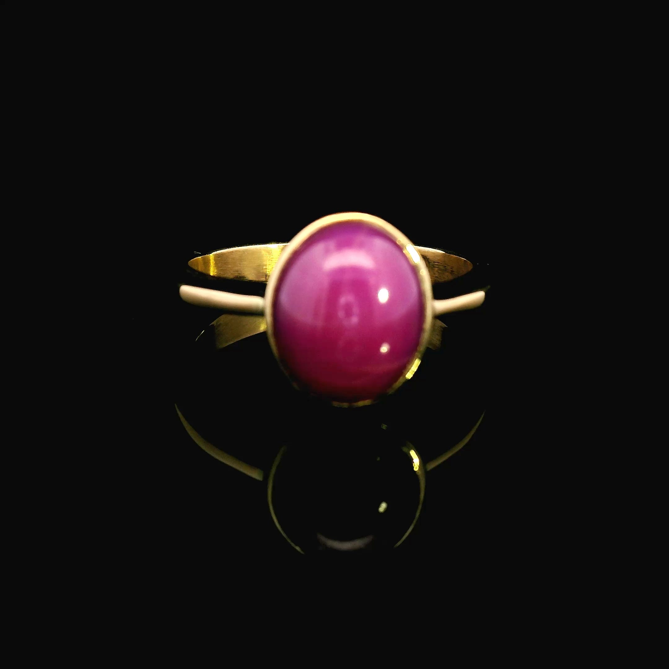 14ct Yellow Gold Synthetic Star Ruby Ring β Handmade Elegance